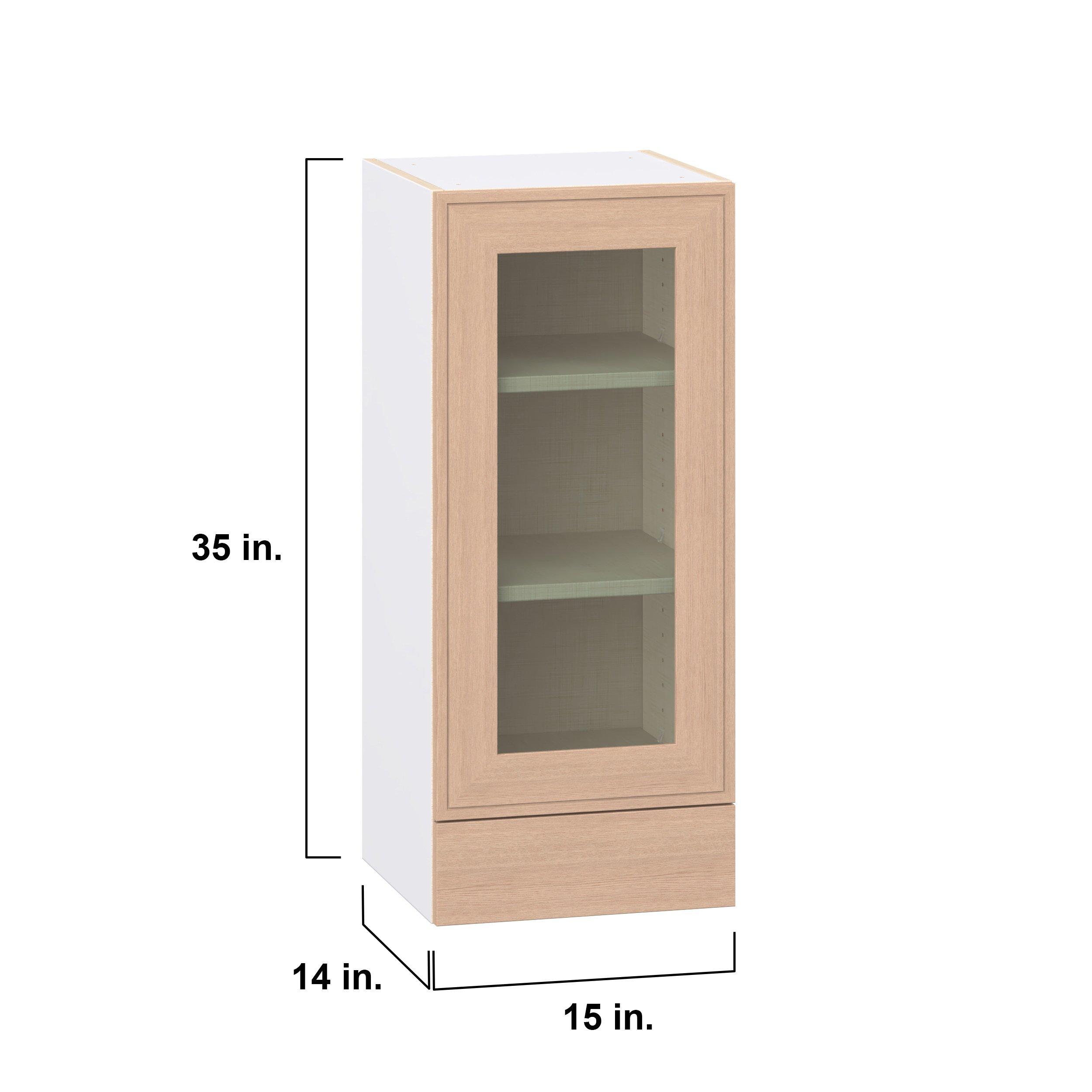 Crafted from natural rift-cut oak, Ambrose shaker-inspired cabinets deliver a modern take on timeless style. Designed to emulate the look of inset framed cabinetry while offering the full-access advantages of frameless construction, Studio Design Collection Ambrose 15 in. Stained Sandbar Rift-Cut Oak Drawer Wall Cabinet with Glass Door blends classic appeal with smart functionality. With 5-piece mitered doors, soft-close hardware, solid wood dovetail drawers, and a designer linen interior, every detail is built for lasting performance. A robust selection of interior accessories—from pull-outs to organizers—ensures the inside works as beautifully as the outside looks.