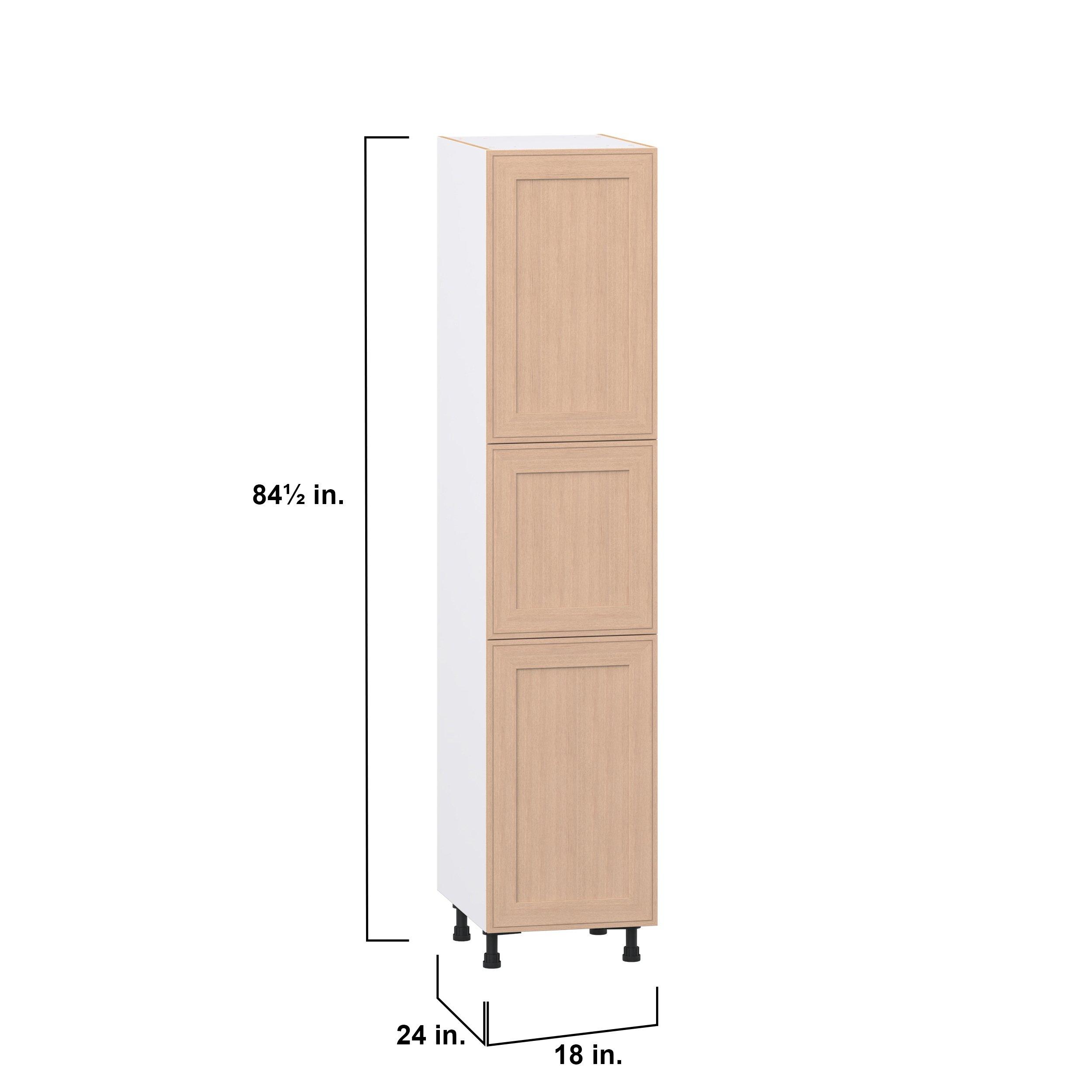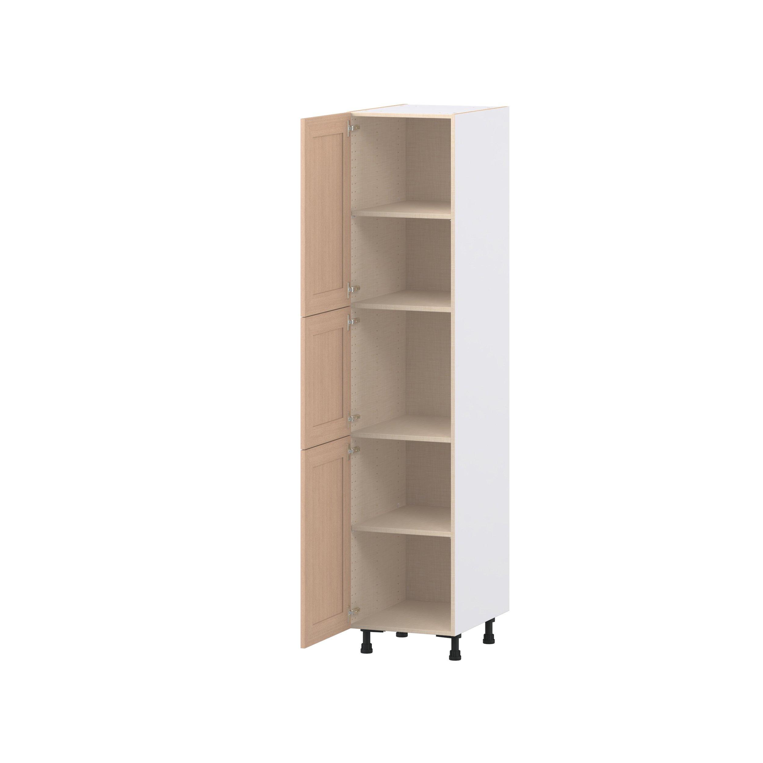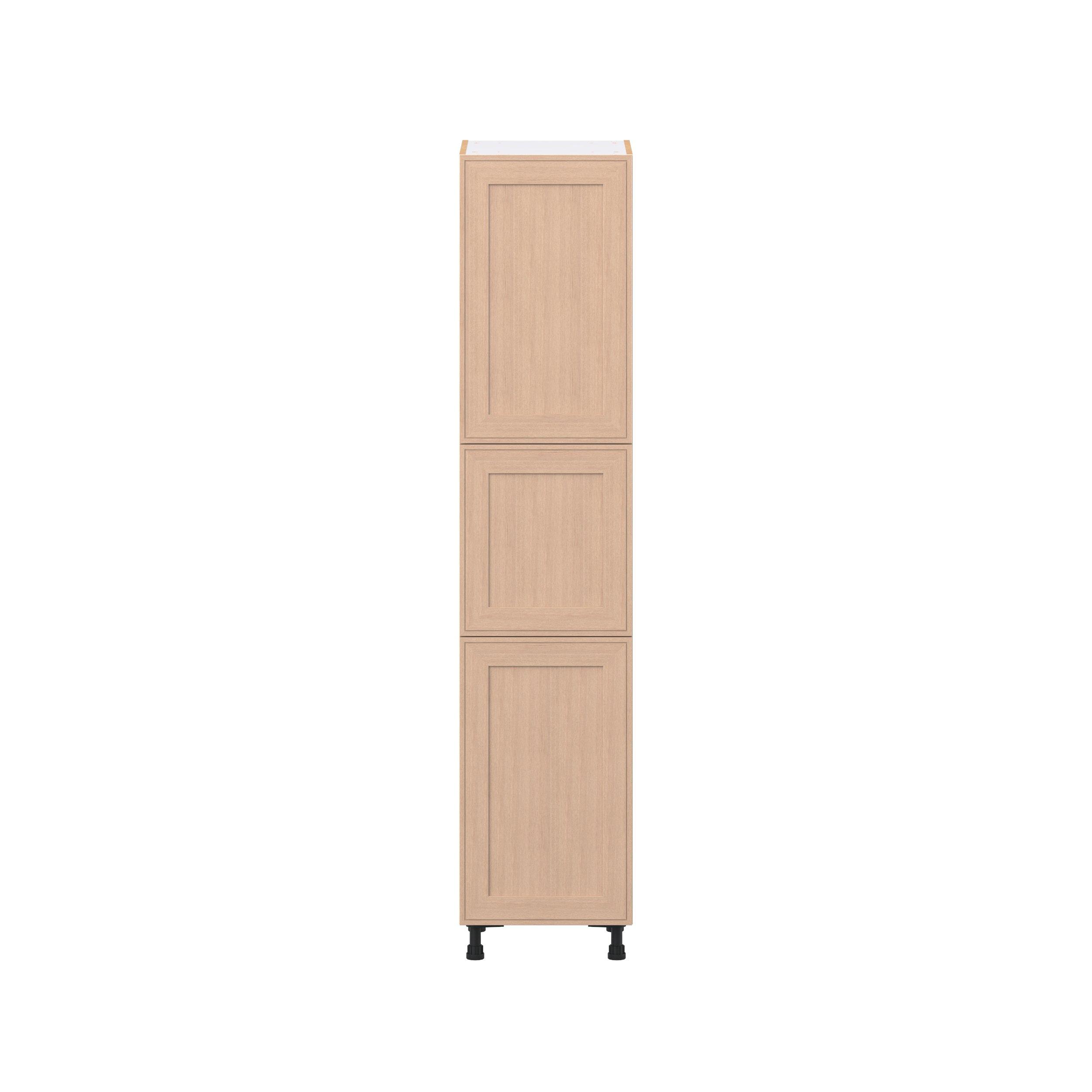 Crafted from natural rift-cut oak, Ambrose shaker-inspired cabinets deliver a modern take on timeless style. Designed to emulate the look of inset framed cabinetry while offering the full-access advantages of frameless construction, Studio Design Collection Ambrose 18 in. Stained Sandbar Rift-Cut Oak Door Pantry Cabinet blends classic appeal with smart functionality. With 5-piece mitered doors, soft-close hardware, solid wood dovetail drawers, and a designer linen interior, every detail is built for lasting performance. A robust selection of interior accessories—from pull-outs to organizers—ensures the inside works as beautifully as the outside looks.