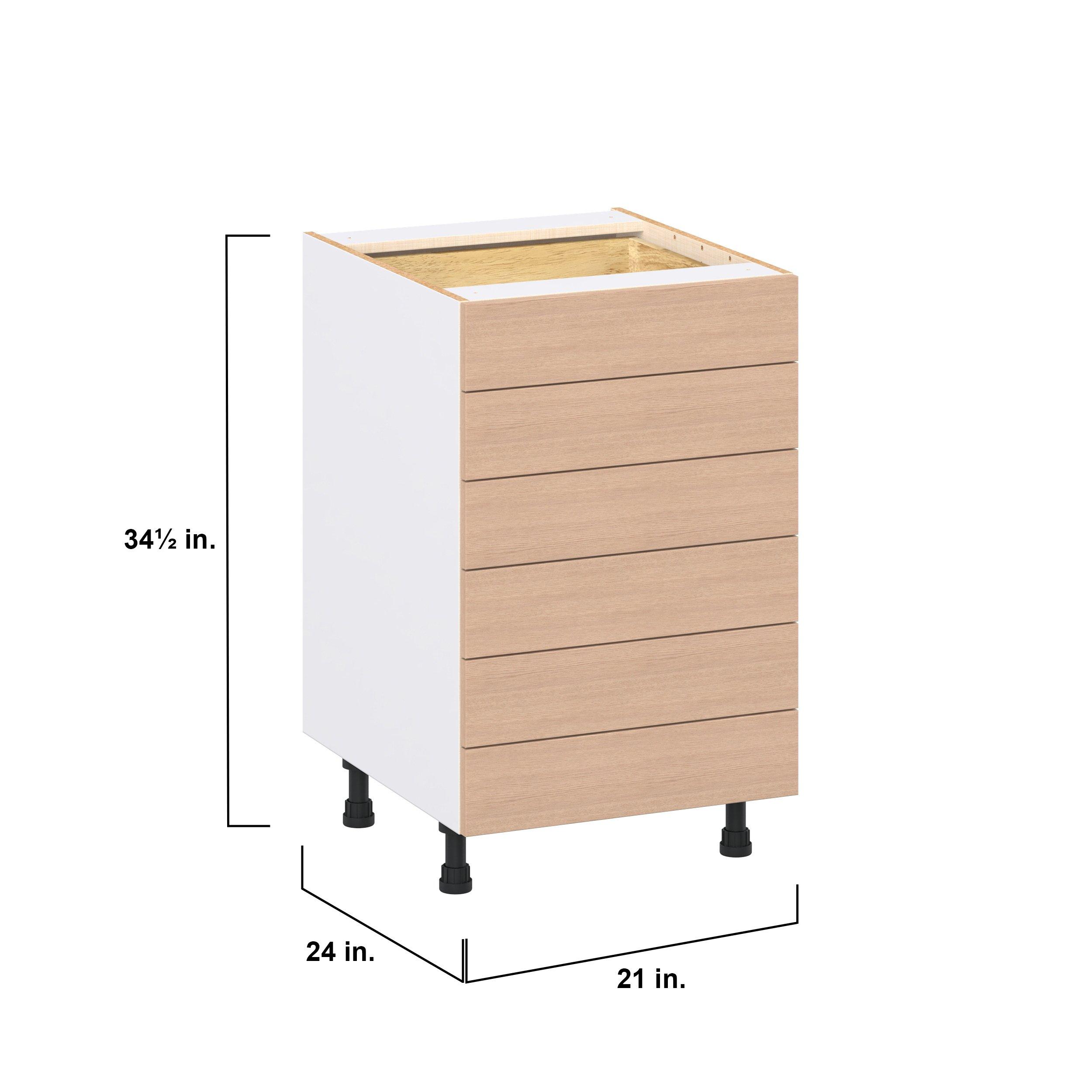 Crafted from natural rift-cut oak, Ambrose shaker-inspired cabinets deliver a modern take on timeless style. Designed to emulate the look of inset framed cabinetry while offering the full-access advantages of frameless construction, Studio Design Collection Ambrose 21 in. Stained Sandbar Rift-Cut Oak Drawer Base Cabinet blends classic appeal with smart functionality. With 5-piece mitered doors, soft-close hardware, solid wood dovetail drawers, and a designer linen interior, every detail is built for lasting performance. A robust selection of interior accessories—from pull-outs to organizers—ensures the inside works as beautifully as the outside looks.