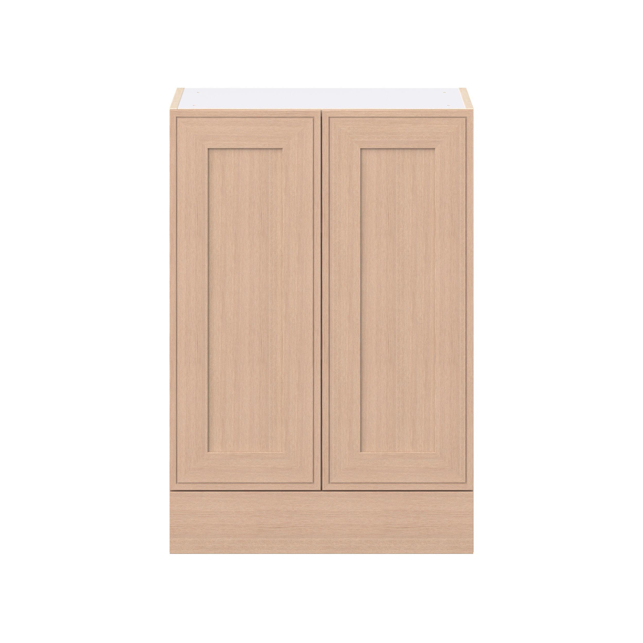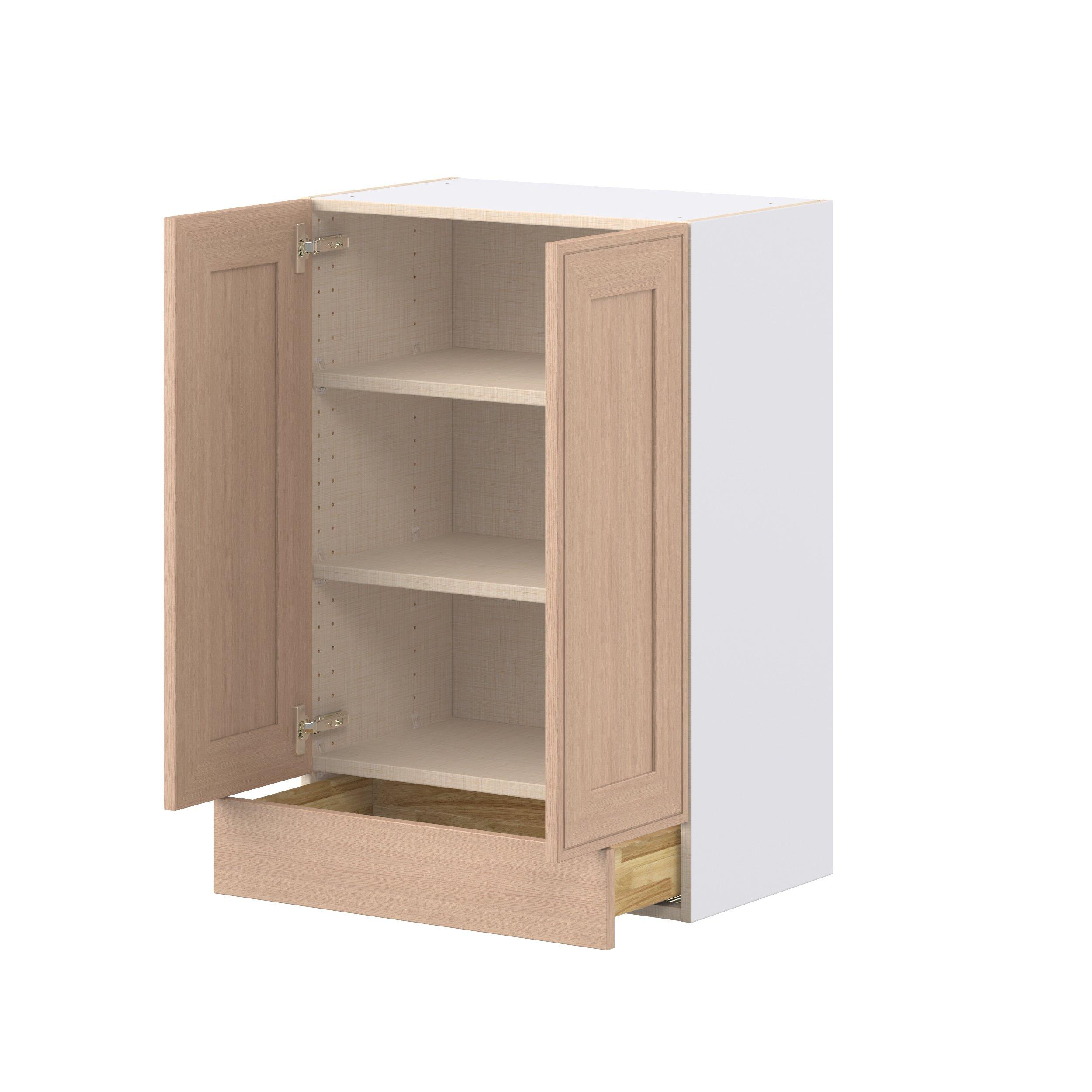 Crafted from natural rift-cut oak, Ambrose shaker-inspired cabinets deliver a modern take on timeless style. Designed to emulate the look of inset framed cabinetry while offering the full-access advantages of frameless construction, Studio Design Collection Ambrose 24 in. Stained Sandbar Rift-Cut Oak Door and Drawer Wall Cabinet blends classic appeal with smart functionality. With 5-piece mitered doors, soft-close hardware, solid wood dovetail drawers, and a designer linen interior, every detail is built for lasting performance. A robust selection of interior accessories—from pull-outs to organizers—ensures the inside works as beautifully as the outside looks.