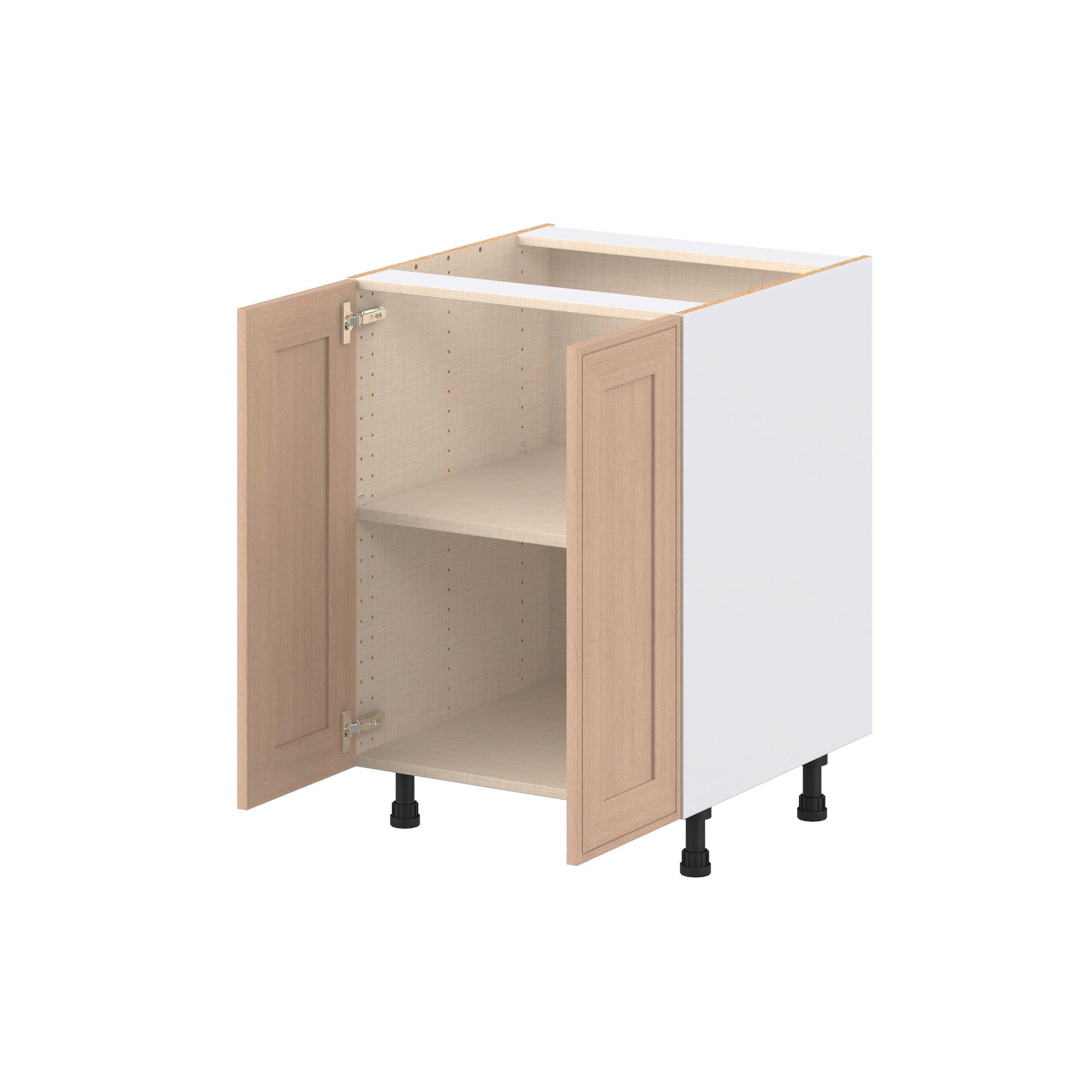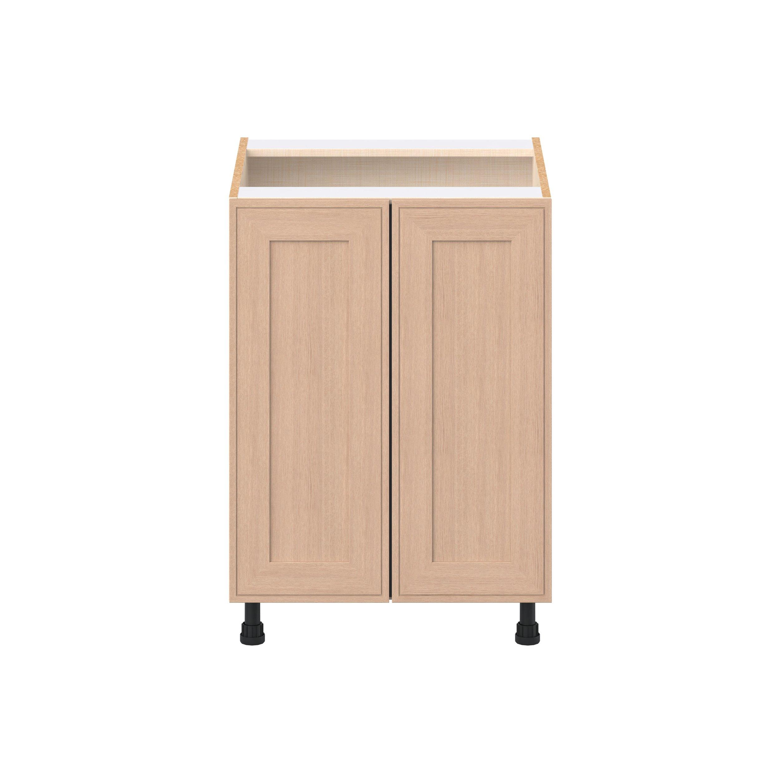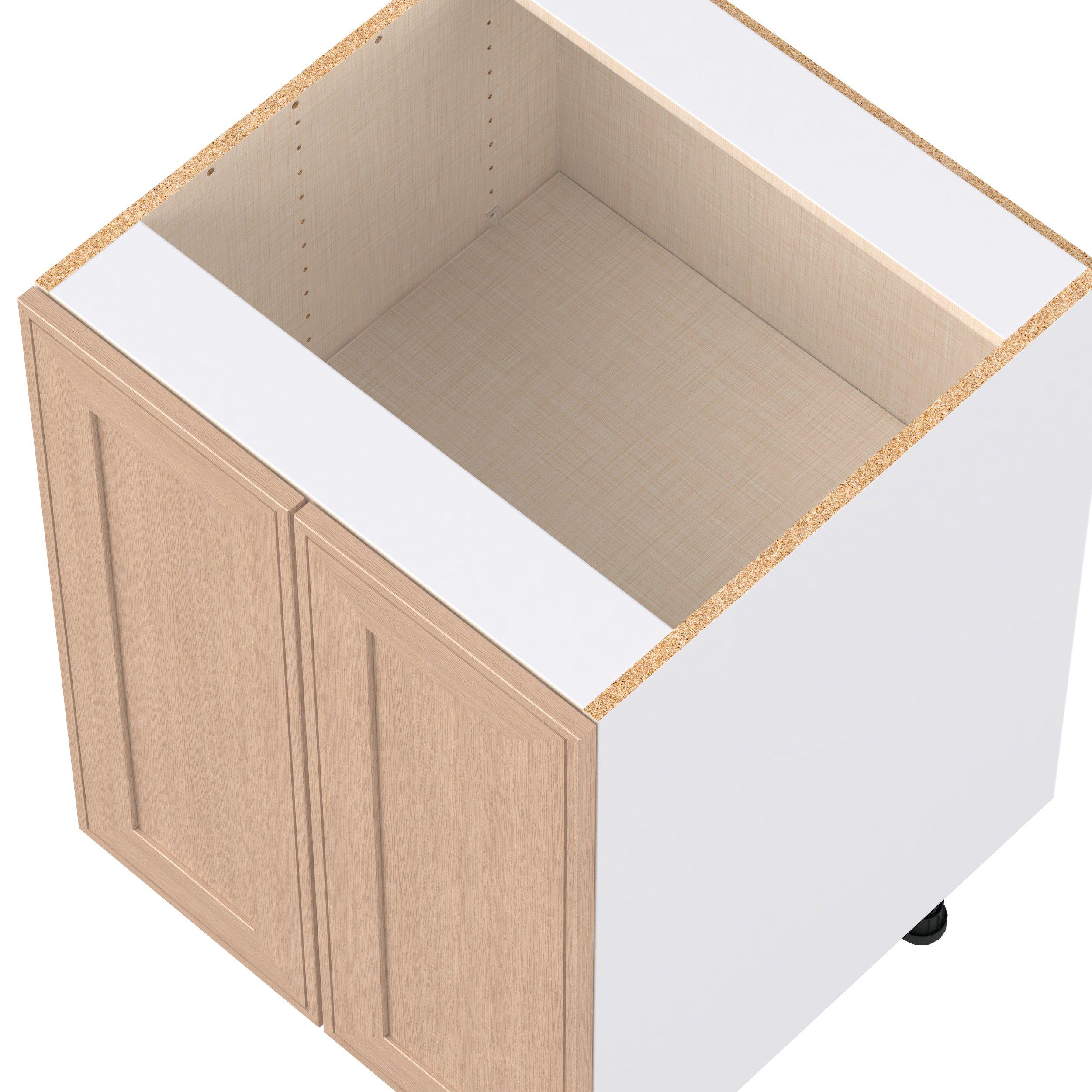 Crafted from natural rift-cut oak, Ambrose shaker-inspired cabinets deliver a modern take on timeless style. Designed to emulate the look of inset framed cabinetry while offering the full-access advantages of frameless construction, Studio Design Collection Ambrose 24 in. Stained Sandbar Rift-Cut Oak Door Base Cabinet blends classic appeal with smart functionality. With 5-piece mitered doors, soft-close hardware, solid wood dovetail drawers, and a designer linen interior, every detail is built for lasting performance. A robust selection of interior accessories—from pull-outs to organizers—ensures the inside works as beautifully as the outside looks.