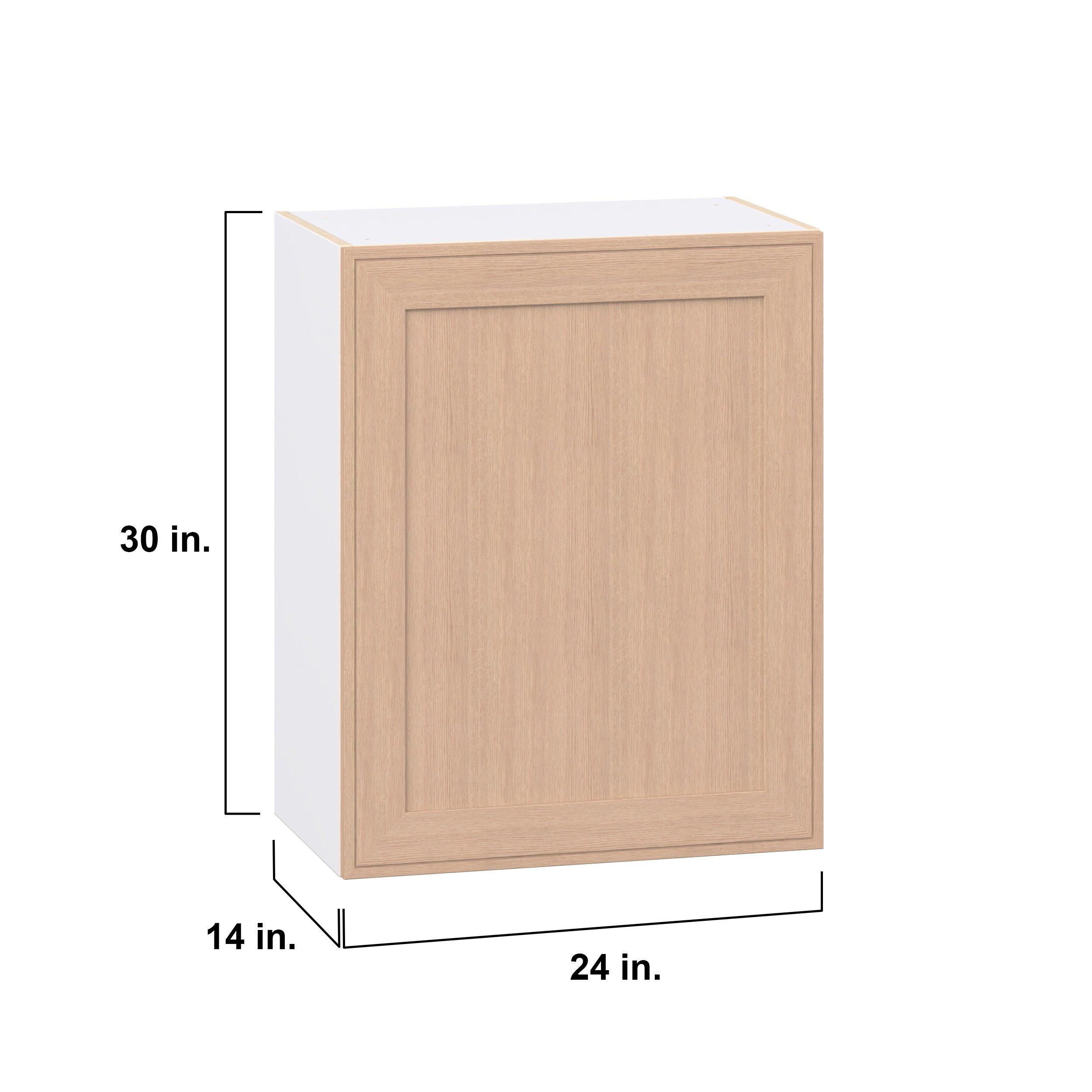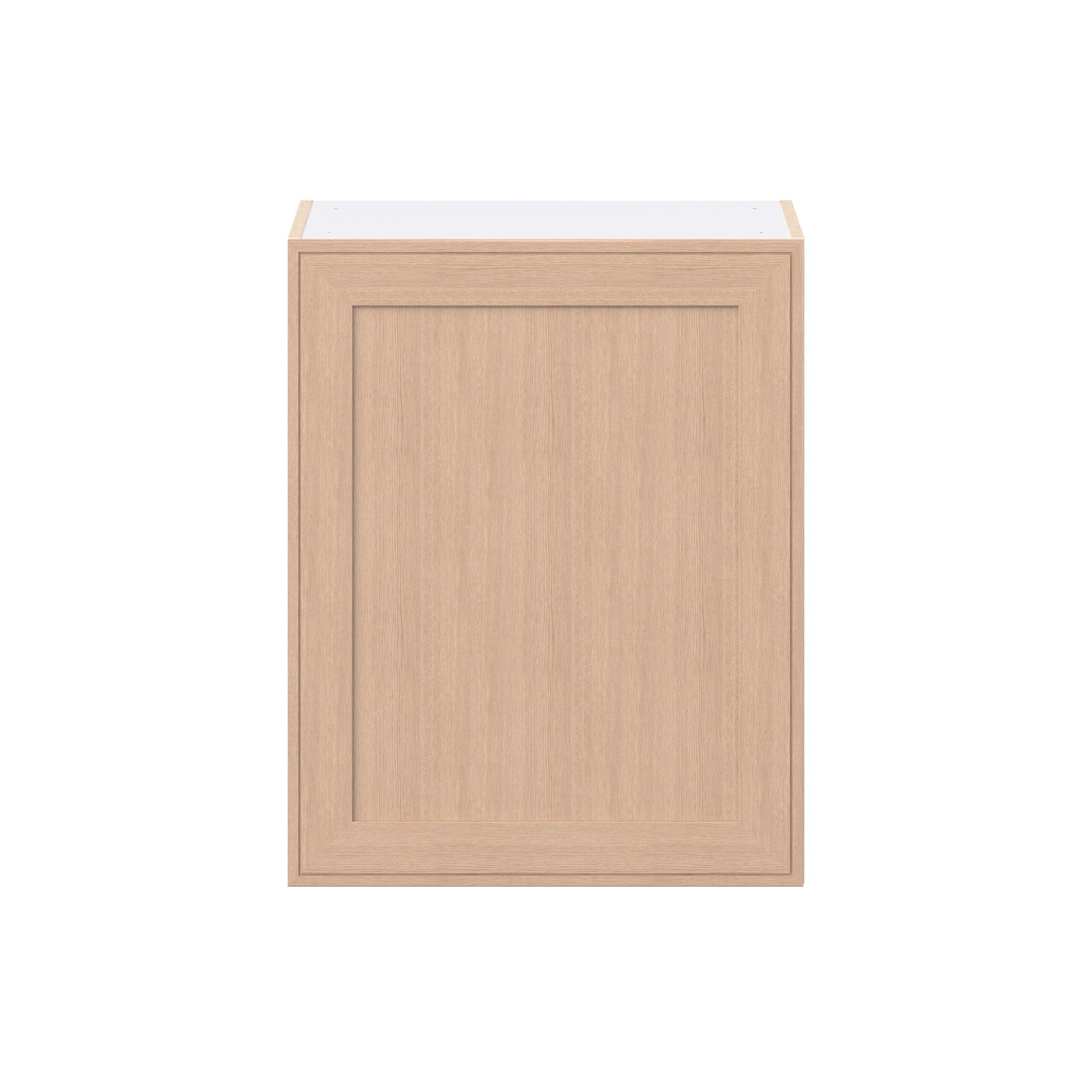Crafted from natural rift-cut oak, Ambrose shaker-inspired cabinets deliver a modern take on timeless style. Designed to emulate the look of inset framed cabinetry while offering the full-access advantages of frameless construction, Studio Design Collection Ambrose 24 in. Stained Sandbar Rift-Cut Oak Door Wall Cabinet blends classic appeal with smart functionality. With 5-piece mitered doors, soft-close hardware, solid wood dovetail drawers, and a designer linen interior, every detail is built for lasting performance. A robust selection of interior accessories—from pull-outs to organizers—ensures the inside works as beautifully as the outside looks.