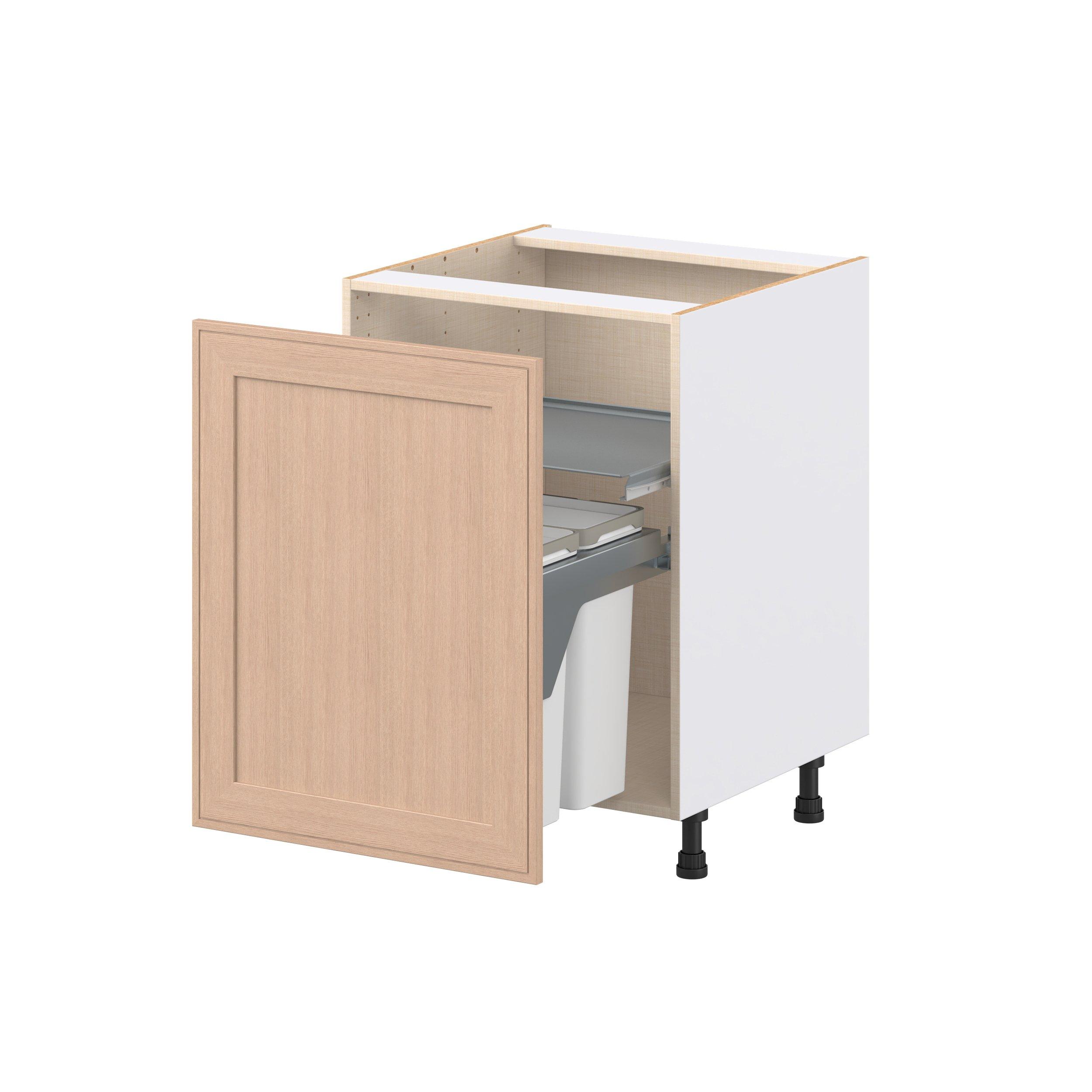 Crafted from natural rift-cut oak, Ambrose shaker-inspired cabinets deliver a modern take on timeless style. Designed to emulate the look of inset framed cabinetry while offering the full-access advantages of frameless construction, Studio Design Collection Ambrose 24 in. Stained Sandbar Rift-Cut Oak Trash Can Pull-Out Base Cabinet blends classic appeal with smart functionality. With 5-piece mitered doors, soft-close hardware, solid wood dovetail drawers, and a designer linen interior, every detail is built for lasting performance. A robust selection of interior accessories—from pull-outs to organizers—ensures the inside works as beautifully as the outside looks.