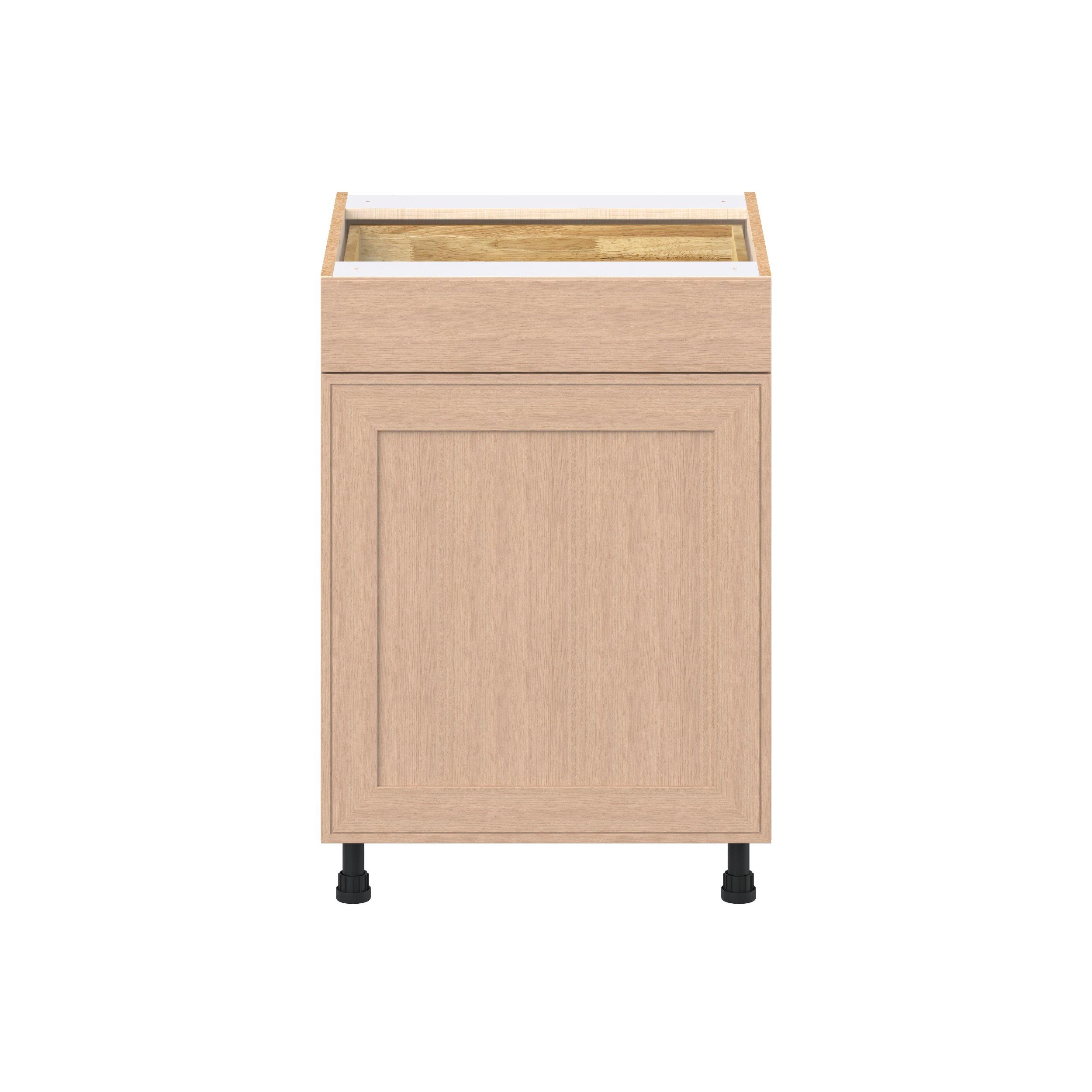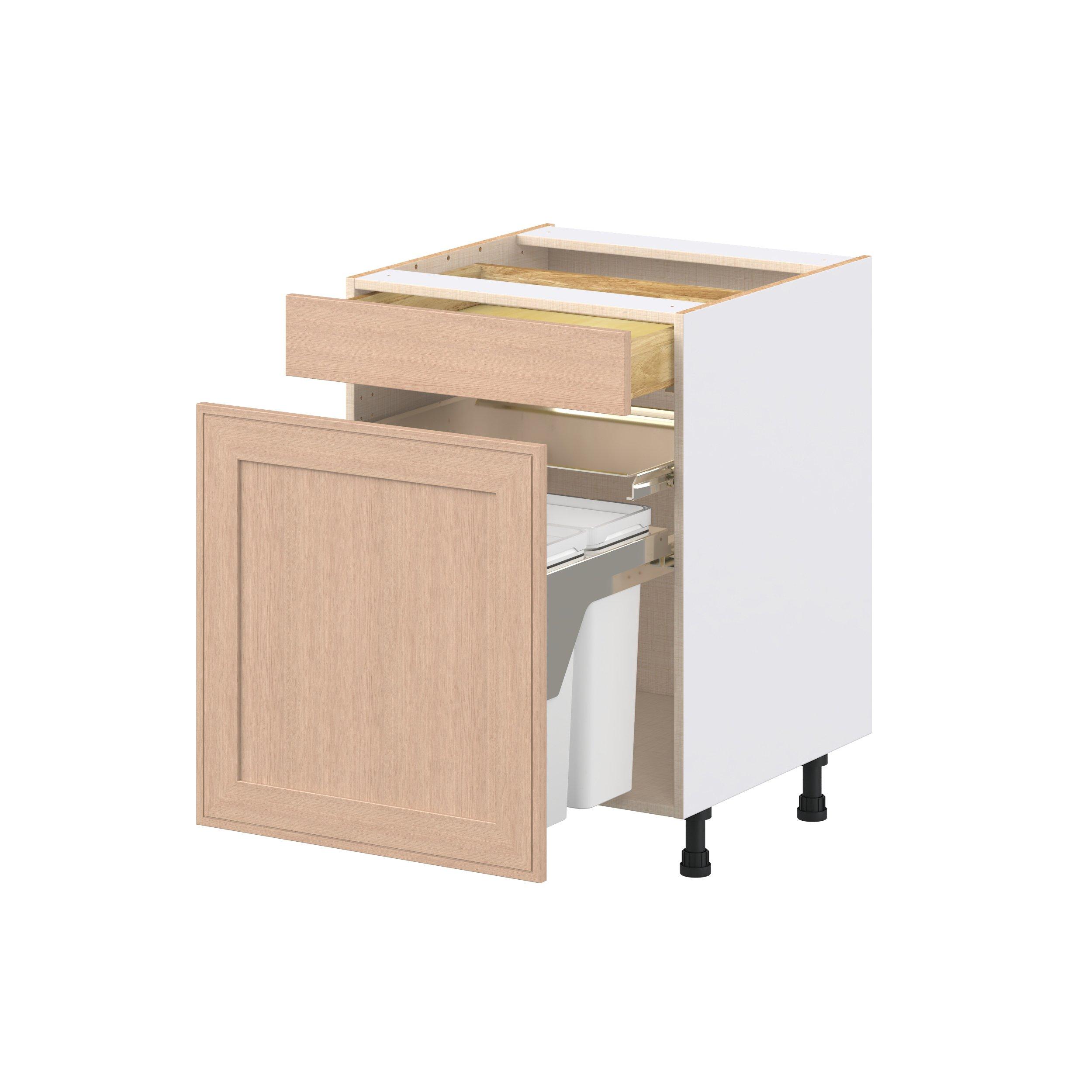 Crafted from natural rift-cut oak, Ambrose shaker-inspired cabinets deliver a modern take on timeless style. Designed to emulate the look of inset framed cabinetry while offering the full-access advantages of frameless construction, Studio Design Collection Ambrose 24 in. Stained Sandbar Rift-Cut Oak Trash Can Pull-Out Base Cabinet blends classic appeal with smart functionality. With 5-piece mitered doors, soft-close hardware, solid wood dovetail drawers, and a designer linen interior, every detail is built for lasting performance. A robust selection of interior accessories—from pull-outs to organizers—ensures the inside works as beautifully as the outside looks.