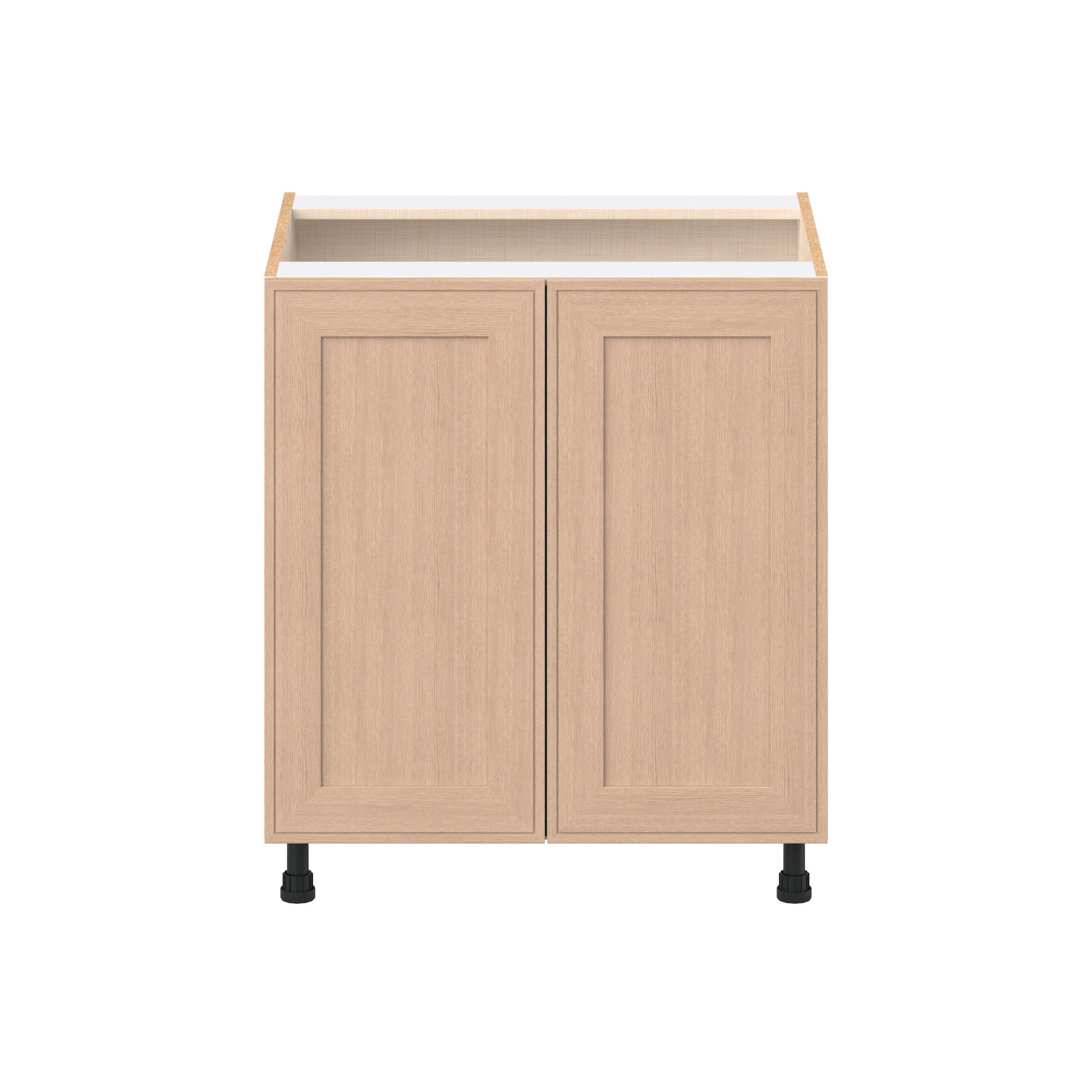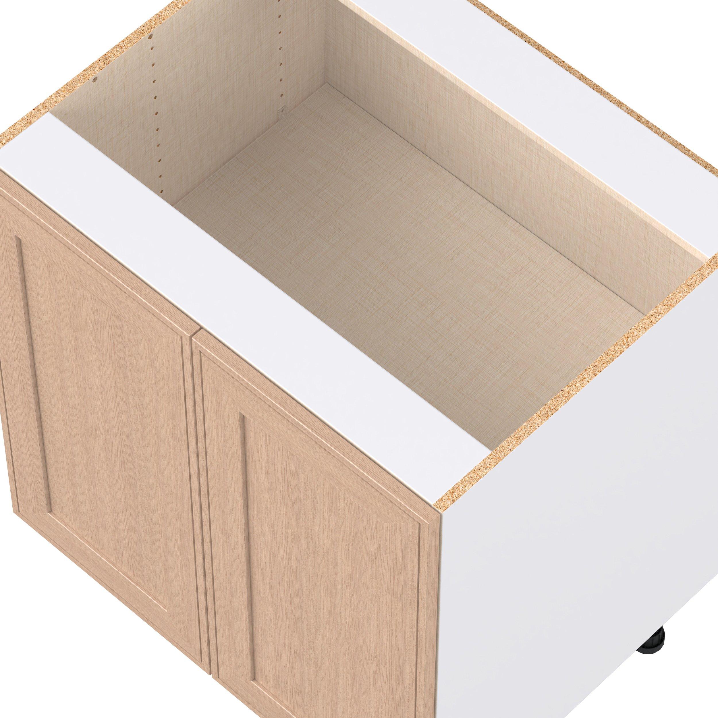 Crafted from natural rift-cut oak, Ambrose shaker-inspired cabinets deliver a modern take on timeless style. Designed to emulate the look of inset framed cabinetry while offering the full-access advantages of frameless construction, Studio Design Collection Ambrose 30 in. Stained Sandbar Rift-Cut Oak Door Base Cabinet blends classic appeal with smart functionality. With 5-piece mitered doors, soft-close hardware, solid wood dovetail drawers, and a designer linen interior, every detail is built for lasting performance. A robust selection of interior accessories—from pull-outs to organizers—ensures the inside works as beautifully as the outside looks.