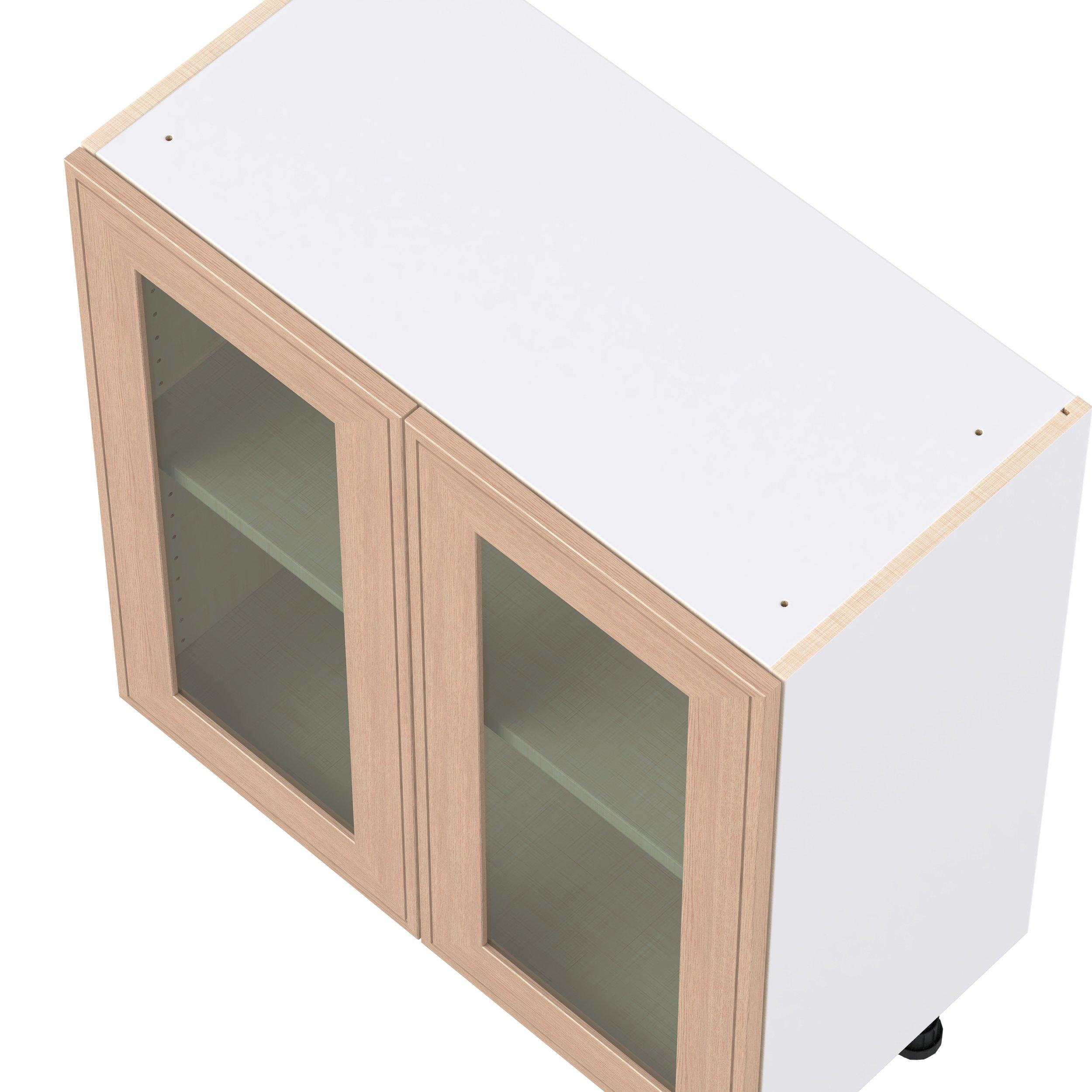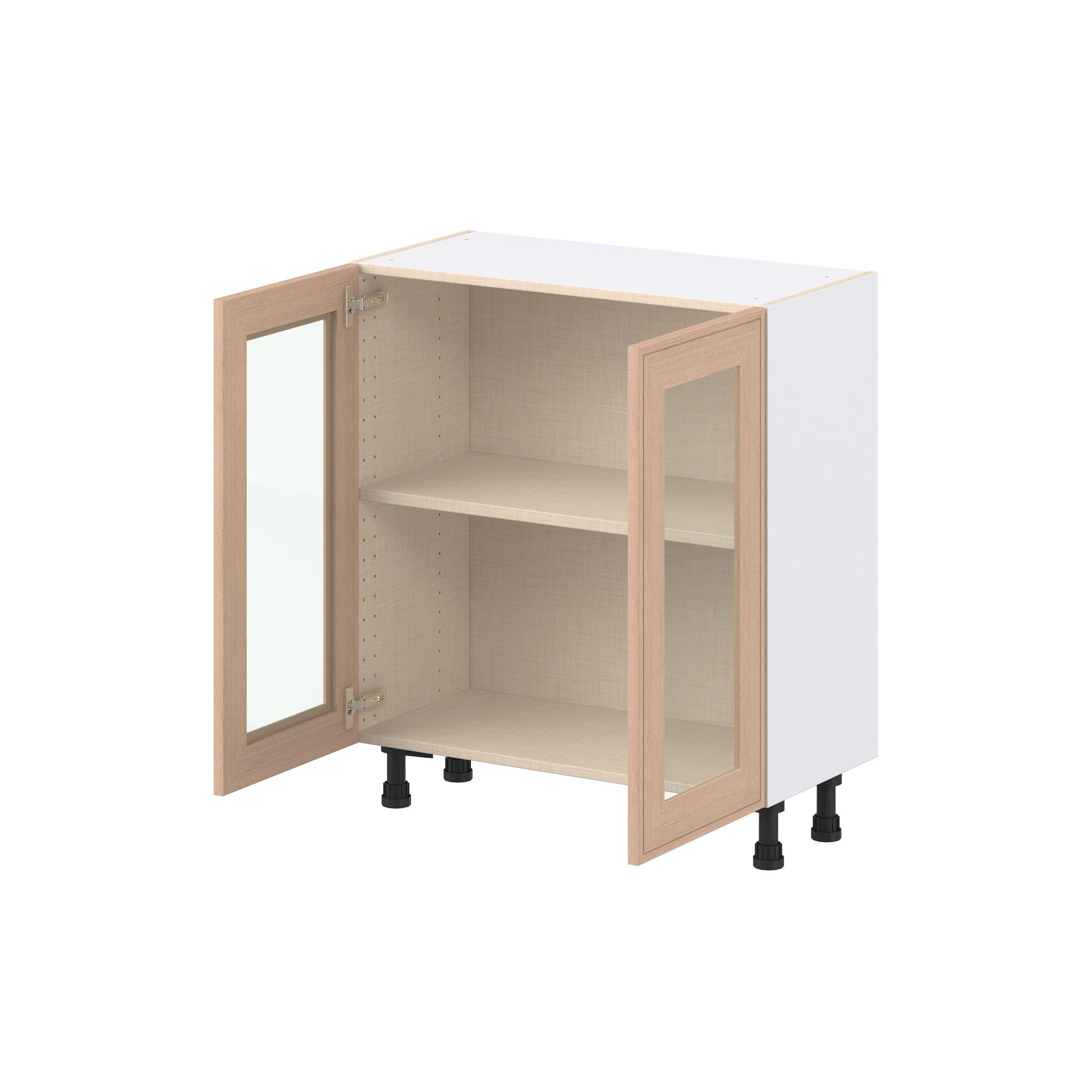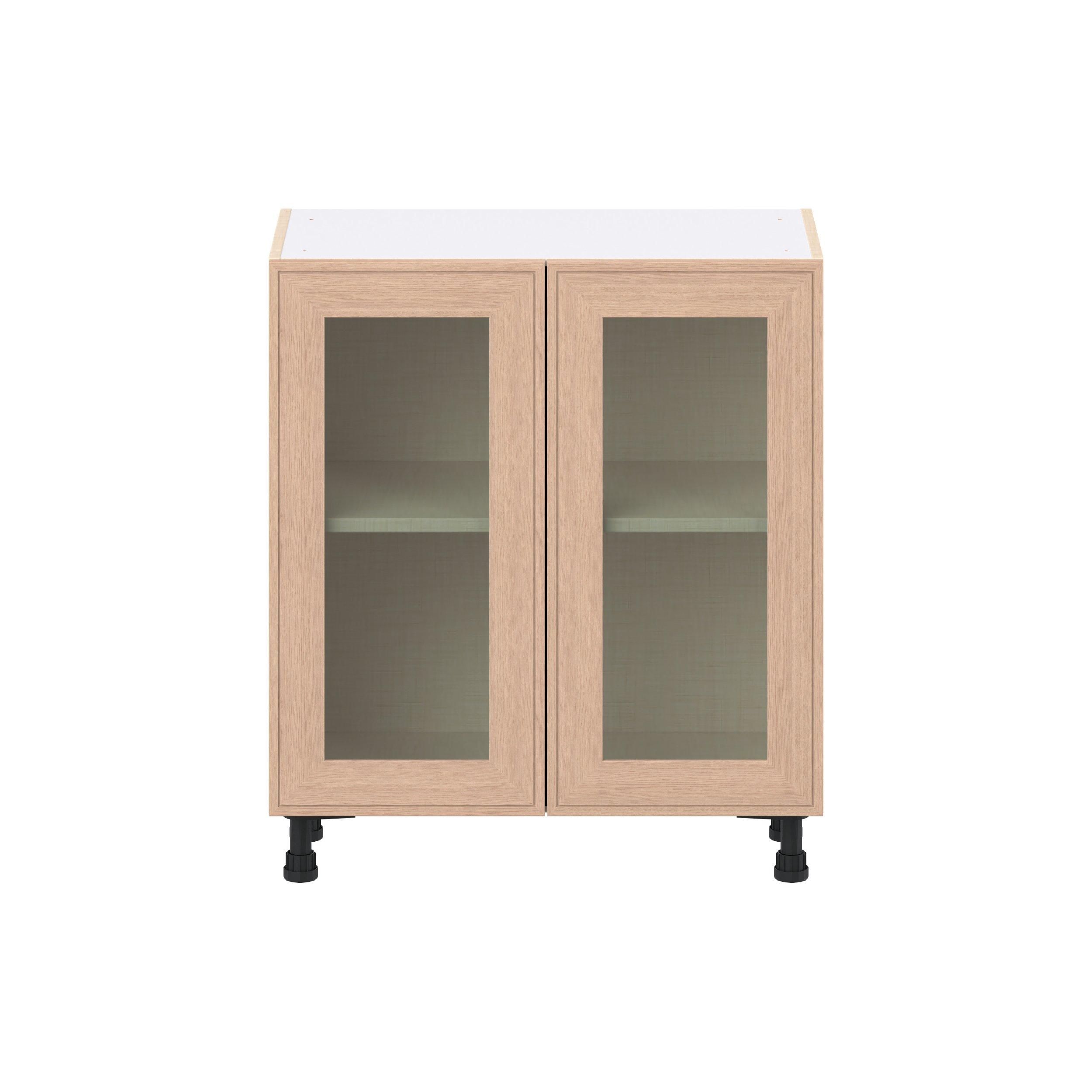 Crafted from natural rift-cut oak, Ambrose shaker-inspired cabinets deliver a modern take on timeless style. Designed to emulate the look of inset framed cabinetry while offering the full-access advantages of frameless construction, Studio Design Collection Ambrose 30 in. Stained Sandbar Rift-Cut Oak Shallow Base Cabinet with Glass Door blends classic appeal with smart functionality. With 5-piece mitered doors, soft-close hardware, solid wood dovetail drawers, and a designer linen interior, every detail is built for lasting performance. A robust selection of interior accessories—from pull-outs to organizers—ensures the inside works as beautifully as the outside looks.