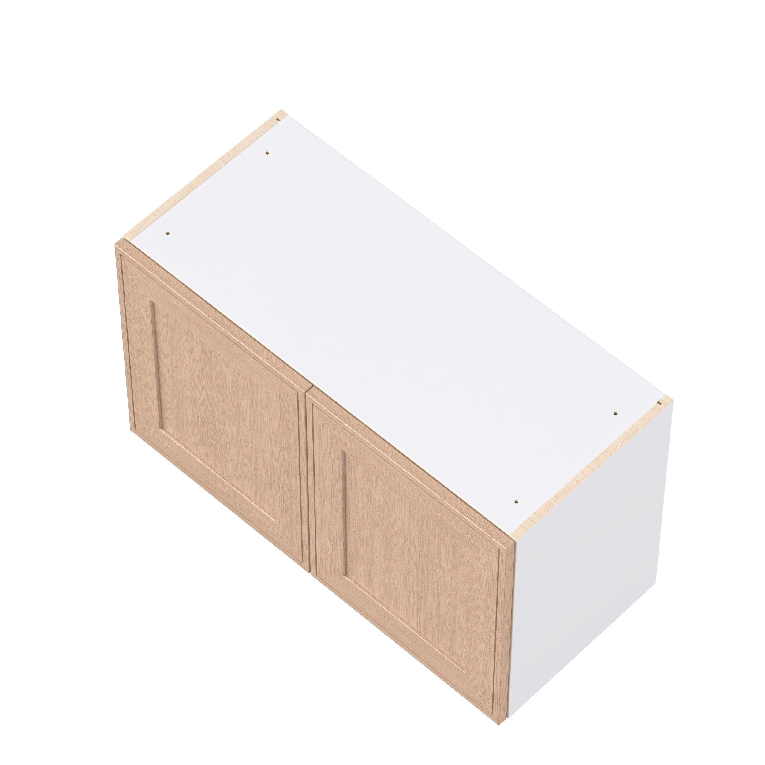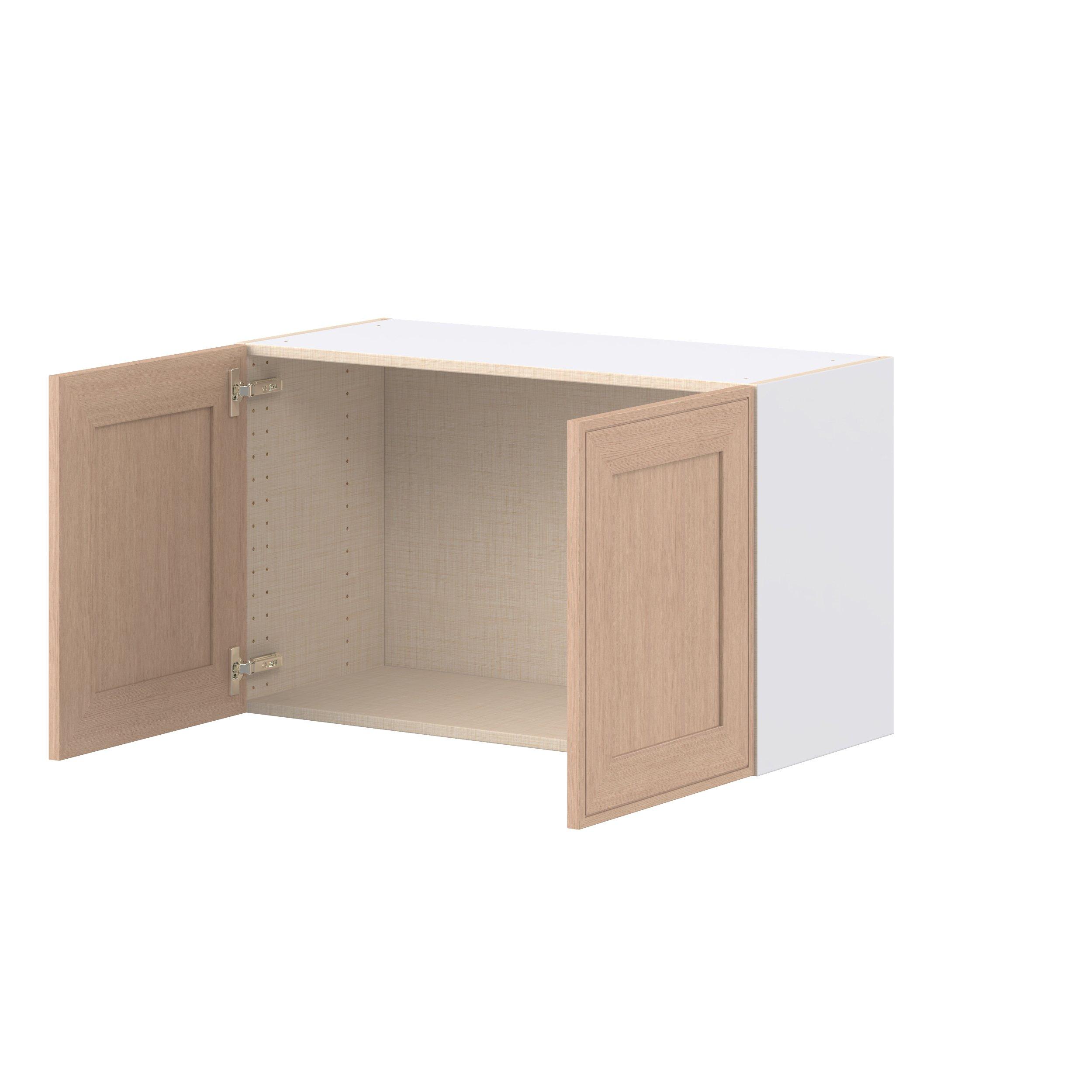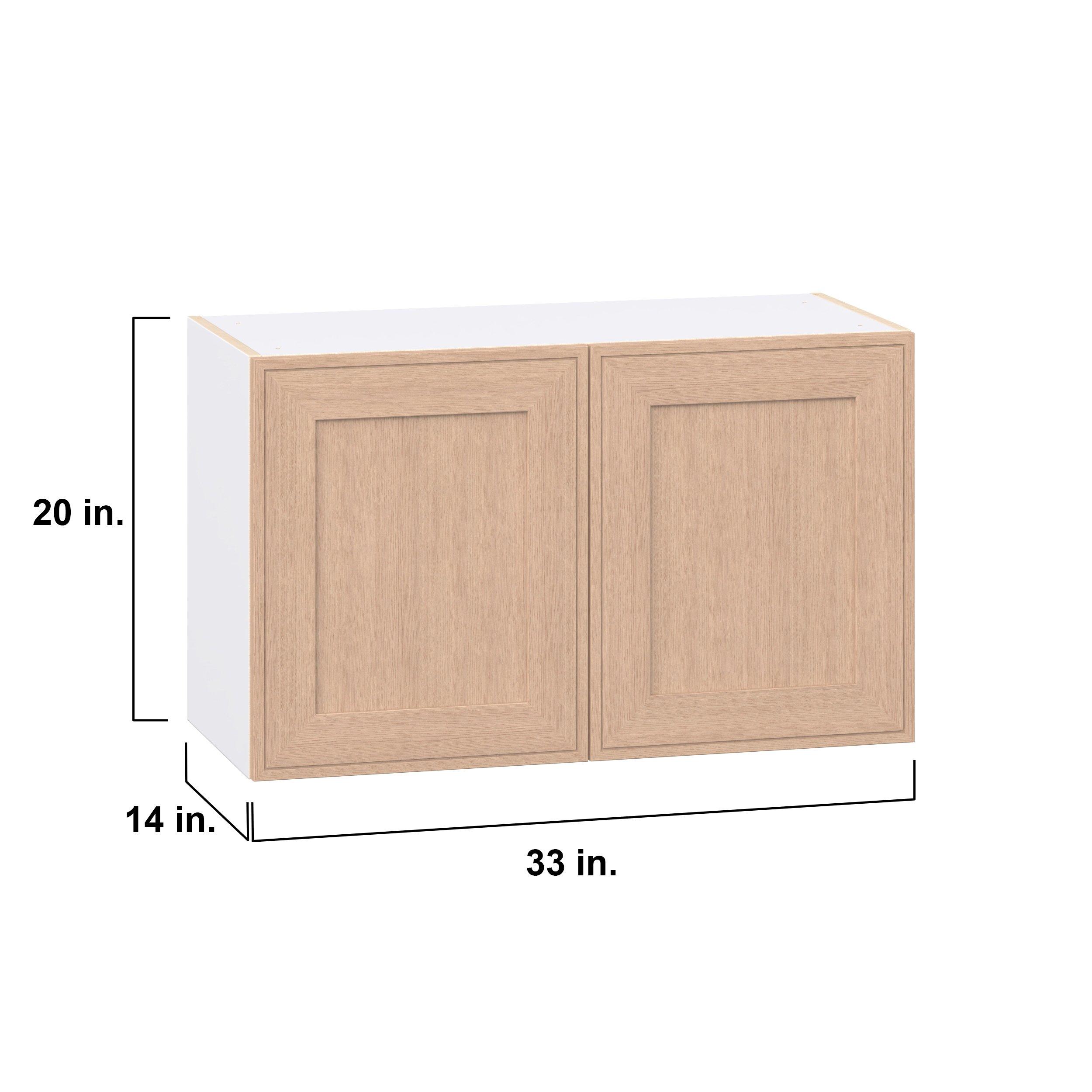 Crafted from natural rift-cut oak, Ambrose shaker-inspired cabinets deliver a modern take on timeless style. Designed to emulate the look of inset framed cabinetry while offering the full-access advantages of frameless construction, Studio Design Collection Ambrose 33 in. Stained Sandbar Rift-Cut Oak Bridge Wall Cabinet blends classic appeal with smart functionality. With 5-piece mitered doors, soft-close hardware, solid wood dovetail drawers, and a designer linen interior, every detail is built for lasting performance. A robust selection of interior accessories—from pull-outs to organizers—ensures the inside works as beautifully as the outside looks.
