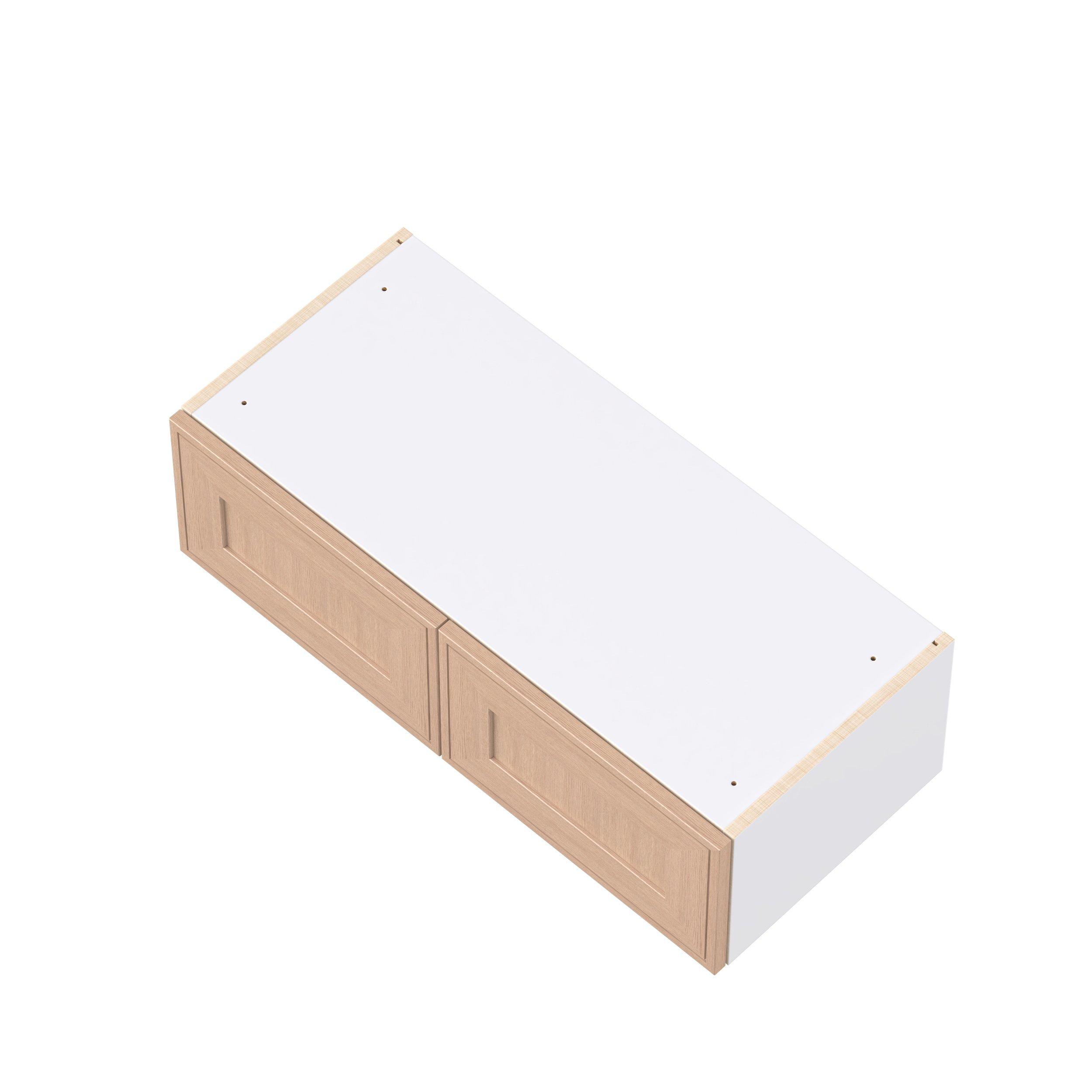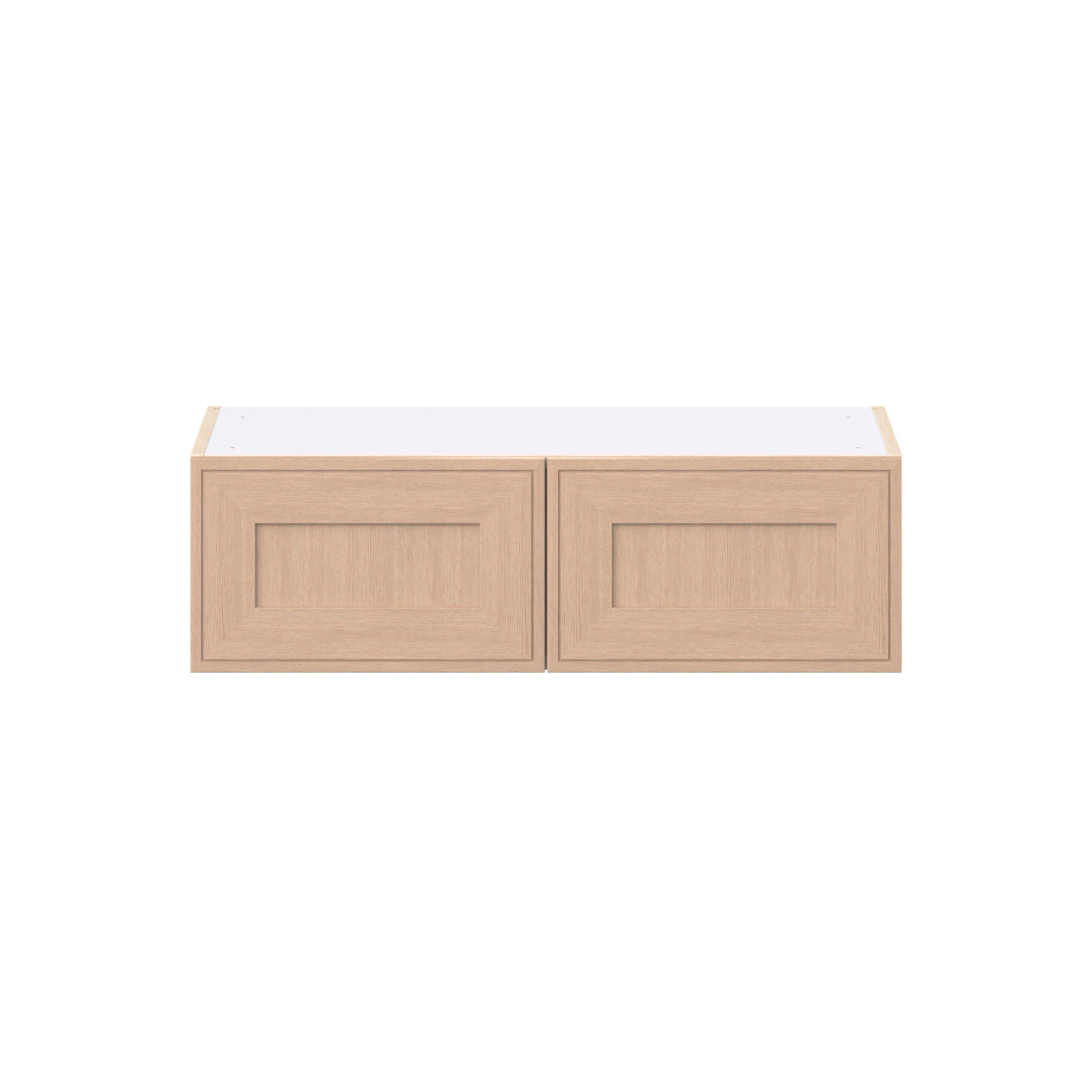 Crafted from natural rift-cut oak, Ambrose shaker-inspired cabinets deliver a modern take on timeless style. Designed to emulate the look of inset framed cabinetry while offering the full-access advantages of frameless construction, Studio Design Collection Ambrose 33 in. Stained Sandbar Rift-Cut Oak Bridge Wall Cabinet blends classic appeal with smart functionality. With 5-piece mitered doors, soft-close hardware, solid wood dovetail drawers, and a designer linen interior, every detail is built for lasting performance. A robust selection of interior accessories—from pull-outs to organizers—ensures the inside works as beautifully as the outside looks.