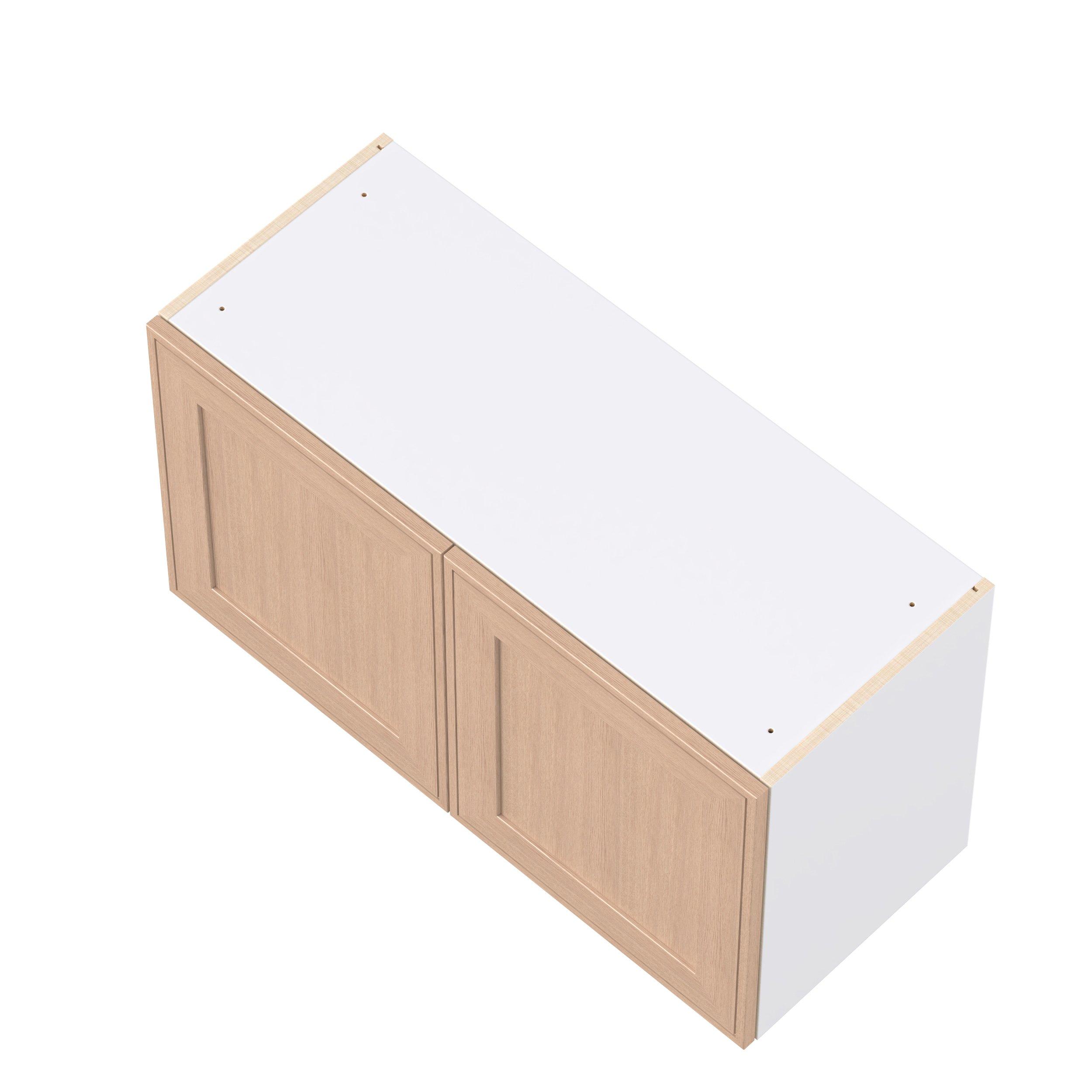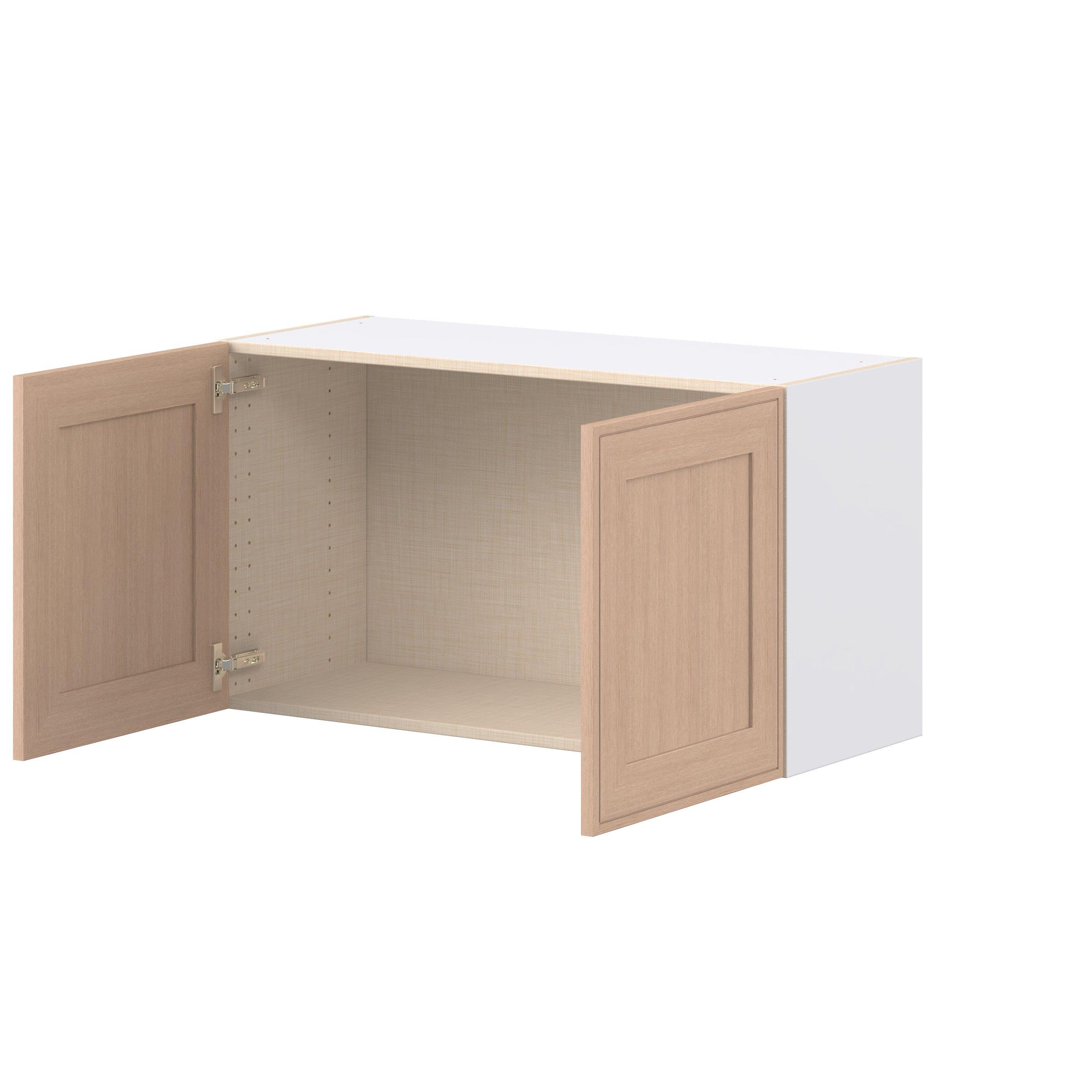 Crafted from natural rift-cut oak, Ambrose shaker-inspired cabinets deliver a modern take on timeless style. Designed to emulate the look of inset framed cabinetry while offering the full-access advantages of frameless construction, Studio Design Collection Ambrose 36 in. Stained Sandbar Rift-Cut Oak Bridge Wall Cabinet blends classic appeal with smart functionality. With 5-piece mitered doors, soft-close hardware, solid wood dovetail drawers, and a designer linen interior, every detail is built for lasting performance. A robust selection of interior accessories—from pull-outs to organizers—ensures the inside works as beautifully as the outside looks.