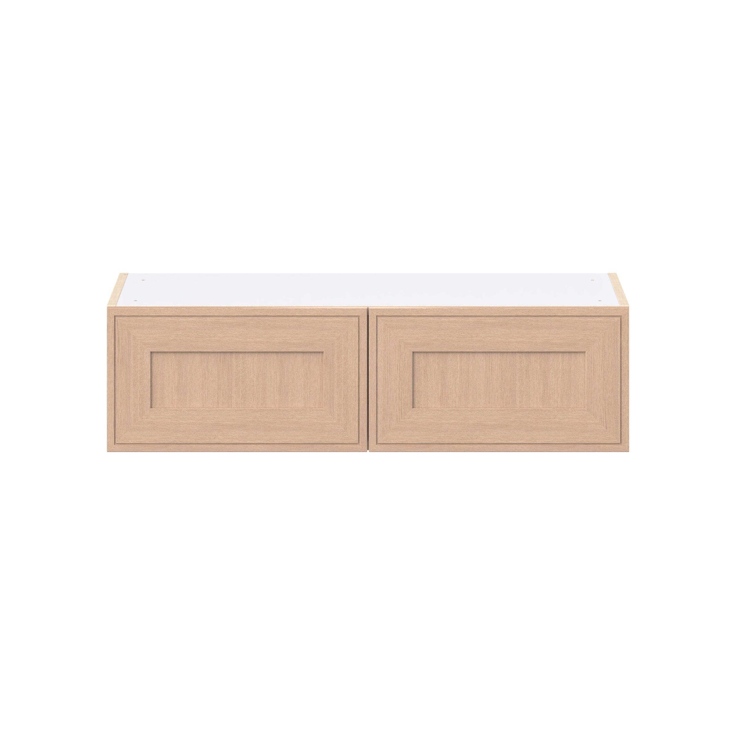 Crafted from natural rift-cut oak, Ambrose shaker-inspired cabinets deliver a modern take on timeless style. Designed to emulate the look of inset framed cabinetry while offering the full-access advantages of frameless construction, Studio Design Collection Ambrose 36 in. Stained Sandbar Rift-Cut Oak Bridge Wall Cabinet blends classic appeal with smart functionality. With 5-piece mitered doors, soft-close hardware, solid wood dovetail drawers, and a designer linen interior, every detail is built for lasting performance. A robust selection of interior accessories—from pull-outs to organizers—ensures the inside works as beautifully as the outside looks.