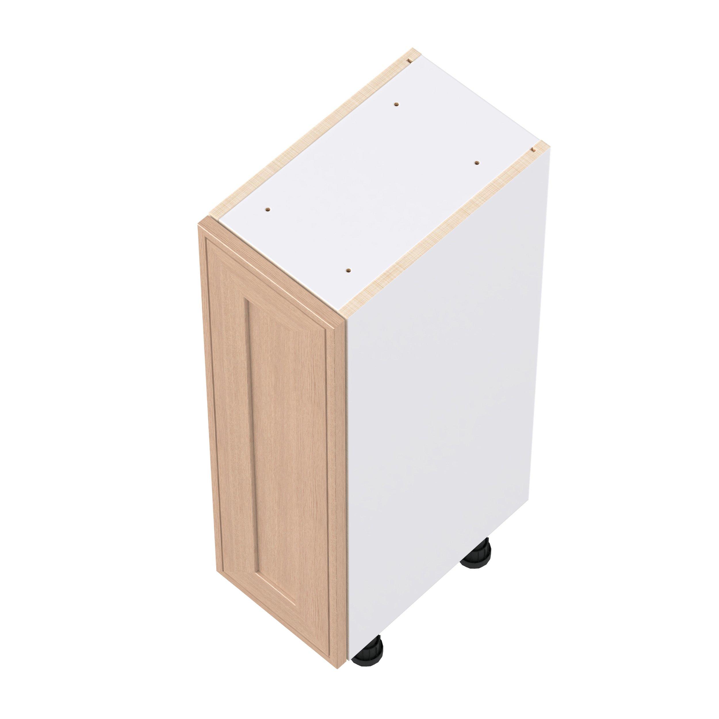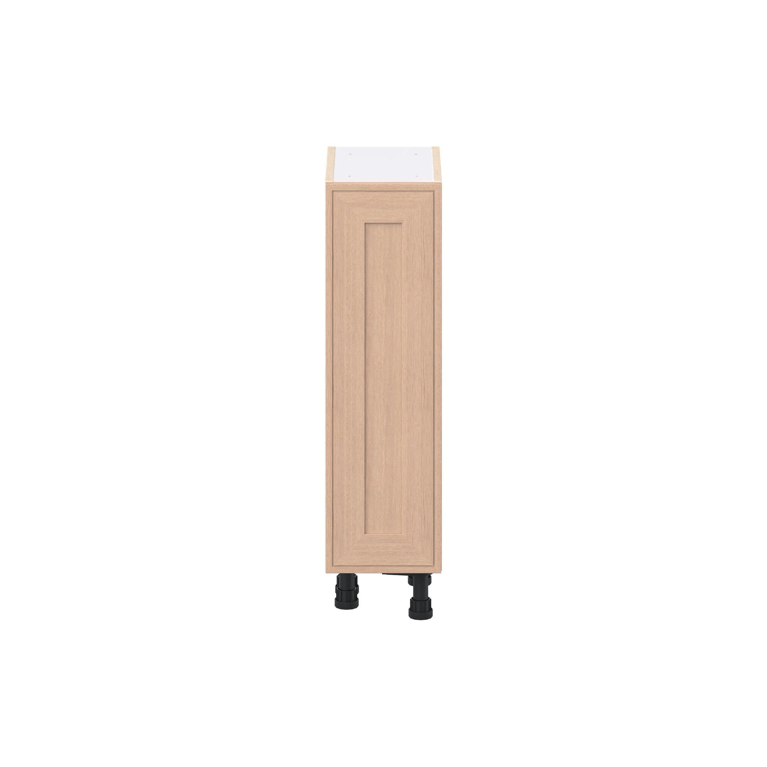 Crafted from natural rift-cut oak, Ambrose shaker-inspired cabinets deliver a modern take on timeless style. Designed to emulate the look of inset framed cabinetry while offering the full-access advantages of frameless construction, Studio Design Collection Ambrose 9 in. Stained Sandbar Rift-Cut Oak Shallow Base Cabinet blends classic appeal with smart functionality. With 5-piece mitered doors, soft-close hardware, solid wood dovetail drawers, and a designer linen interior, every detail is built for lasting performance. A robust selection of interior accessories—from pull-outs to organizers—ensures the inside works as beautifully as the outside looks.