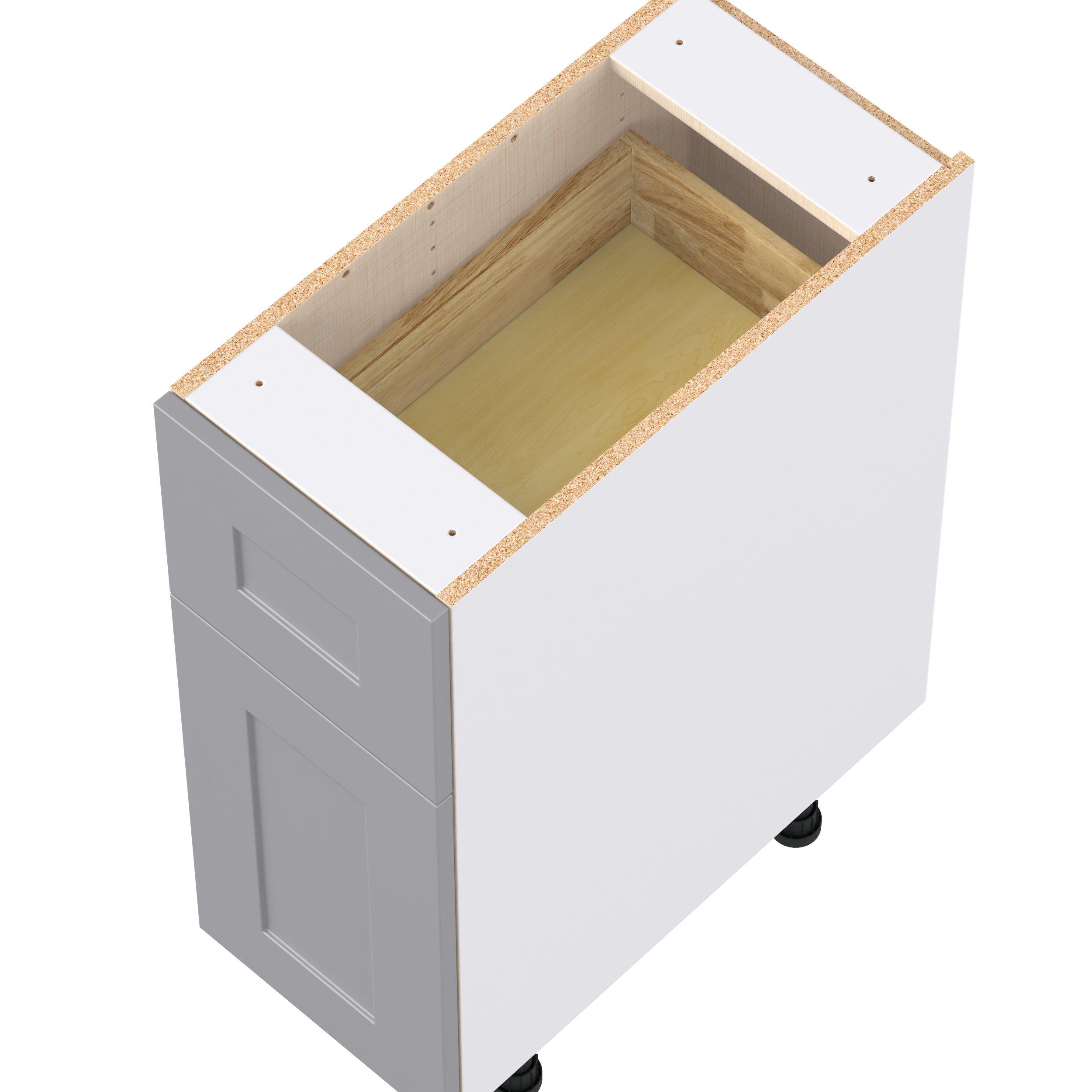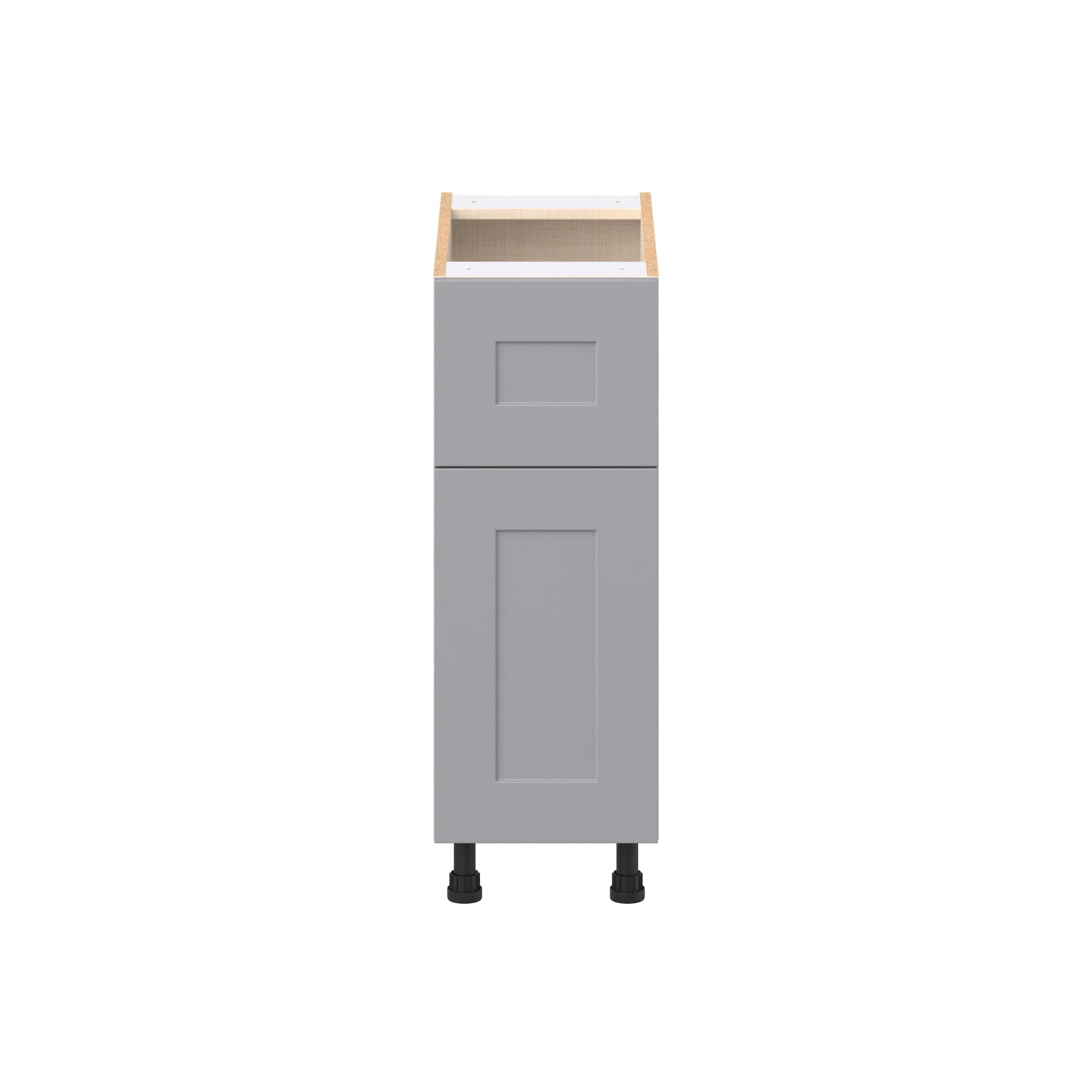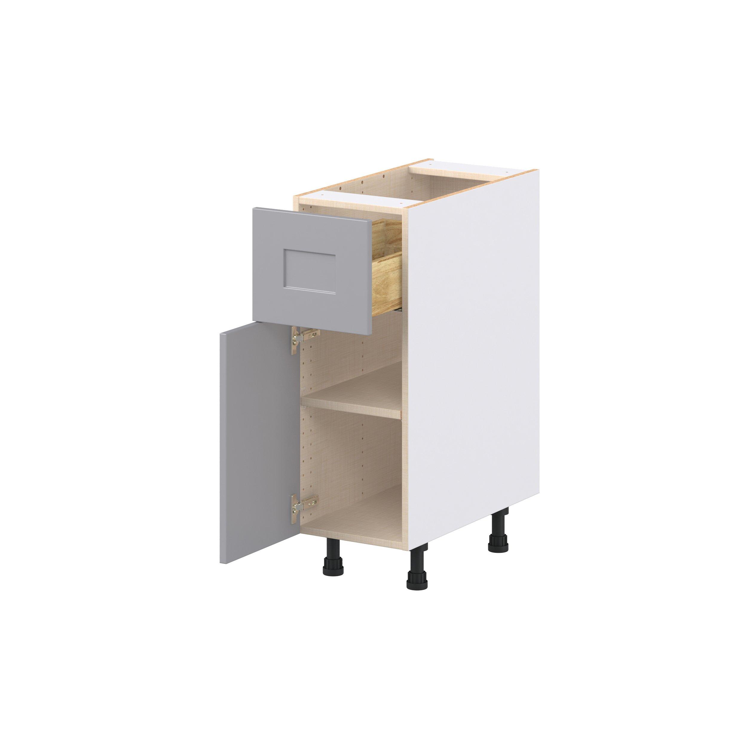 Transform your space with the elegance of Candler wide-rail shaker styles. Both the warm white and slate gray options create a rich transitional backdrop to complement any decor. Crafted from one-piece MDF Studio Design Collection Candler 12 in. Painted Slate Gray Door and Drawer Base Cabinet is designed to resist hairline cracks while the easy-to-clean finish stands up to stains and moisture. Featuring 5-piece doors and dovetail drawer joints, these cabinets offer durability and elegance. This collection combines style with everyday storage solutions.