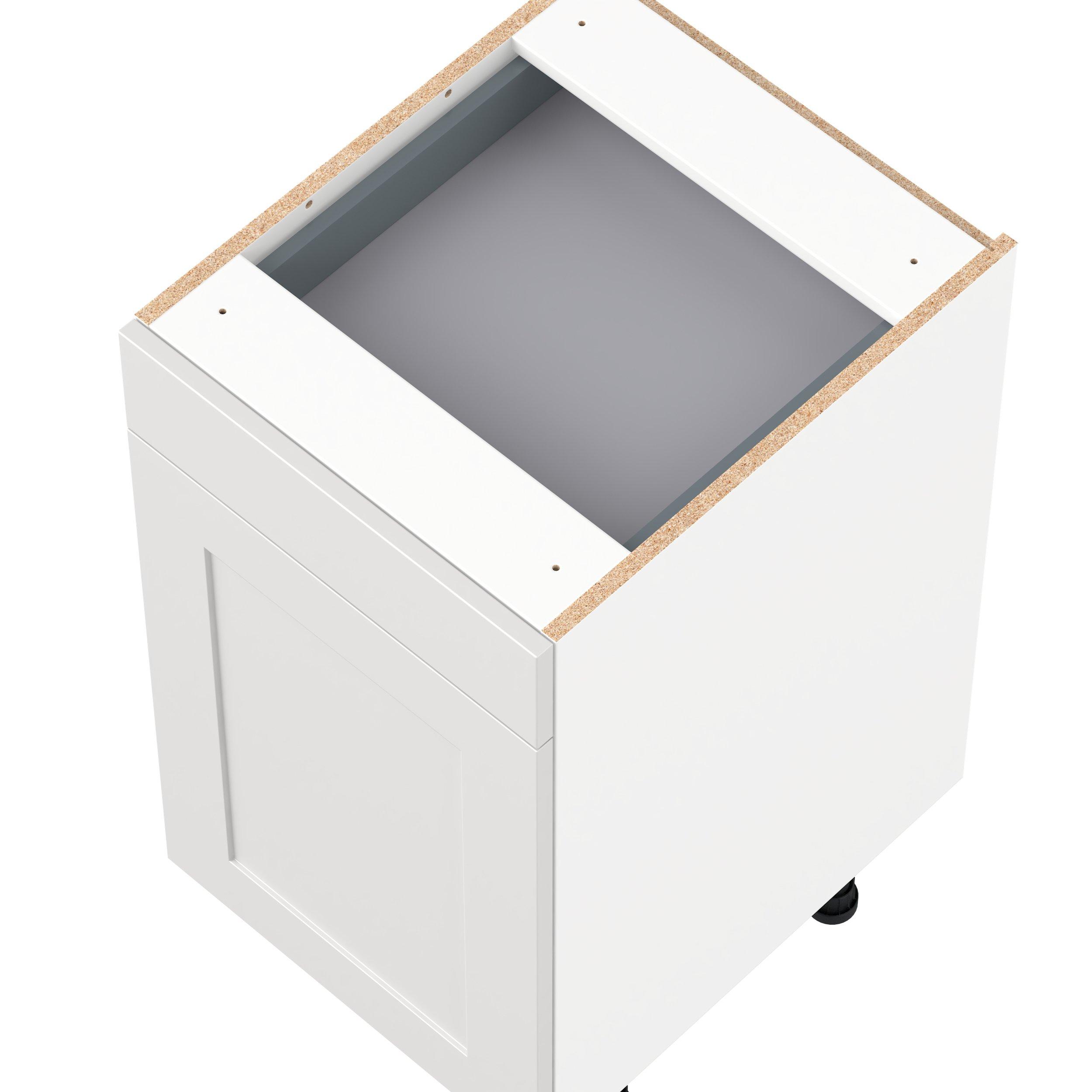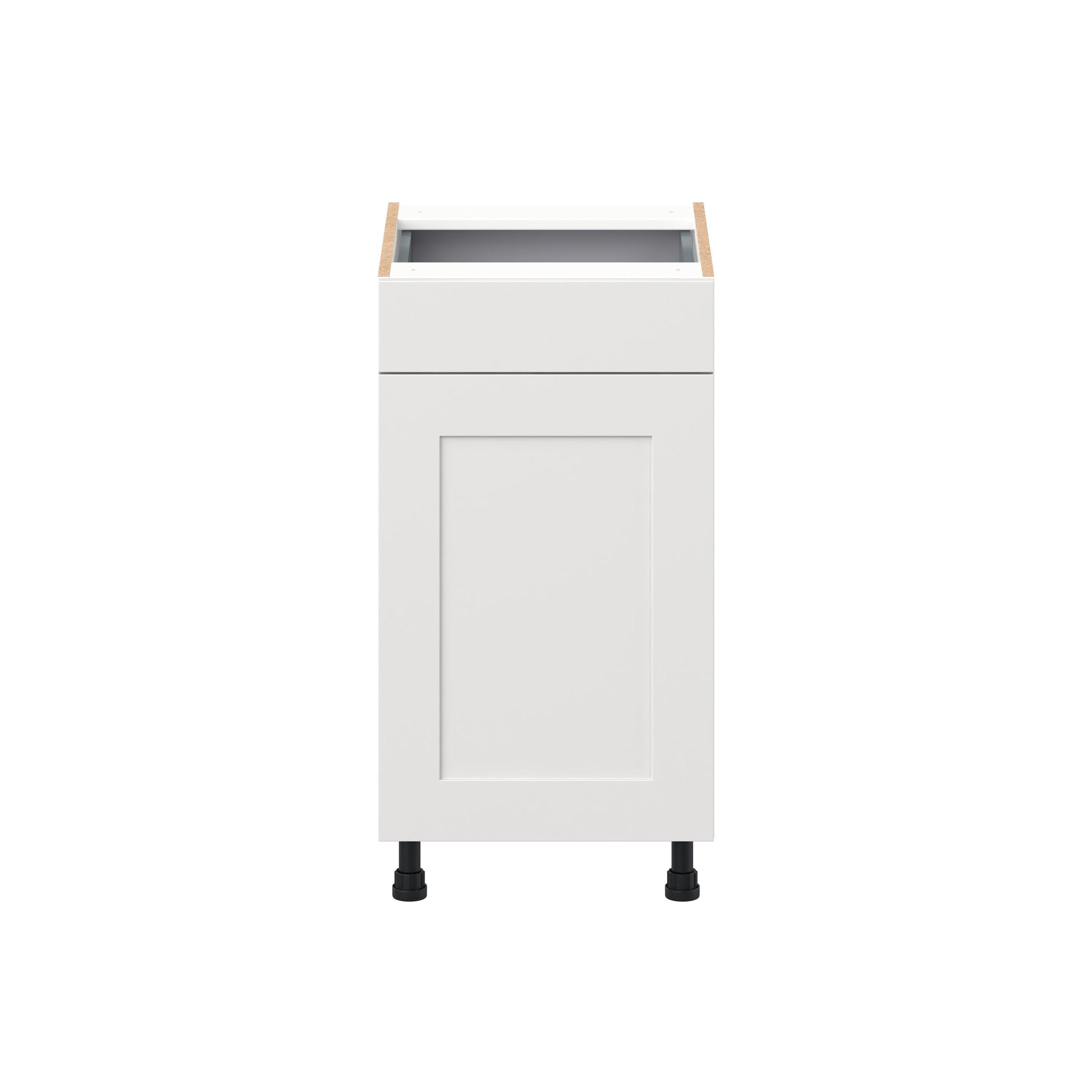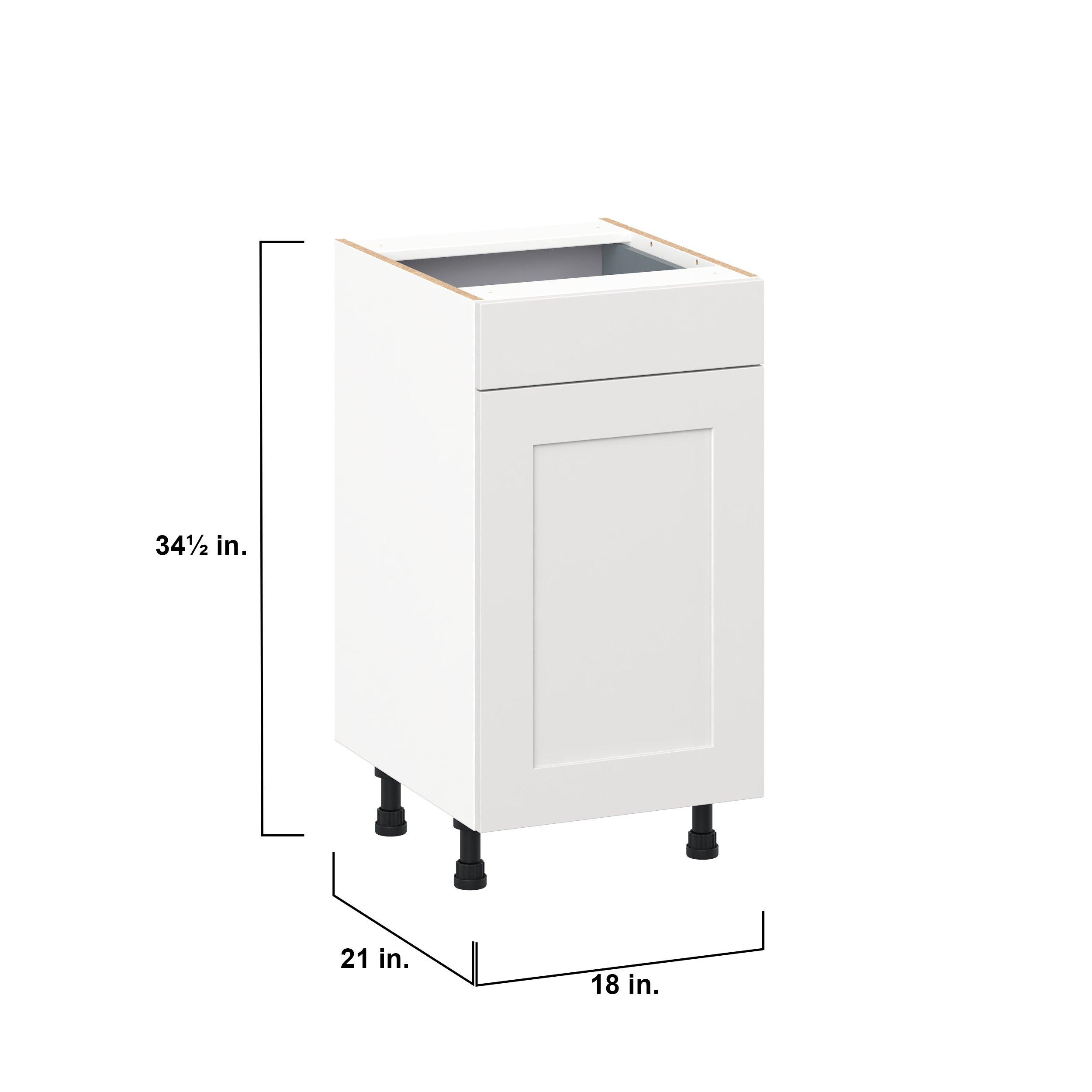 Transform your space with the elegance of Candler wide-rail shaker styles. Both the warm white and slate gray options create a rich transitional backdrop to complement any decor. Crafted from one-piece MDF Studio Design Collection Candler 18 in. Painted Warm White Vanity Door and Drawer Base Cabinet - ADA is designed to resist hairline cracks while the easy-to-clean finish stands up to stains and moisture. Featuring 5-piece doors and dovetail drawer joints, these cabinets offer durability and elegance. This collection combines style with everyday storage solutions.