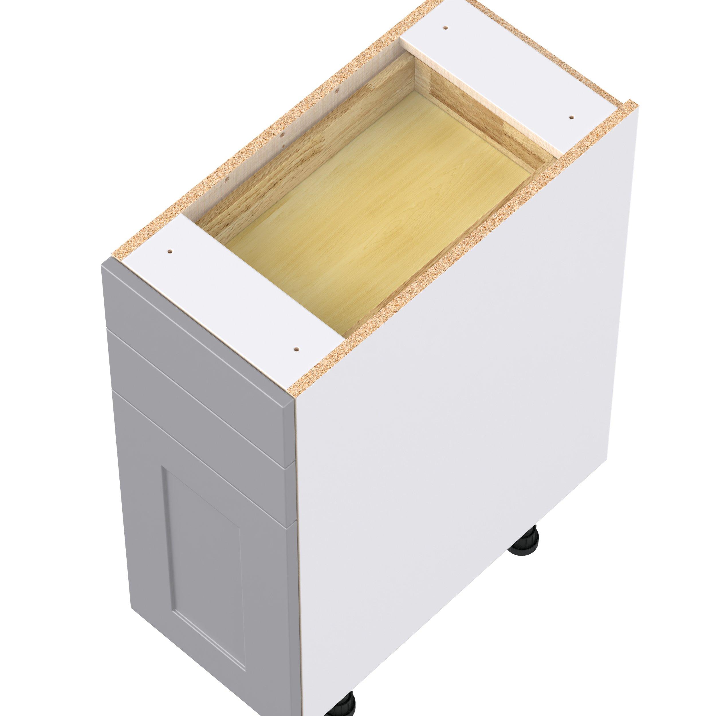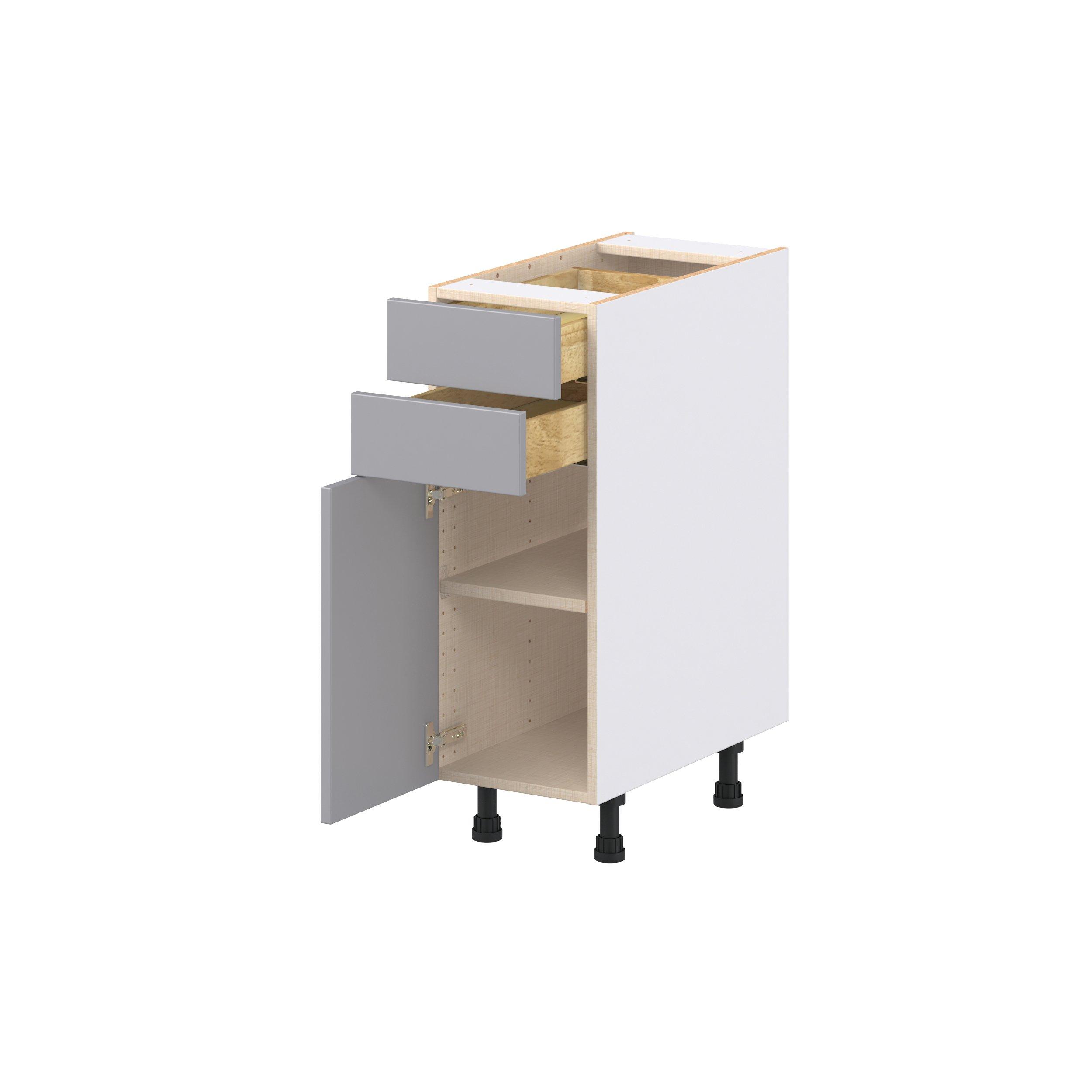 Transform your space with the elegance of Candler wide-rail shaker styles. Both the warm white and slate gray options create a rich transitional backdrop to complement any decor. Crafted from one-piece MDF Studio Design Collection Candler 12 in. Painted Slate Gray Door and Drawer Base Cabinet is designed to resist hairline cracks while the easy-to-clean finish stands up to stains and moisture. Featuring 5-piece doors and dovetail drawer joints, these cabinets offer durability and elegance. This collection combines style with everyday storage solutions.