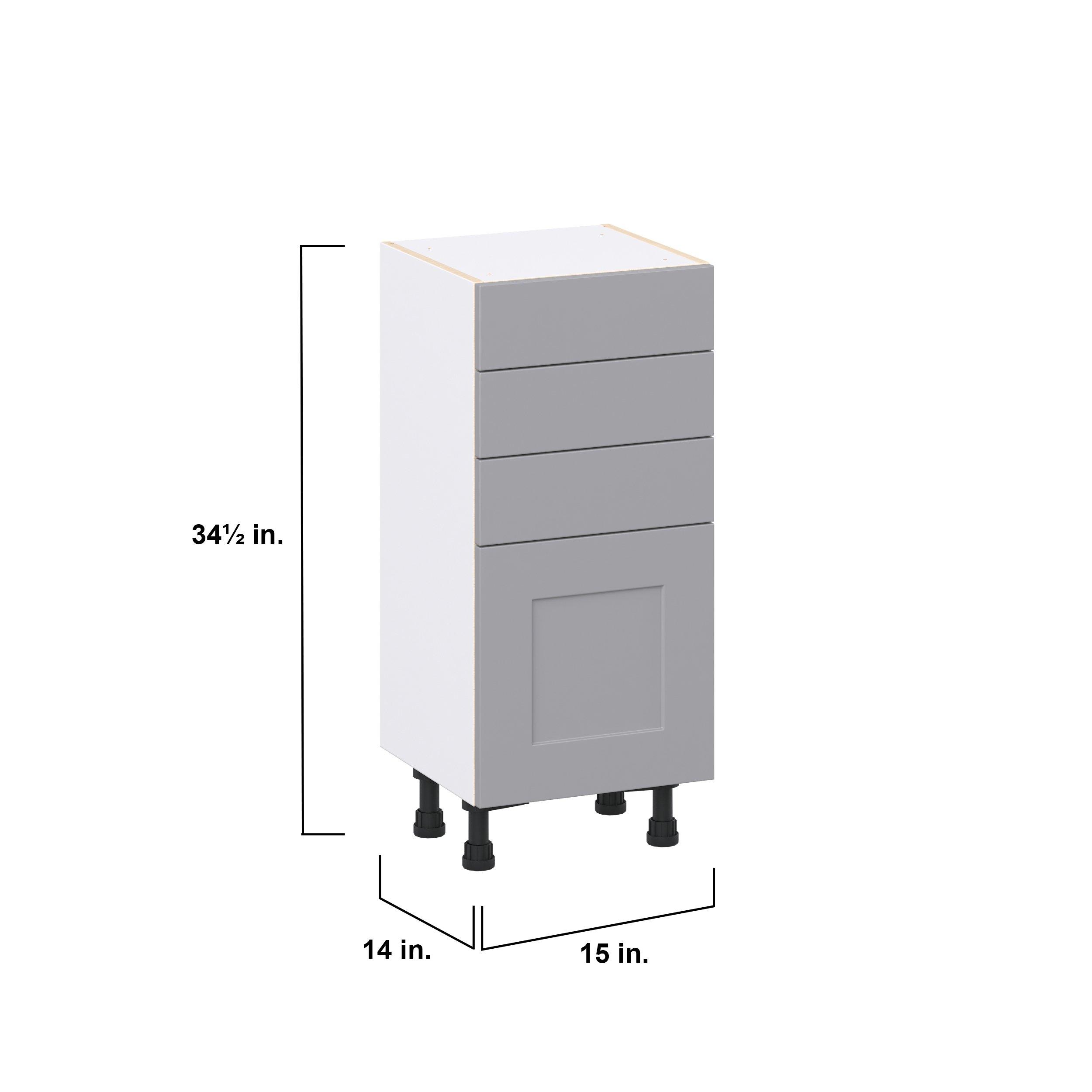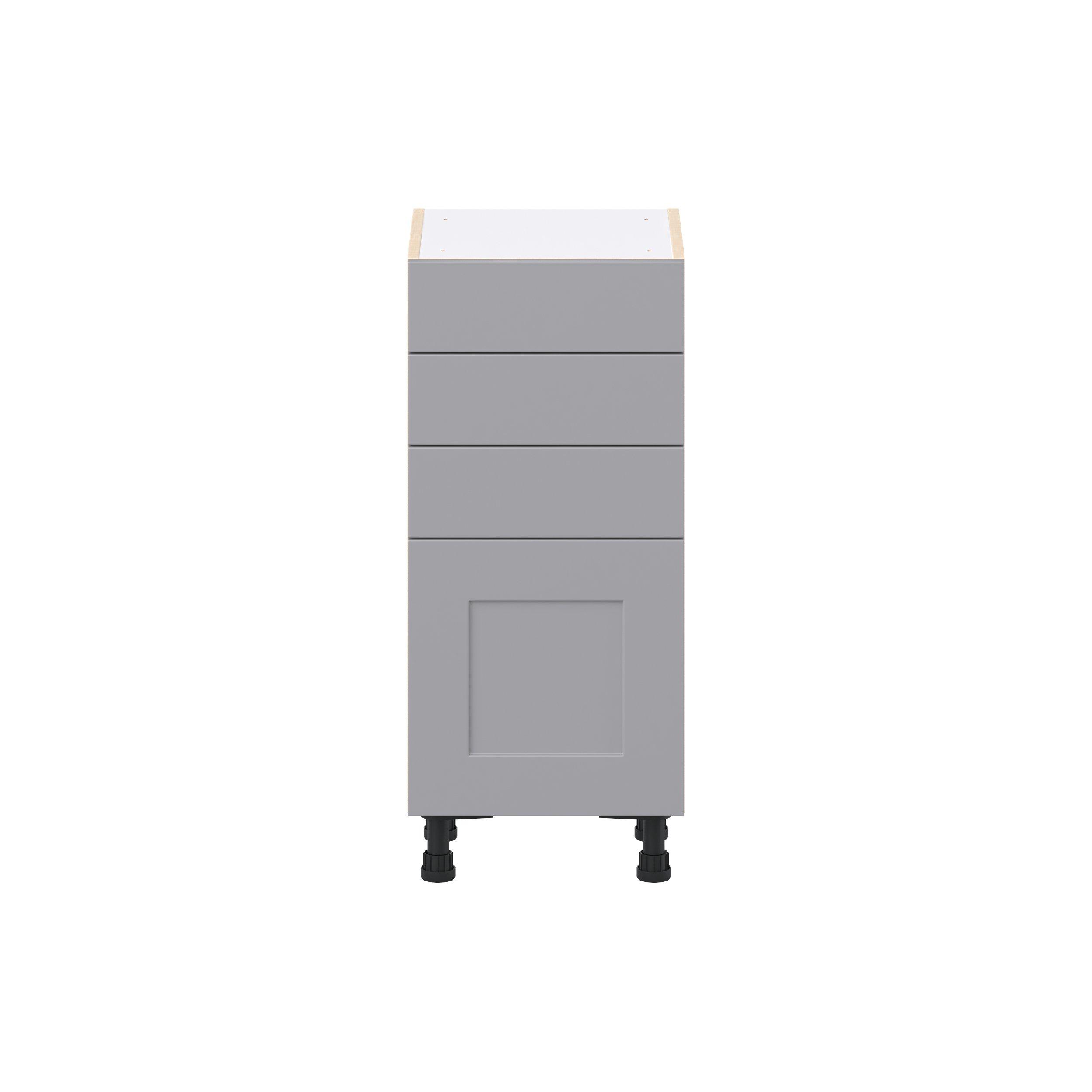 Transform your space with the elegance of Candler wide-rail shaker styles. Both the warm white and slate gray options create a rich transitional backdrop to complement any decor. Crafted from one-piece MDF Studio Design Collection Candler 15 in. Painted Slate Gray Shallow Base Cabinet is designed to resist hairline cracks while the easy-to-clean finish stands up to stains and moisture. Featuring 5-piece doors and dovetail drawer joints, these cabinets offer durability and elegance. This collection combines style with everyday storage solutions.