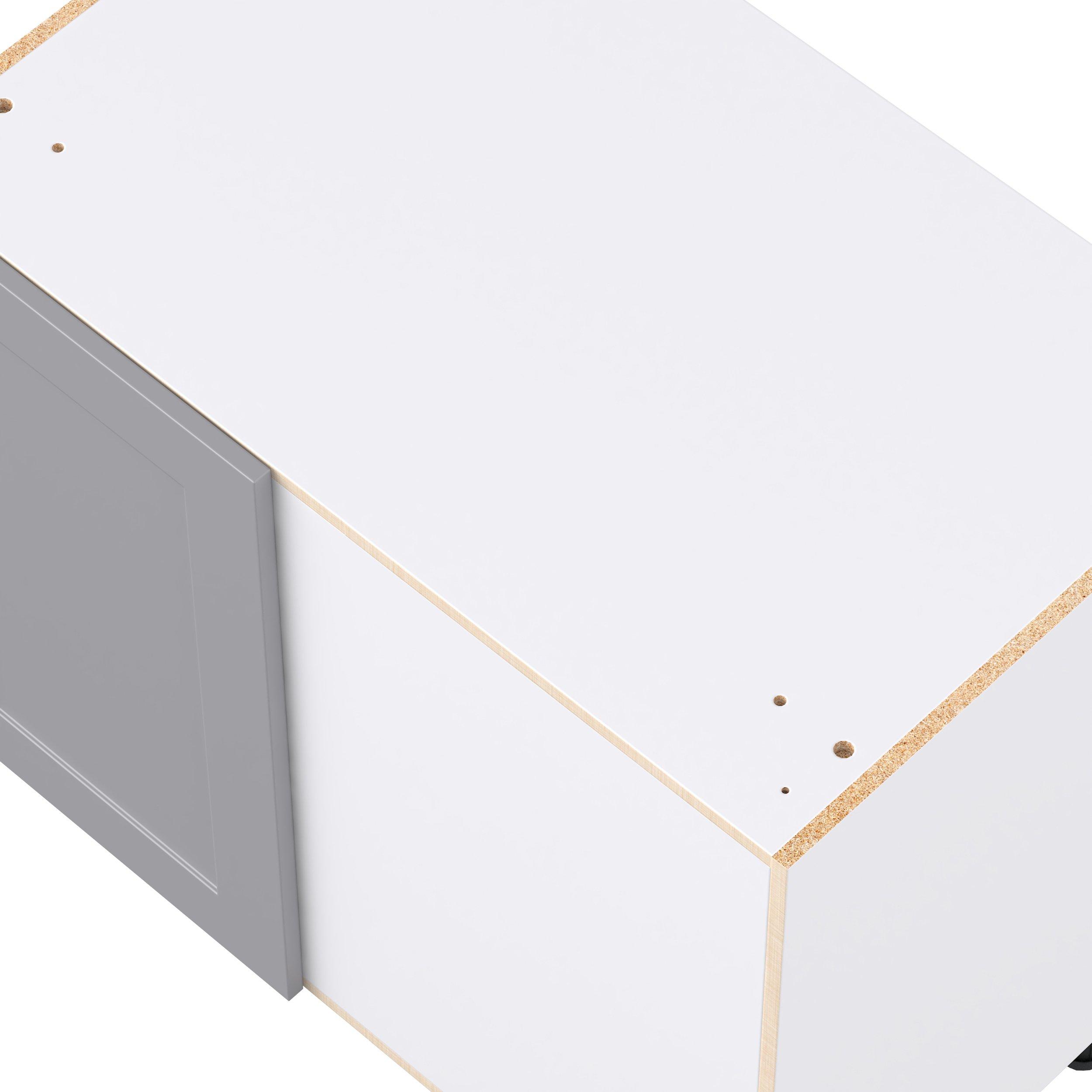 Transform your space with the elegance of Candler wide-rail shaker styles. Both the warm white and slate gray options create a rich transitional backdrop to complement any decor. Crafted from one-piece MDF Studio Design Collection Candler 39 in. Painted Slate Gray Blind Corner Base Cabinet is designed to resist hairline cracks while the easy-to-clean finish stands up to stains and moisture. Featuring 5-piece doors and dovetail drawer joints, these cabinets offer durability and elegance. This collection combines style with everyday storage solutions.