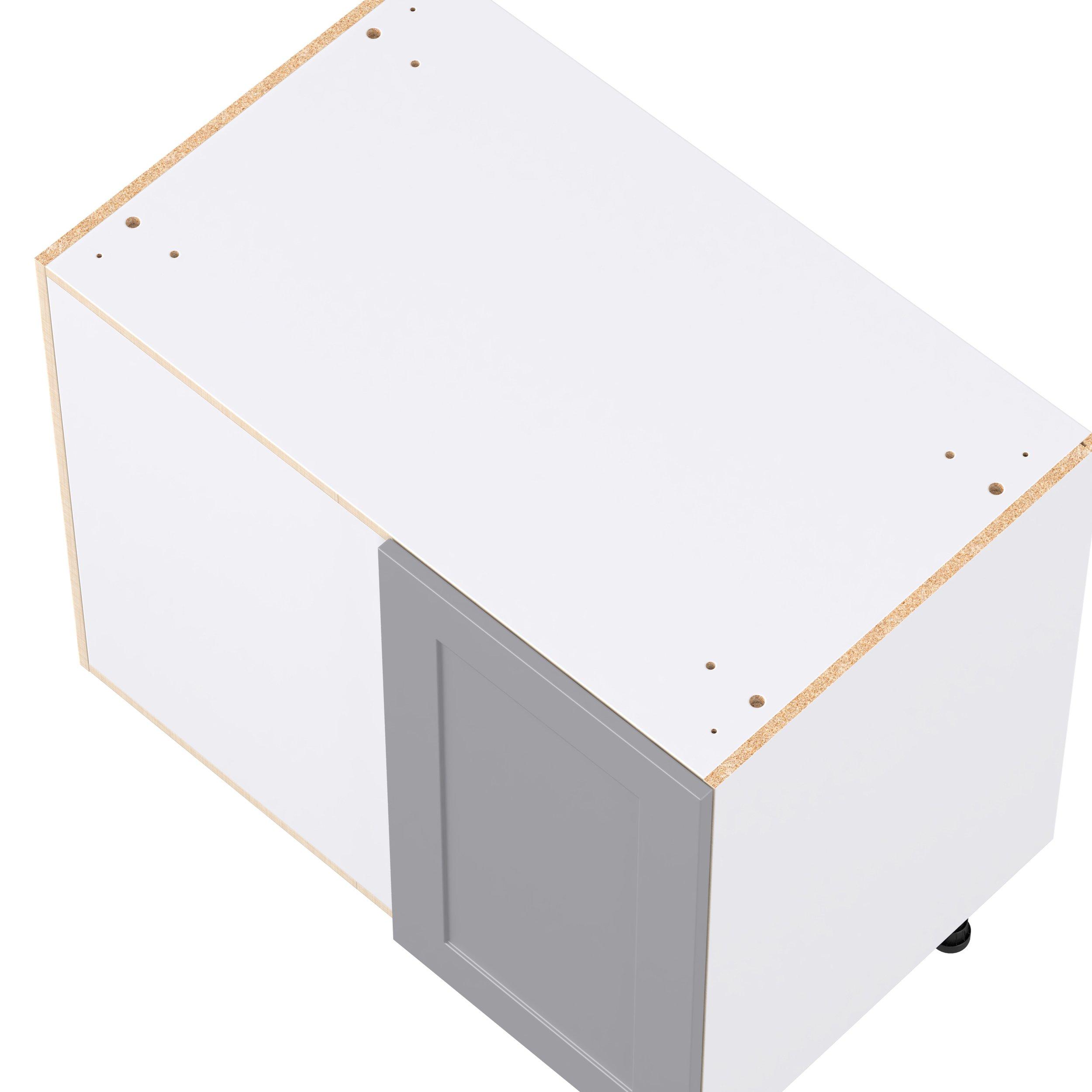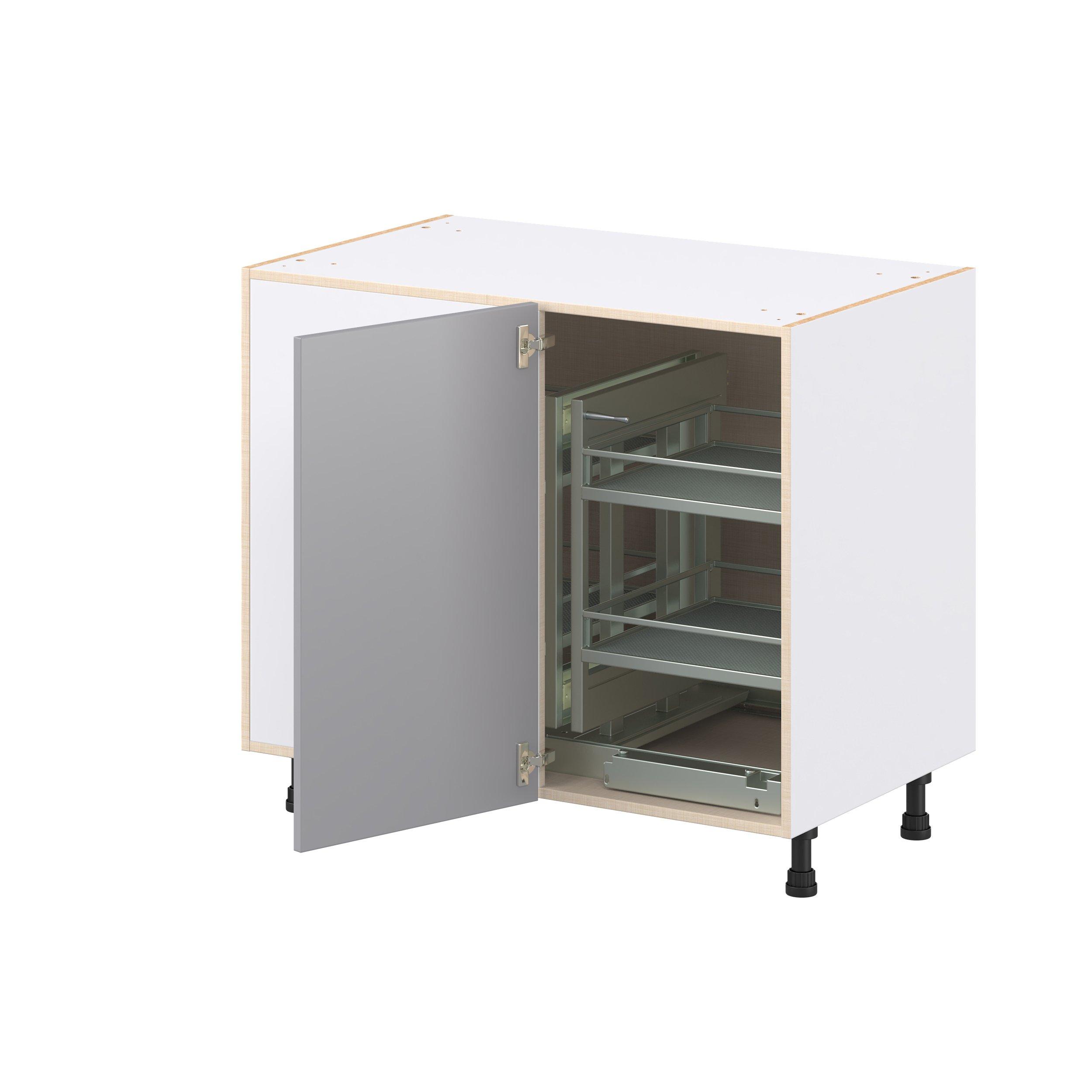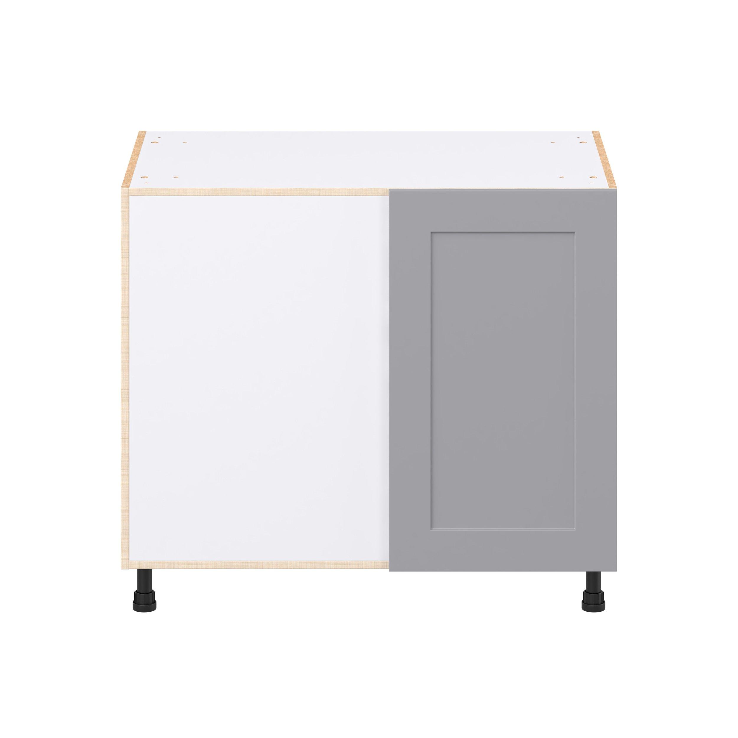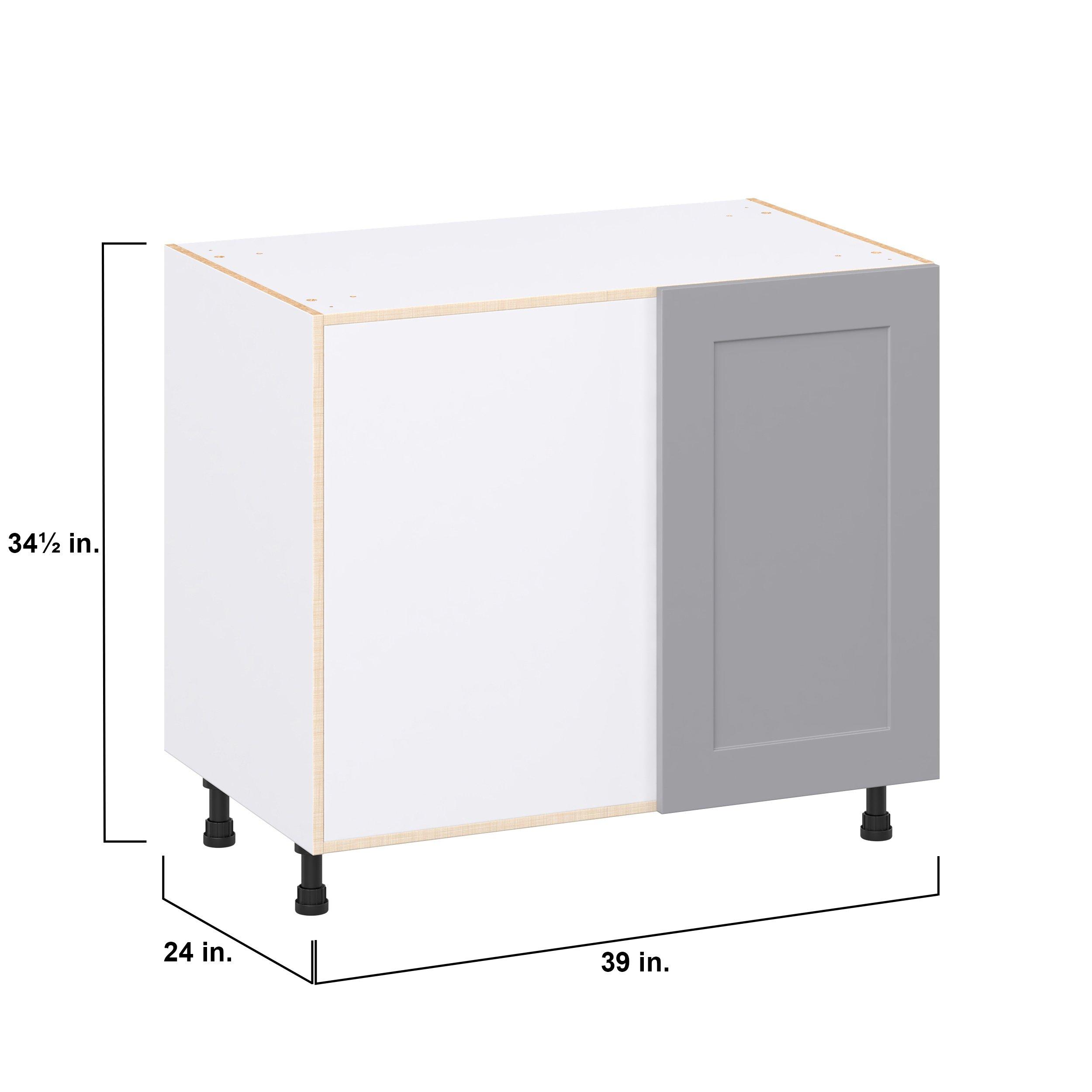 Transform your space with the elegance of Candler wide-rail shaker styles. Both the warm white and slate gray options create a rich transitional backdrop to complement any decor. Crafted from one-piece MDF Studio Design Collection Candler 39 in. Painted Slate Gray Swing Out Blind Corner Base Cabinet is designed to resist hairline cracks while the easy-to-clean finish stands up to stains and moisture. Featuring 5-piece doors and dovetail drawer joints, these cabinets offer durability and elegance. This collection combines style with everyday storage solutions.