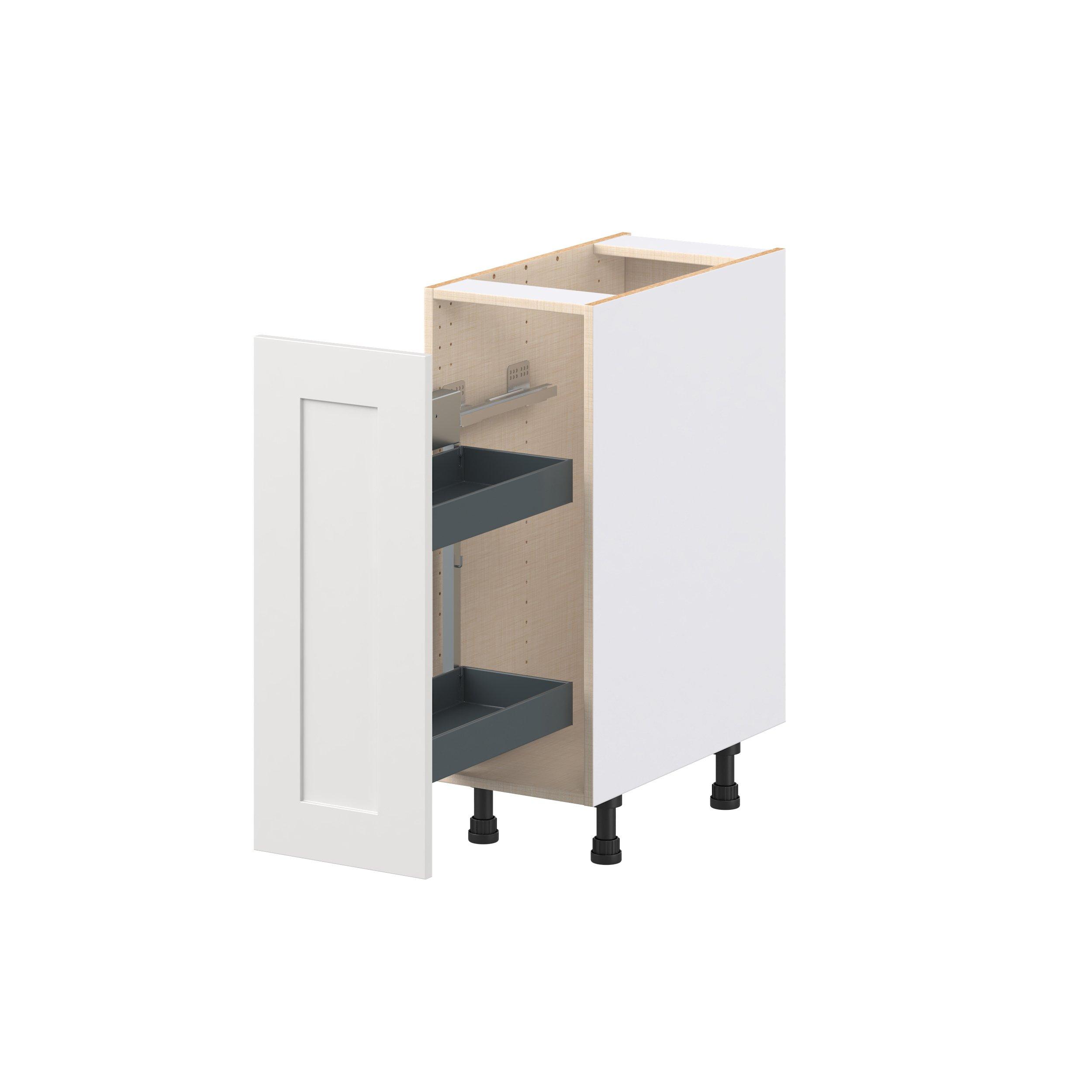 Transform your space with the elegance of Candler wide-rail shaker styles. Both the warm white and slate gray options create a rich transitional backdrop to complement any decor. Crafted from one-piece MDF Studio Design Collection Candler 12 in. Painted Slate Gray Spice Rack Pull-Out Base Cabinet is designed to resist hairline cracks while the easy-to-clean finish stands up to stains and moisture. Featuring 5-piece doors and dovetail drawer joints, these cabinets offer durability and elegance. This collection combines style with everyday storage solutions.