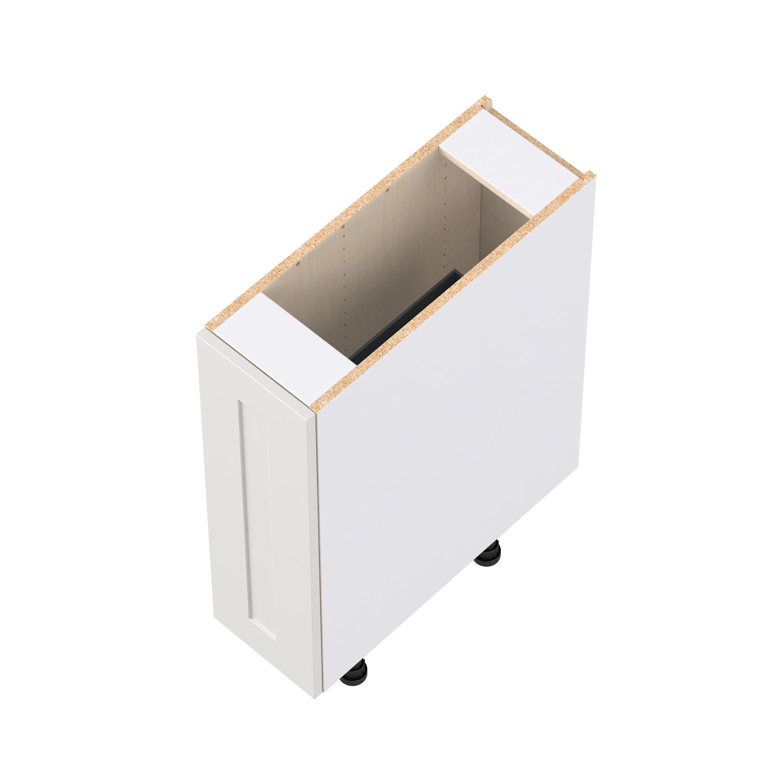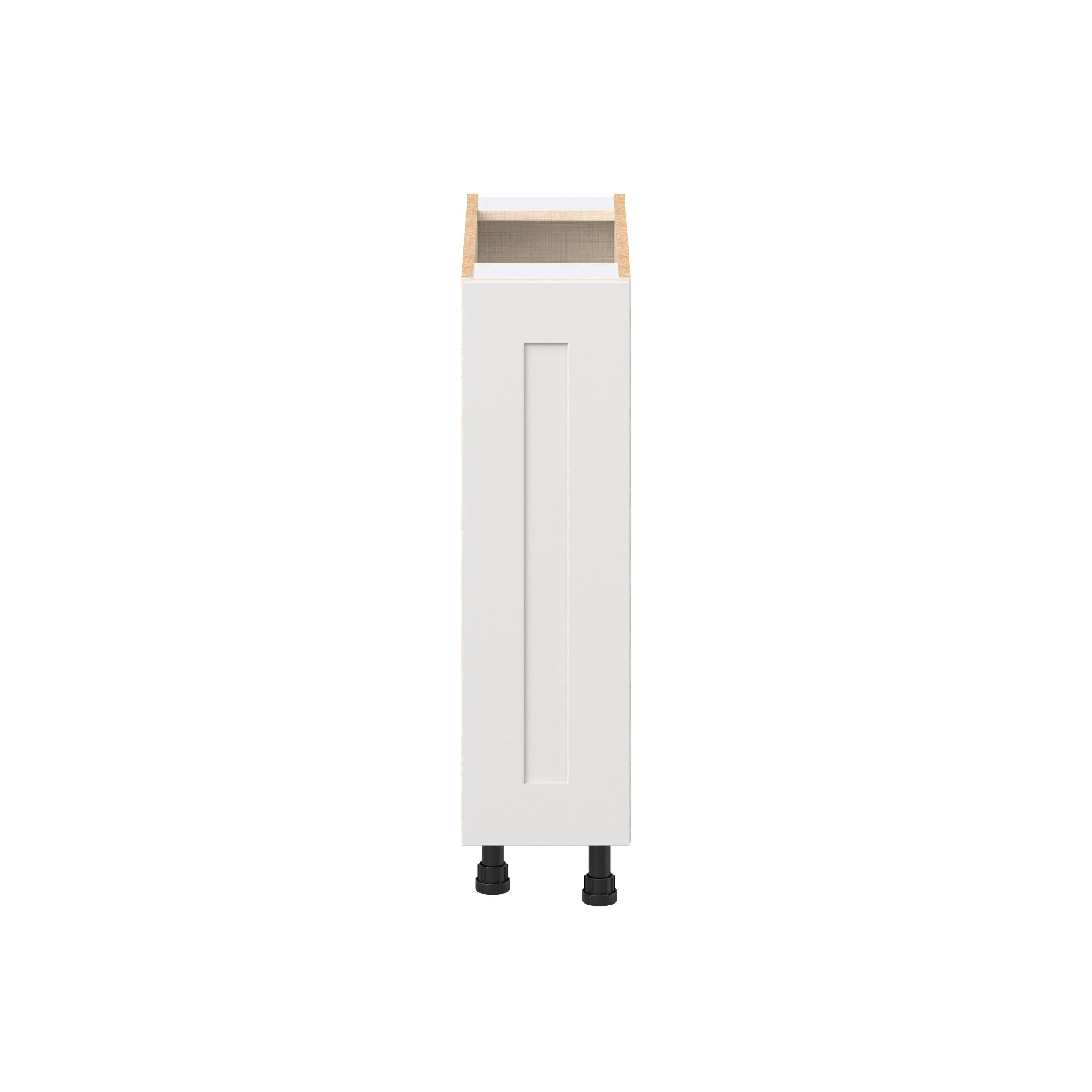 Transform your space with the elegance of Candler wide-rail shaker styles. Both the warm white and slate gray options create a rich transitional backdrop to complement any decor. Crafted from one-piece MDF Studio Design Collection Candler 9 in. Painted Warm White Spice Rack Pull-Out Base Cabinet is designed to resist hairline cracks while the easy-to-clean finish stands up to stains and moisture. Featuring 5-piece doors and dovetail drawer joints, these cabinets offer durability and elegance. This collection combines style with everyday storage solutions.