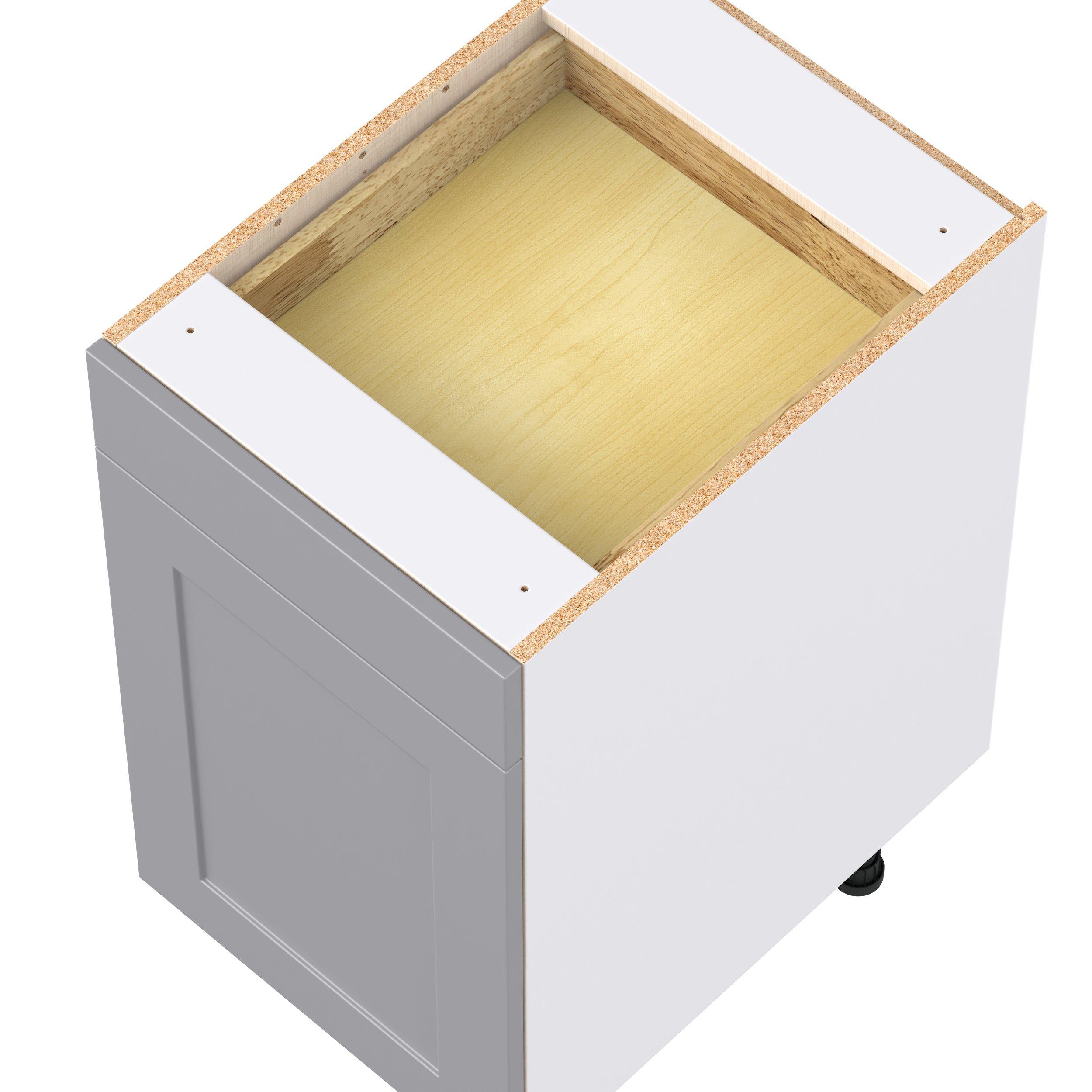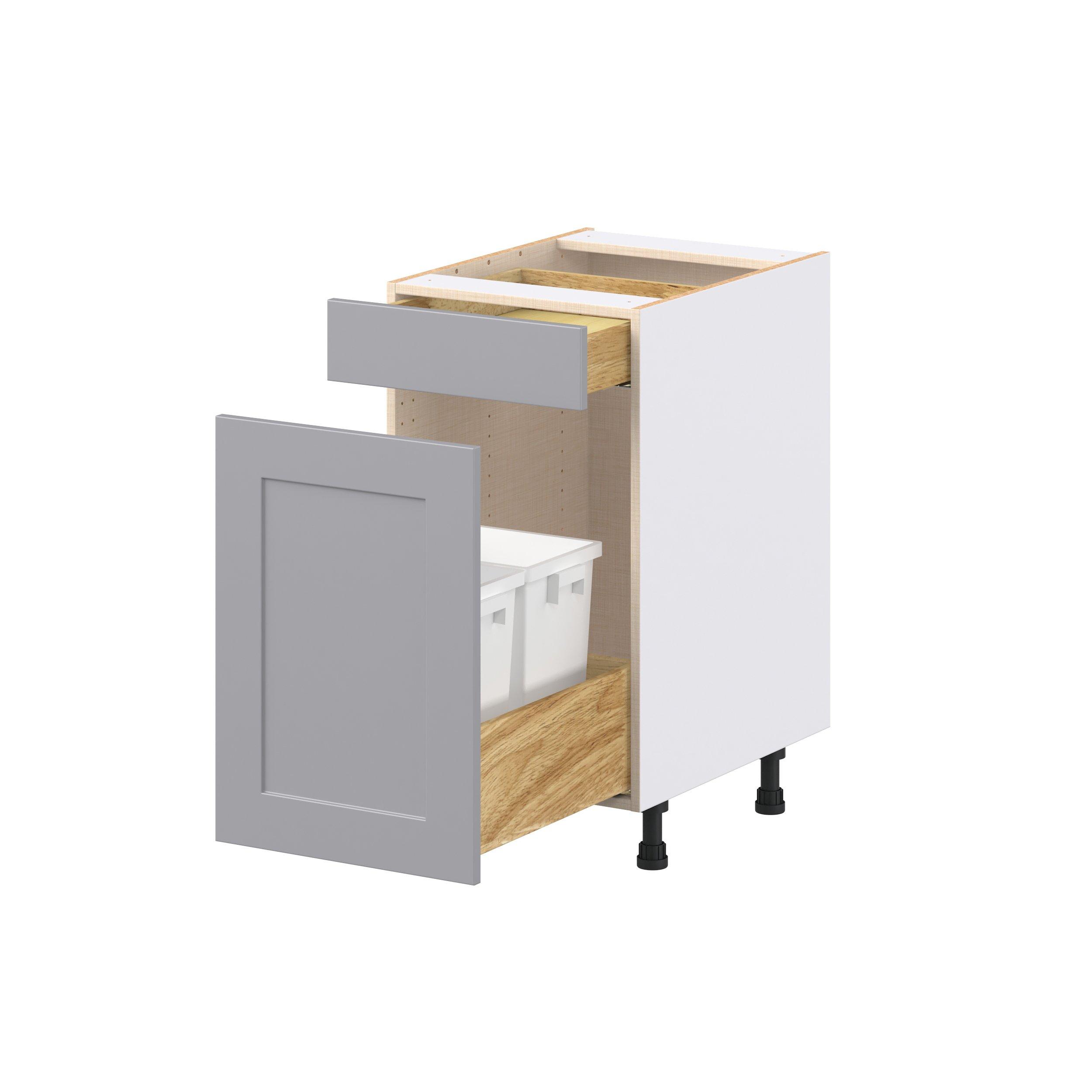 Transform your space with the elegance of Candler wide-rail shaker styles. Both the warm white and slate gray options create a rich transitional backdrop to complement any decor. Crafted from one-piece MDF Studio Design Collection Candler 18 in. Painted Slate Gray Trash Can Pull-Out Base Cabinet is designed to resist hairline cracks while the easy-to-clean finish stands up to stains and moisture. Featuring 5-piece doors and dovetail drawer joints, these cabinets offer durability and elegance. This collection combines style with everyday storage solutions.