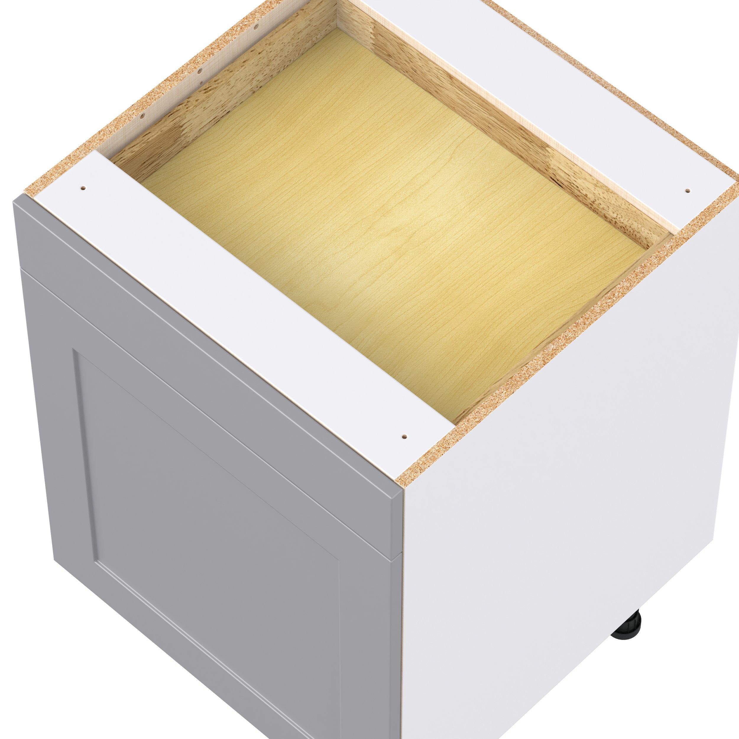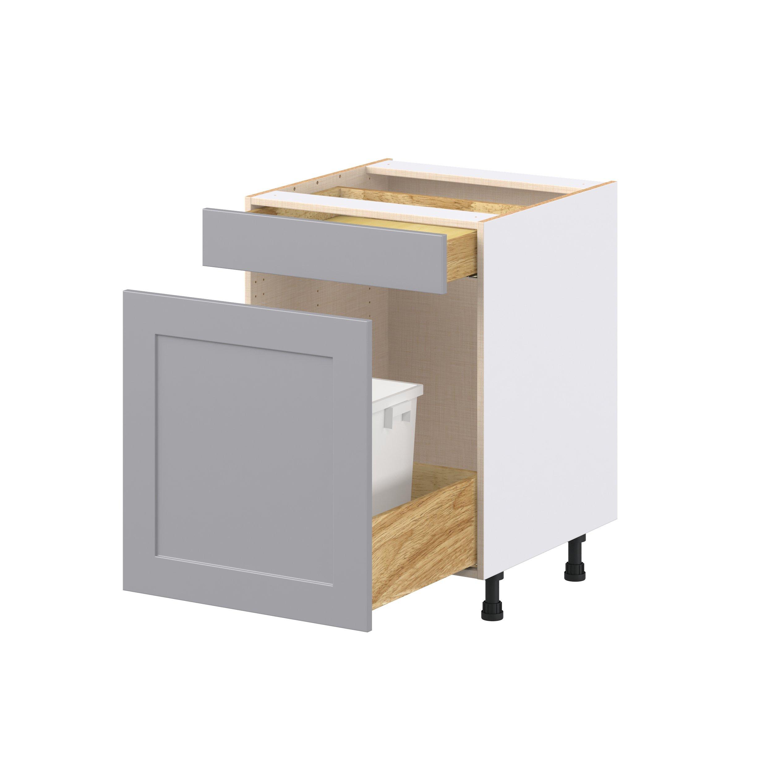Transform your space with the elegance of Candler wide-rail shaker styles. Both the warm white and slate gray options create a rich transitional backdrop to complement any decor. Crafted from one-piece MDF Studio Design Collection Candler 24 in. Painted Slate Gray Trash Can Pull-Out Base Cabinet is designed to resist hairline cracks while the easy-to-clean finish stands up to stains and moisture. Featuring 5-piece doors and dovetail drawer joints, these cabinets offer durability and elegance. This collection combines style with everyday storage solutions.