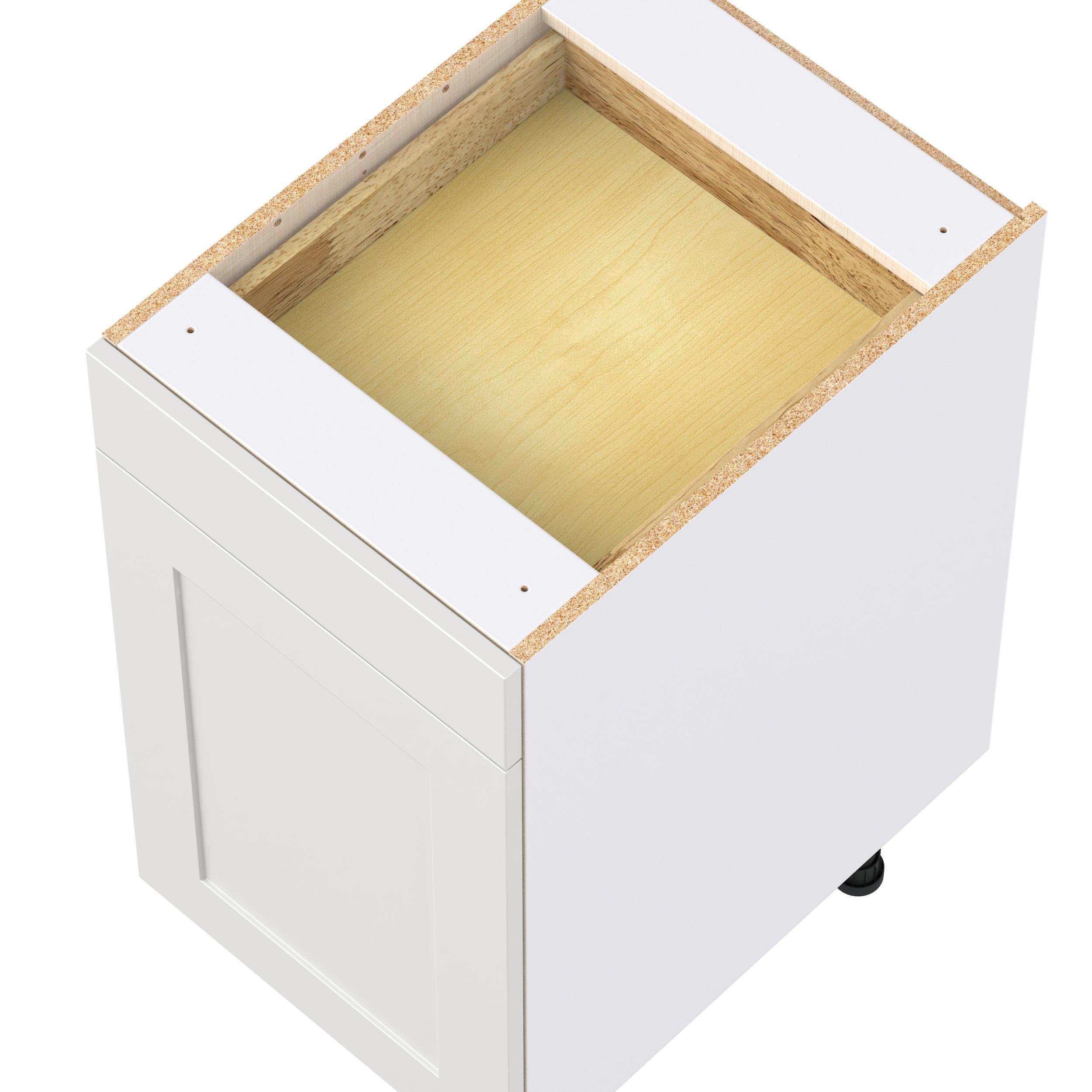 Transform your space with the elegance of Candler wide-rail shaker styles. Both the warm white and slate gray options create a rich transitional backdrop to complement any decor. Crafted from one-piece MDF Studio Design Collection Candler 18 in. Painted Warm White Trash Can Pull-Out Base Cabinet is designed to resist hairline cracks while the easy-to-clean finish stands up to stains and moisture. Featuring 5-piece doors and dovetail drawer joints, these cabinets offer durability and elegance. This collection combines style with everyday storage solutions.