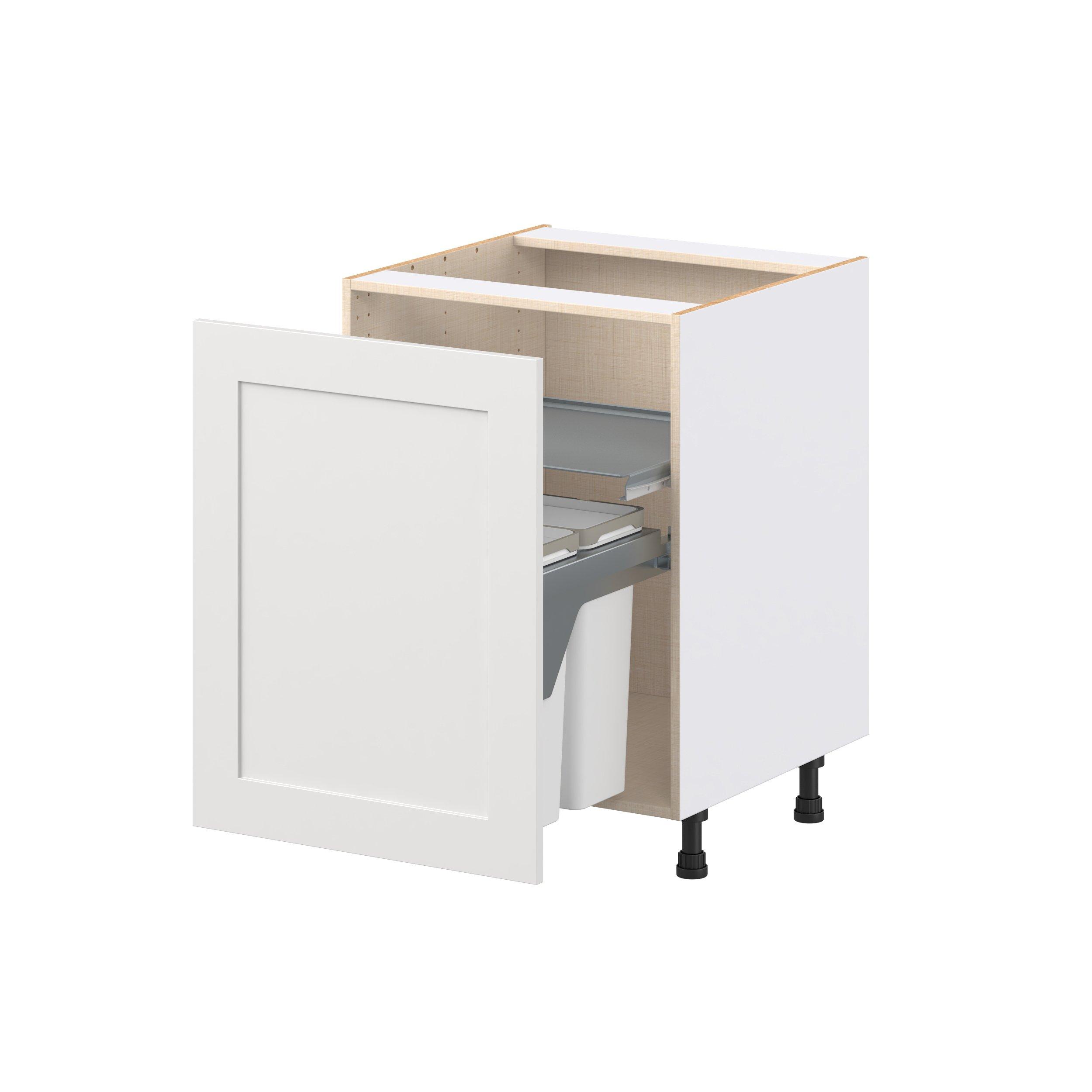 Transform your space with the elegance of Candler wide-rail shaker styles. Both the warm white and slate gray options create a rich transitional backdrop to complement any decor. Crafted from one-piece MDF Studio Design Collection Candler 24 in. Painted Warm White Trash Can Pull-Out Base Cabinet is designed to resist hairline cracks while the easy-to-clean finish stands up to stains and moisture. Featuring 5-piece doors and dovetail drawer joints, these cabinets offer durability and elegance. This collection combines style with everyday storage solutions.