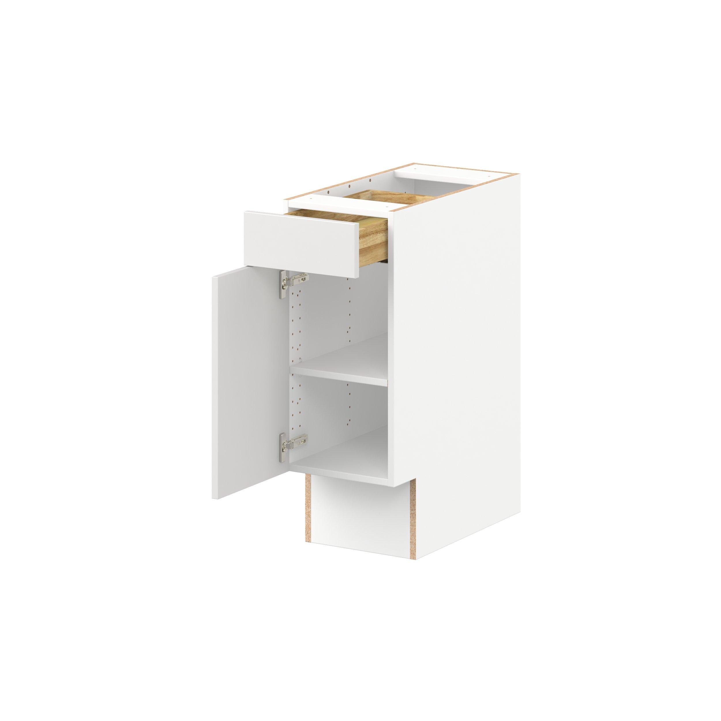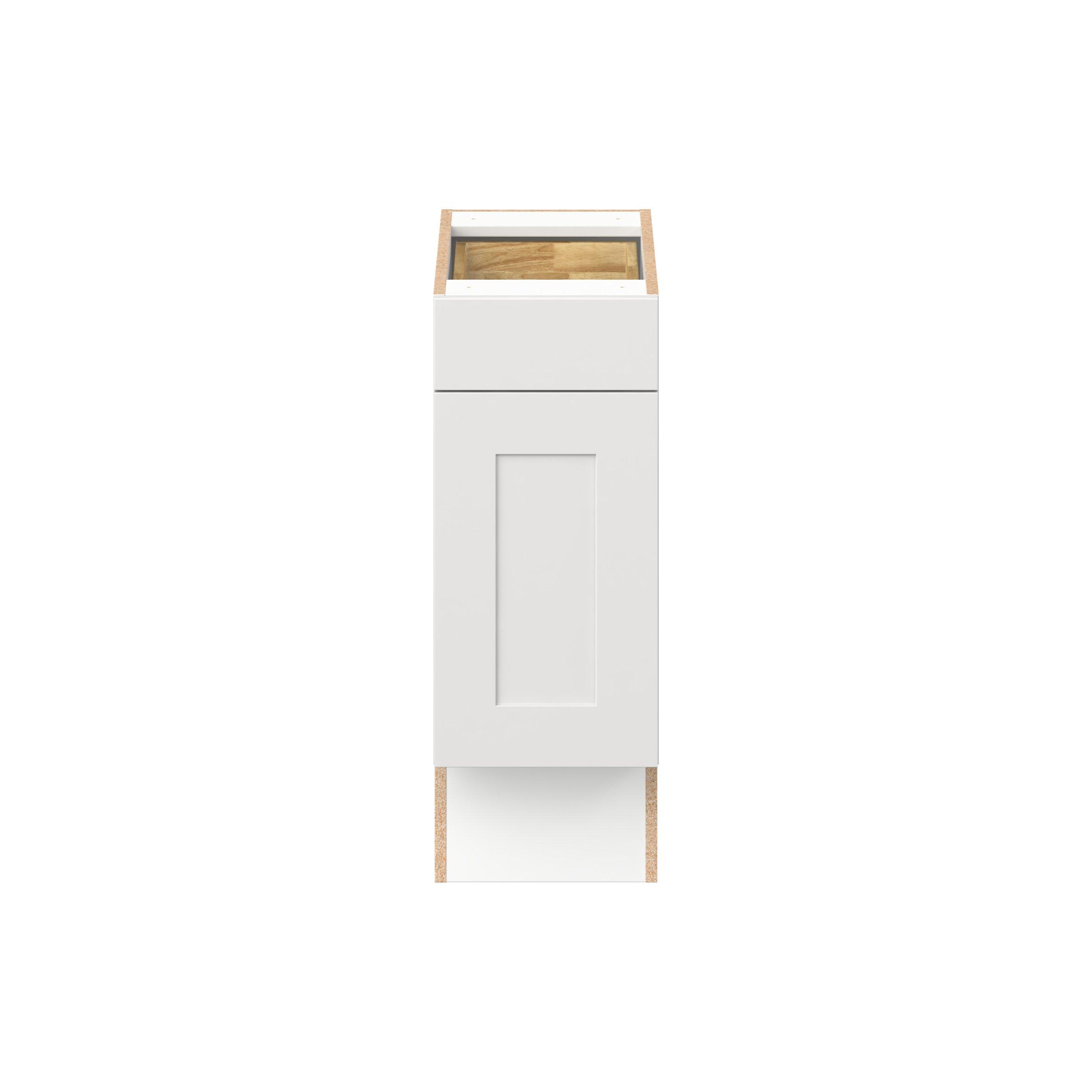 Transform your space with the elegance of Candler wide-rail shaker styles. Both the warm white and slate gray options create a rich transitional backdrop to complement any decor. Crafted from one-piece MDF Studio Design Collection Candler 12 in. Painted Warm White Door and Drawer Base Cabinet - ADA is designed to resist hairline cracks while the easy-to-clean finish stands up to stains and moisture. Featuring 5-piece doors and dovetail drawer joints, these cabinets offer durability and elegance. This collection combines style with everyday storage solutions.