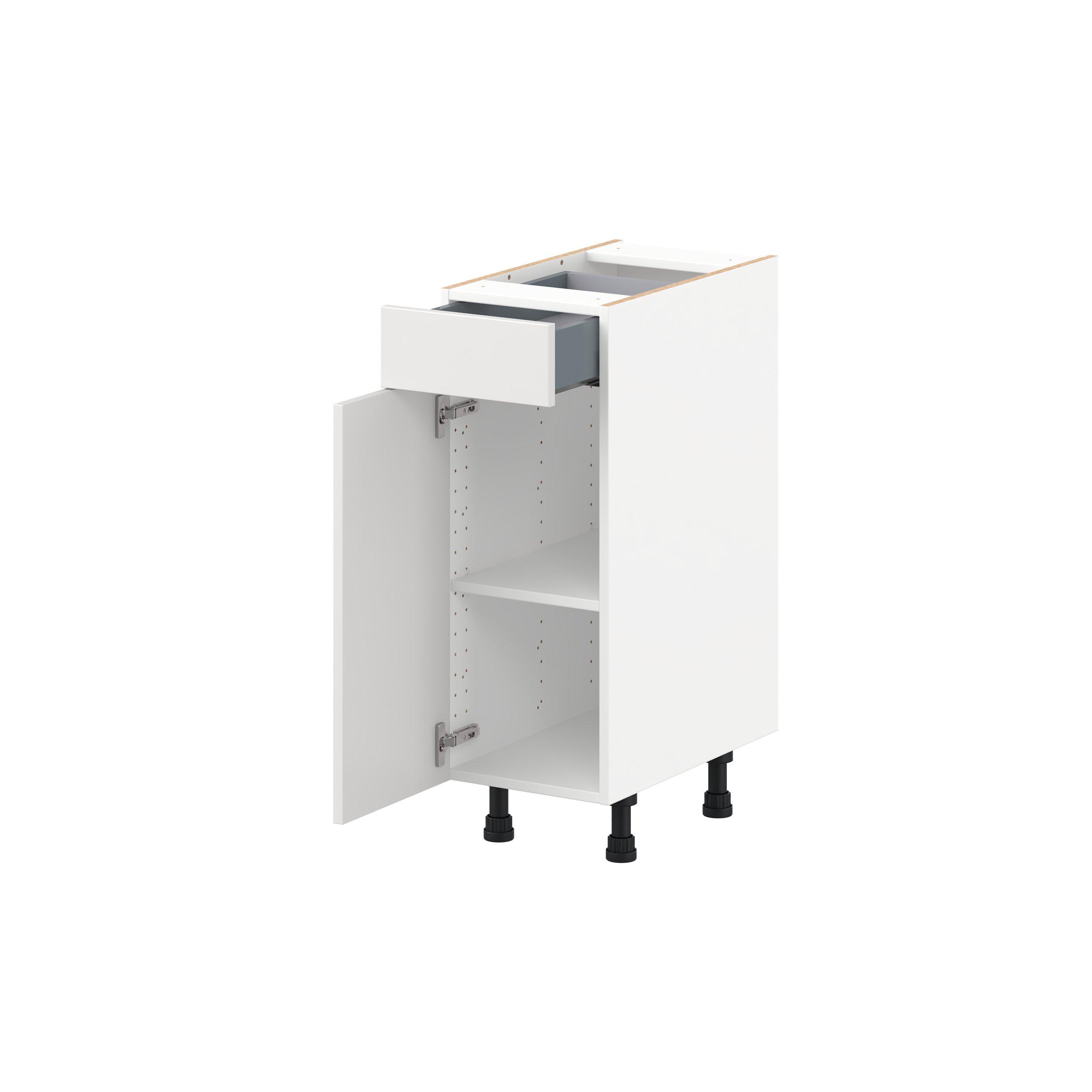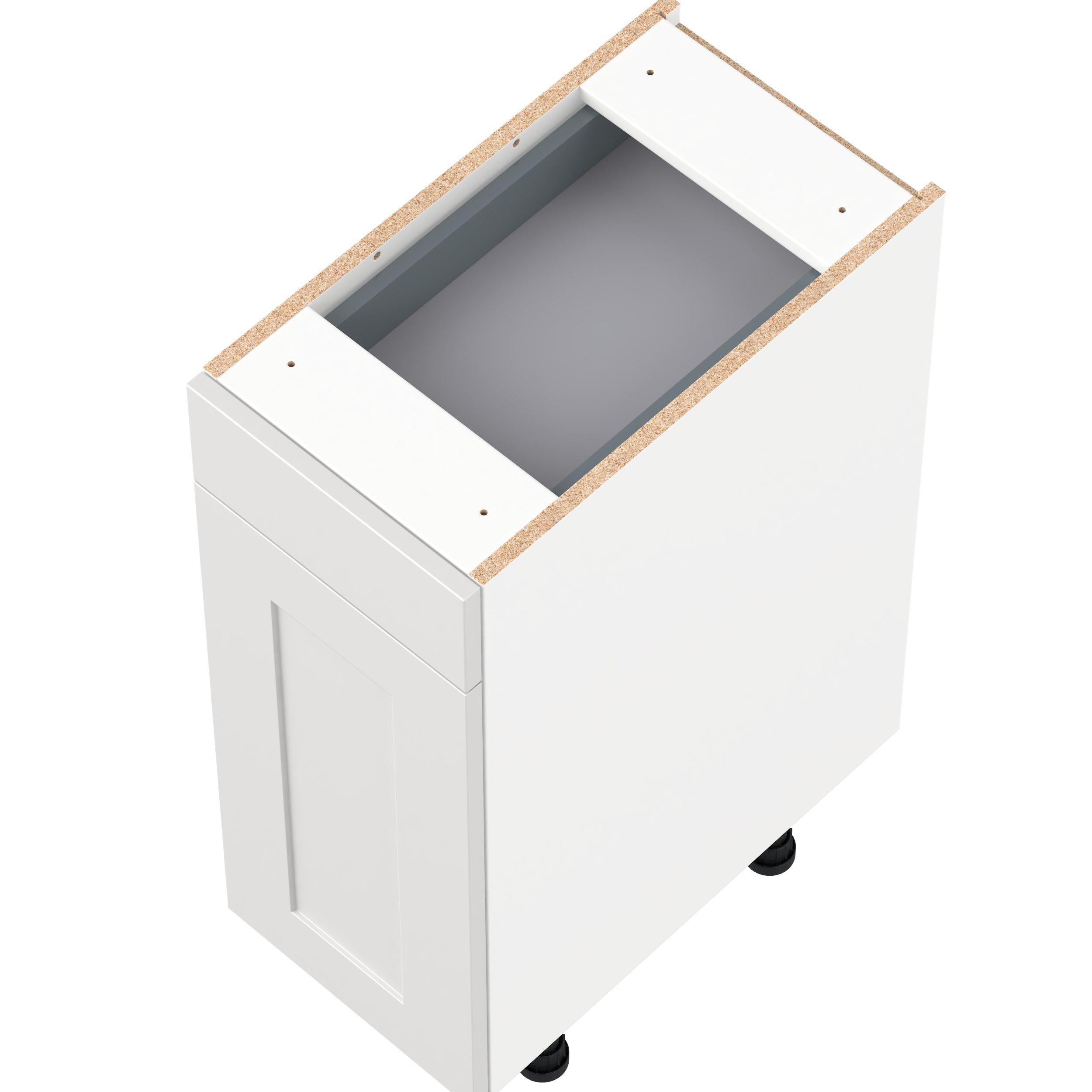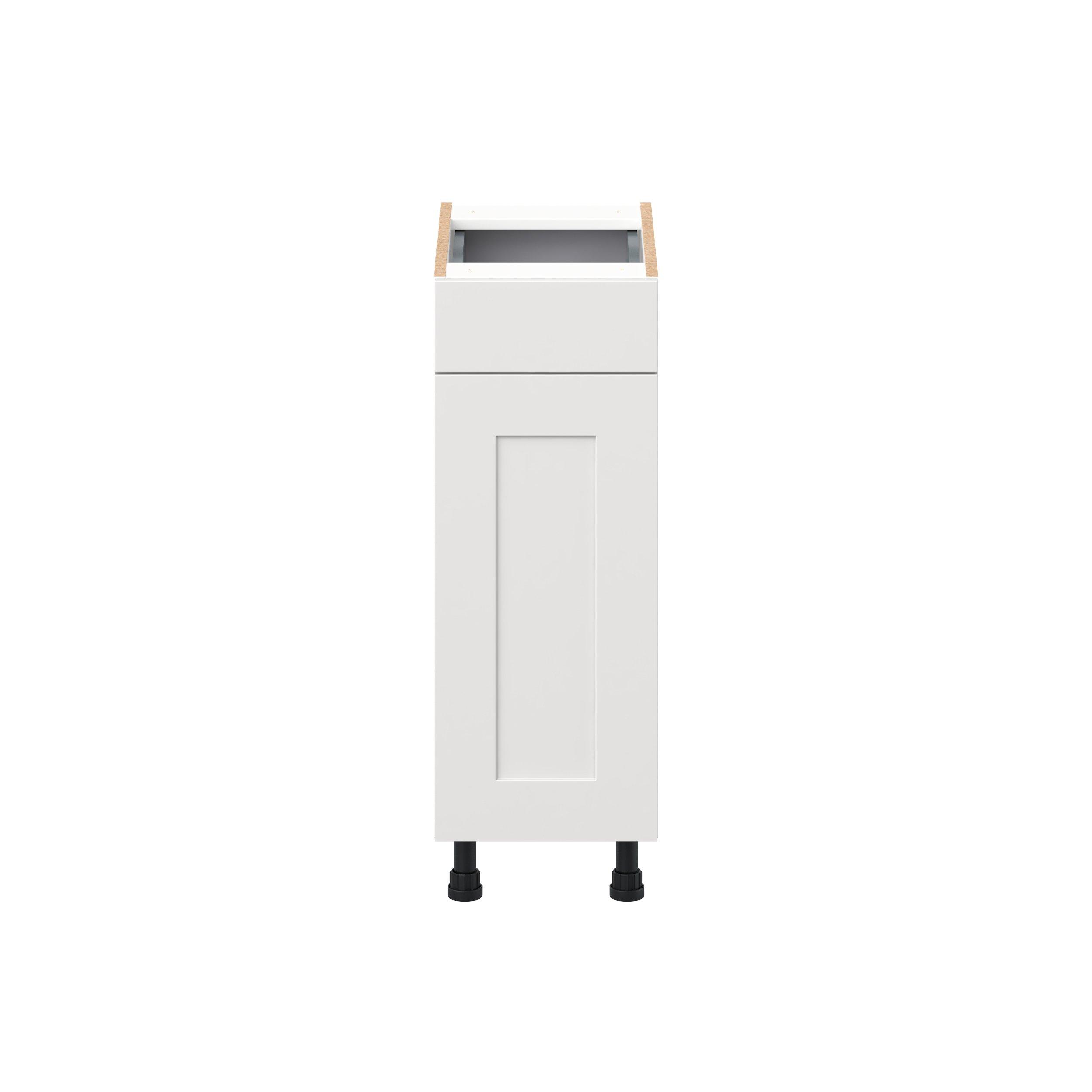 Transform your space with the elegance of Candler wide-rail shaker styles. Both the warm white and slate gray options create a rich transitional backdrop to complement any decor. Crafted from one-piece MDF Studio Design Collection Candler 12 in. Painted Warm White Vanity Door and Drawer Base Cabinet - ADA is designed to resist hairline cracks while the easy-to-clean finish stands up to stains and moisture. Featuring 5-piece doors and dovetail drawer joints, these cabinets offer durability and elegance. This collection combines style with everyday storage solutions.