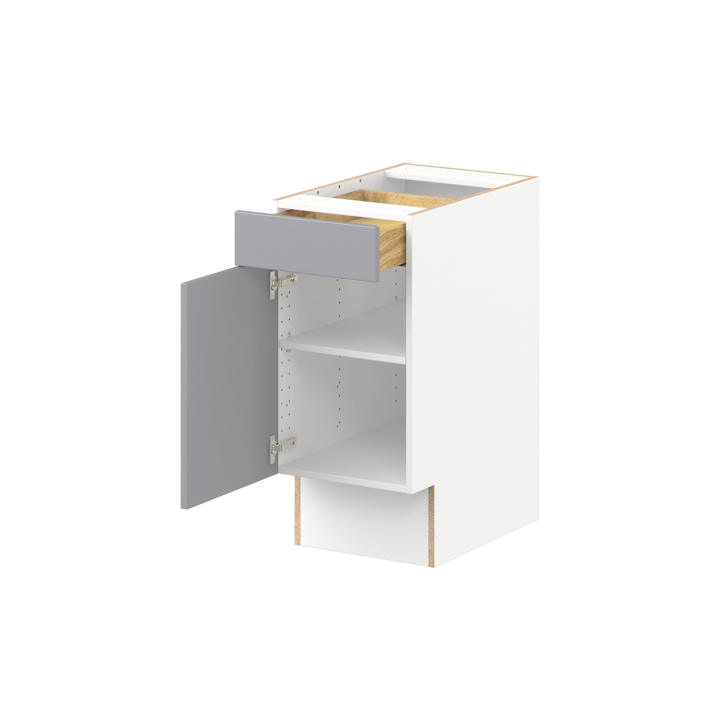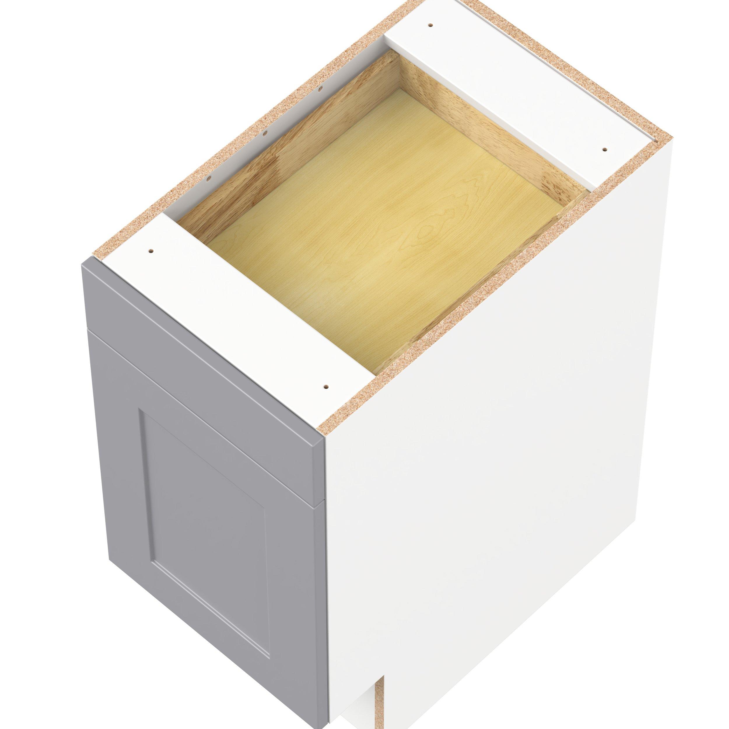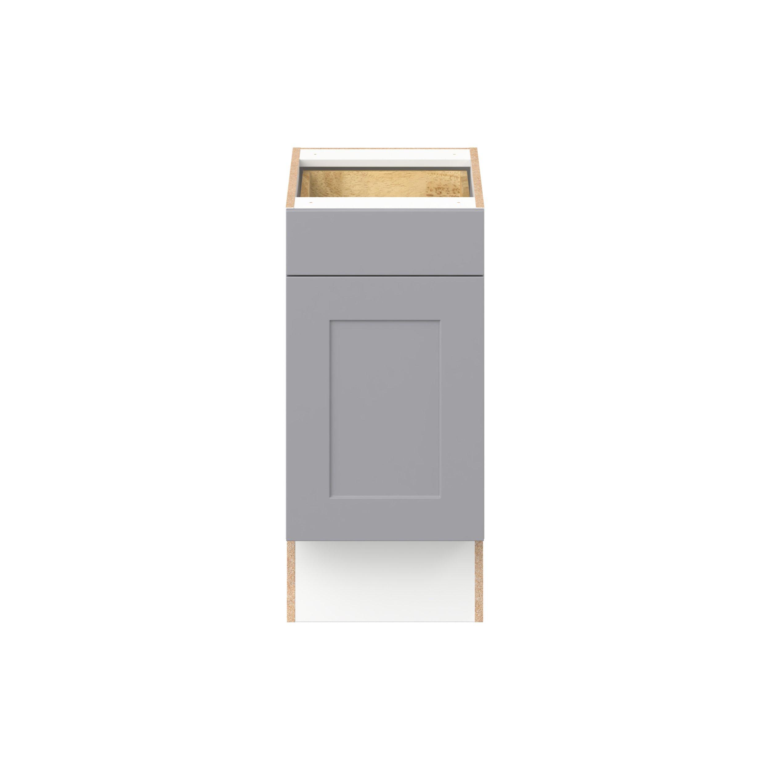 Transform your space with the elegance of Candler wide-rail shaker styles. Both the warm white and slate gray options create a rich transitional backdrop to complement any decor. Crafted from one-piece MDF Studio Design Collection Candler 15 in. Painted Slate Gray Door and Drawer Base Cabinet - ADA is designed to resist hairline cracks while the easy-to-clean finish stands up to stains and moisture. Featuring 5-piece doors and dovetail drawer joints, these cabinets offer durability and elegance. This collection combines style with everyday storage solutions.