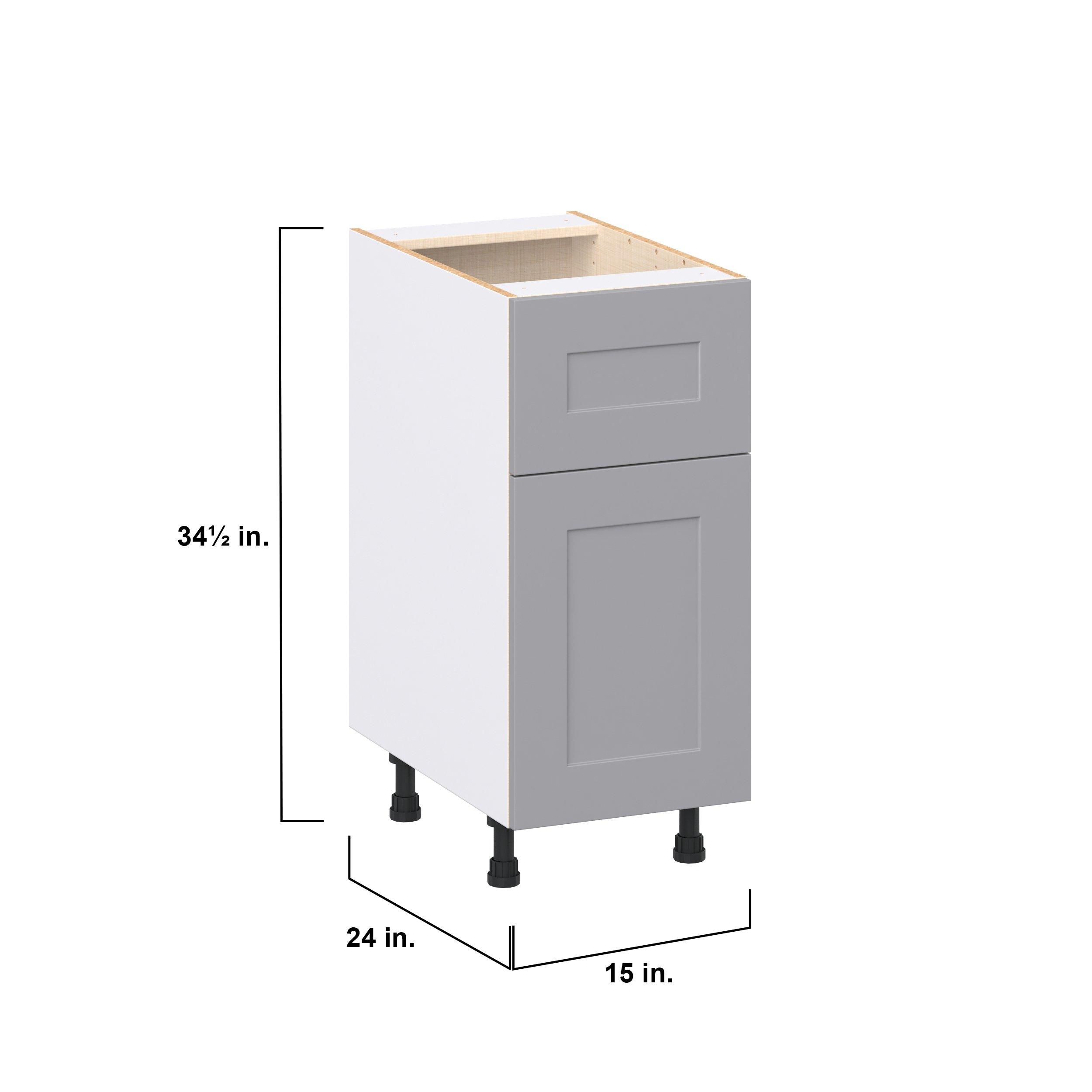 Transform your space with the elegance of Candler wide-rail shaker styles. Both the warm white and slate gray options create a rich transitional backdrop to complement any decor. Crafted from one-piece MDF Studio Design Collection Candler 15 in. Painted Slate Gray Door and Drawer Base Cabinet is designed to resist hairline cracks while the easy-to-clean finish stands up to stains and moisture. Featuring 5-piece doors and dovetail drawer joints, these cabinets offer durability and elegance. This collection combines style with everyday storage solutions.