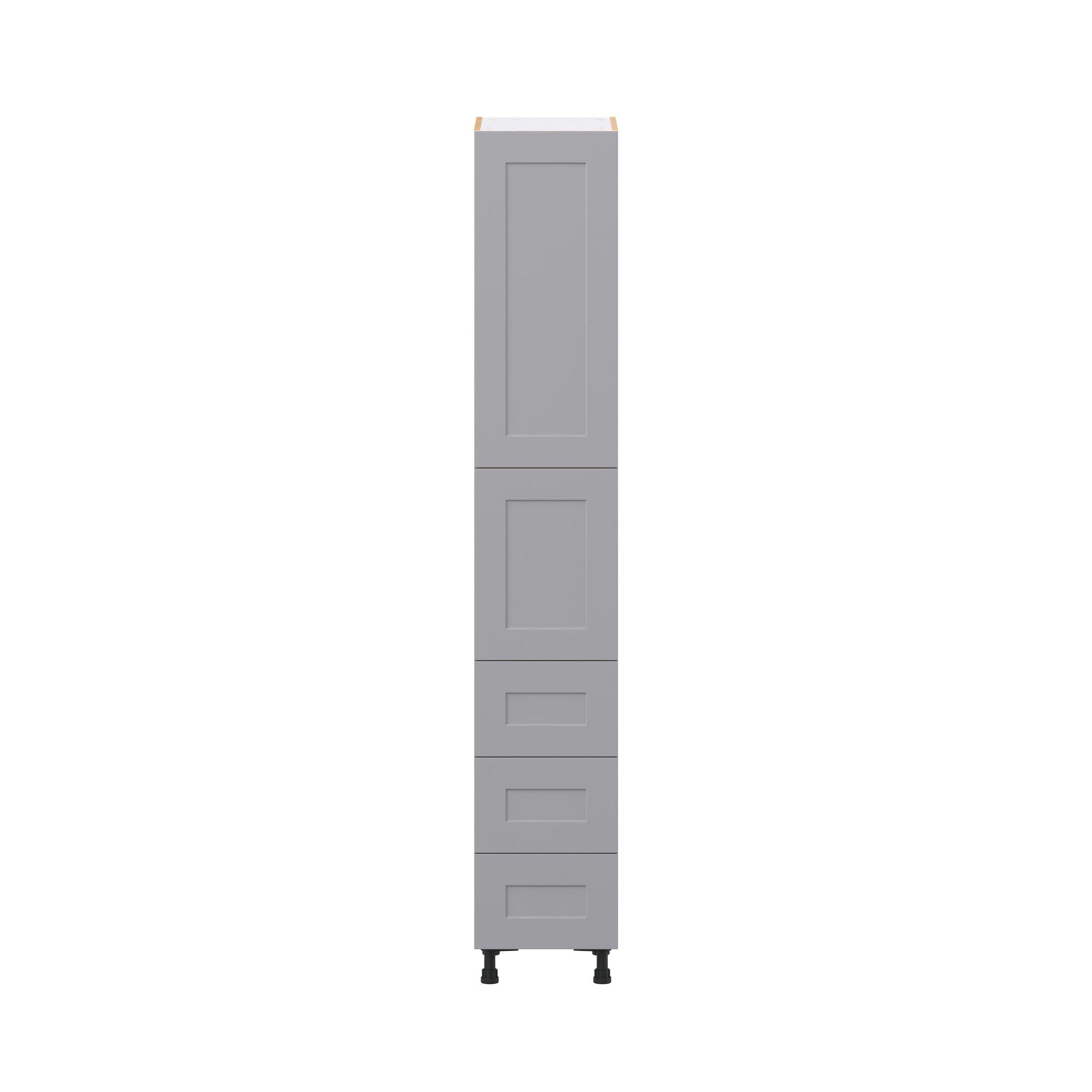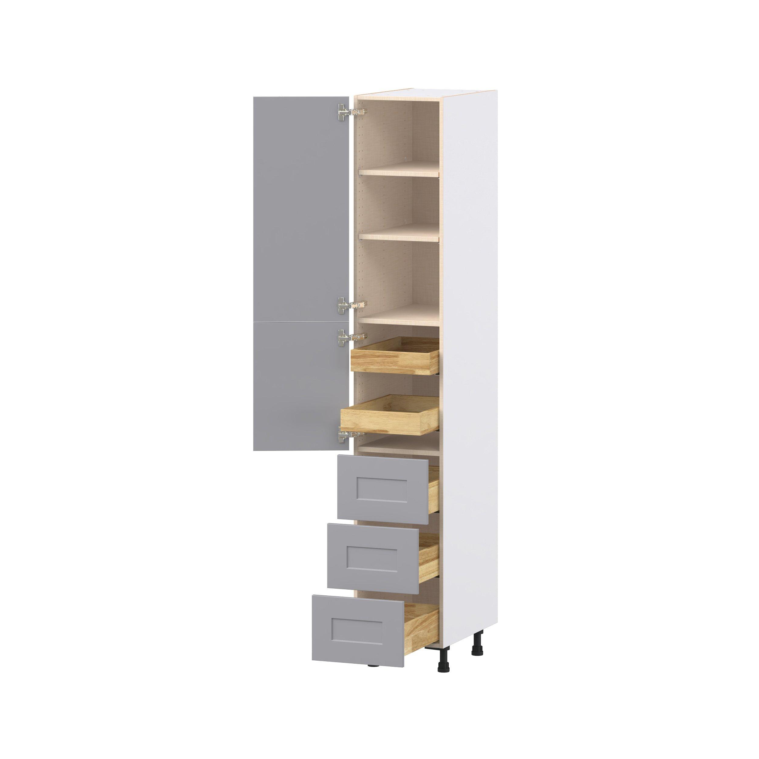 Transform your space with the elegance of Candler wide-rail shaker styles. Both the warm white and slate gray options create a rich transitional backdrop to complement any decor. Crafted from one-piece MDF Studio Design Collection Candler 15 in. Painted Slate Gray Door and Drawer Pantry Cabinet with Inner Pull-Out is designed to resist hairline cracks while the easy-to-clean finish stands up to stains and moisture. Featuring 5-piece doors and dovetail drawer joints, these cabinets offer durability and elegance. This collection combines style with everyday storage solutions.