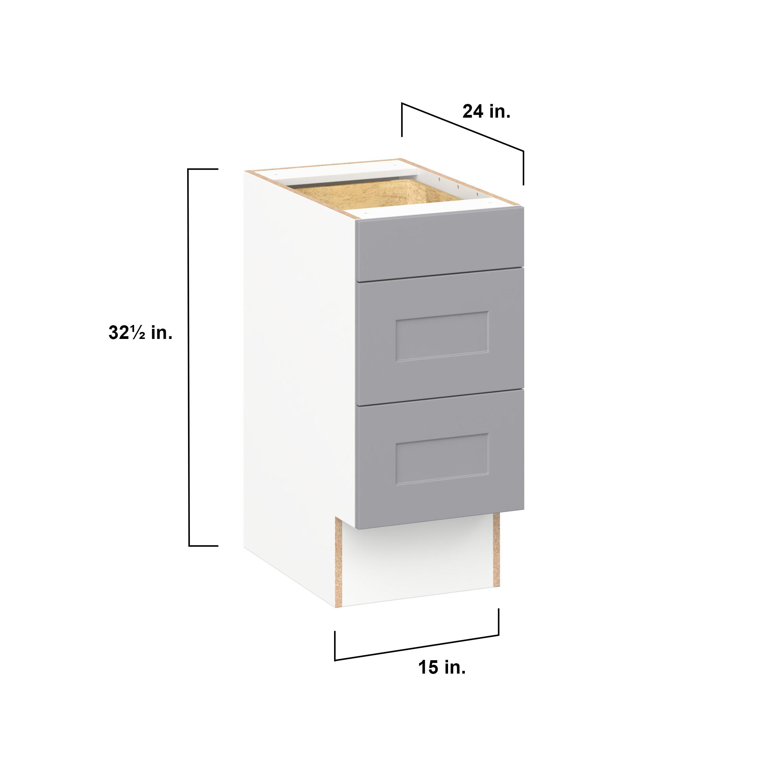 Transform your space with the elegance of Candler wide-rail shaker styles. Both the warm white and slate gray options create a rich transitional backdrop to complement any decor. Crafted from one-piece MDF Studio Design Collection Candler 15 in. Painted Slate Gray Drawer Base Cabinet - ADA is designed to resist hairline cracks while the easy-to-clean finish stands up to stains and moisture. Featuring 5-piece doors and dovetail drawer joints, these cabinets offer durability and elegance. This collection combines style with everyday storage solutions.