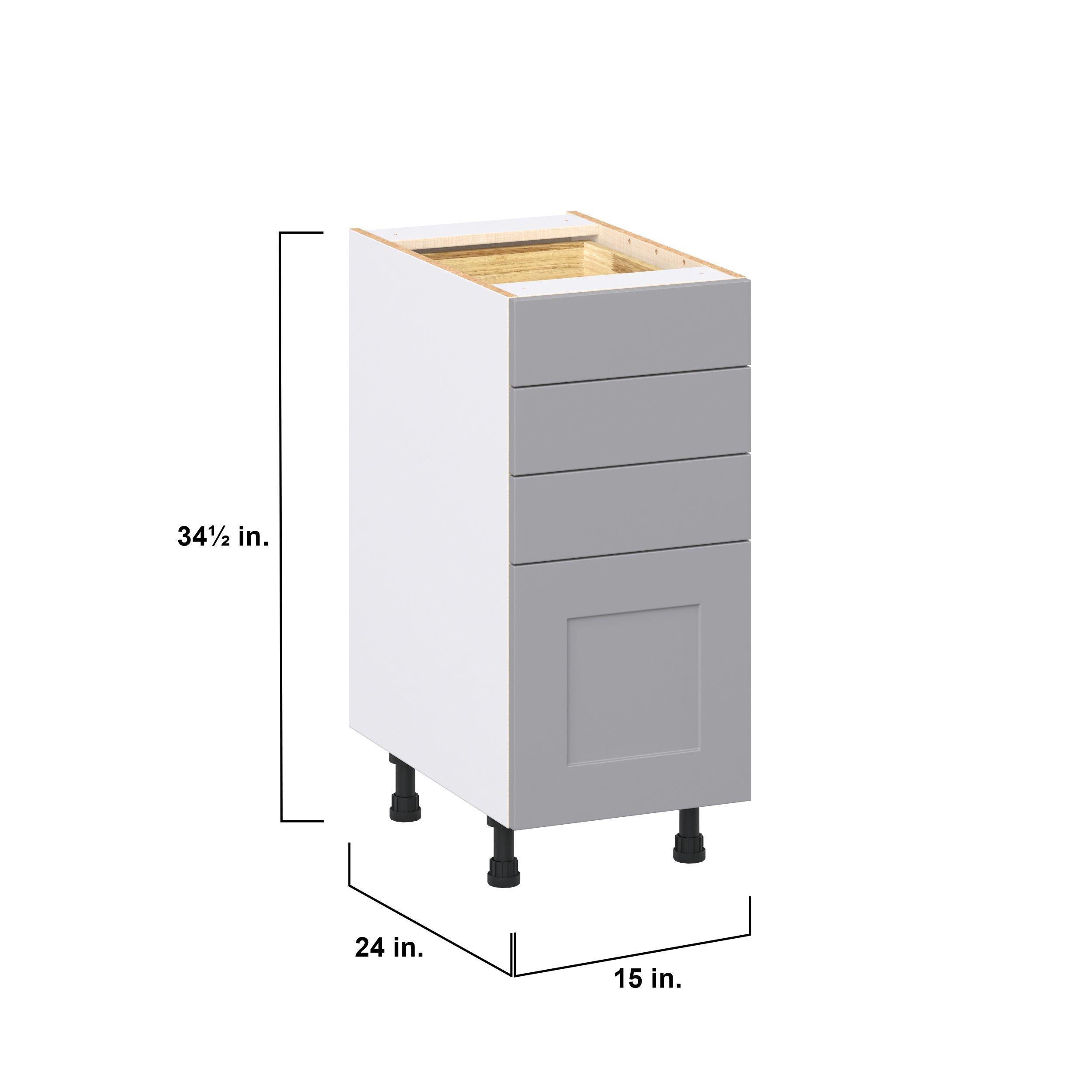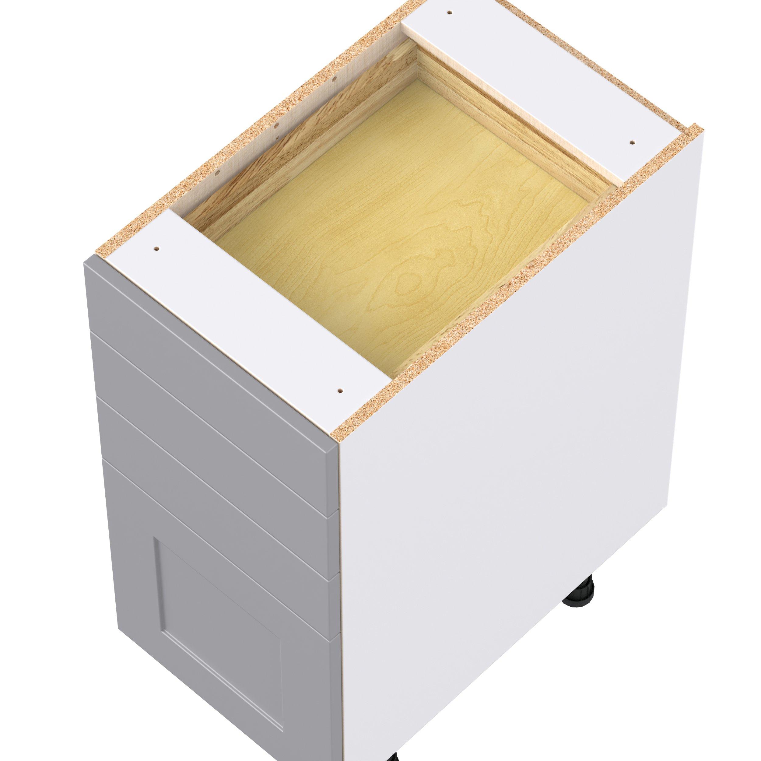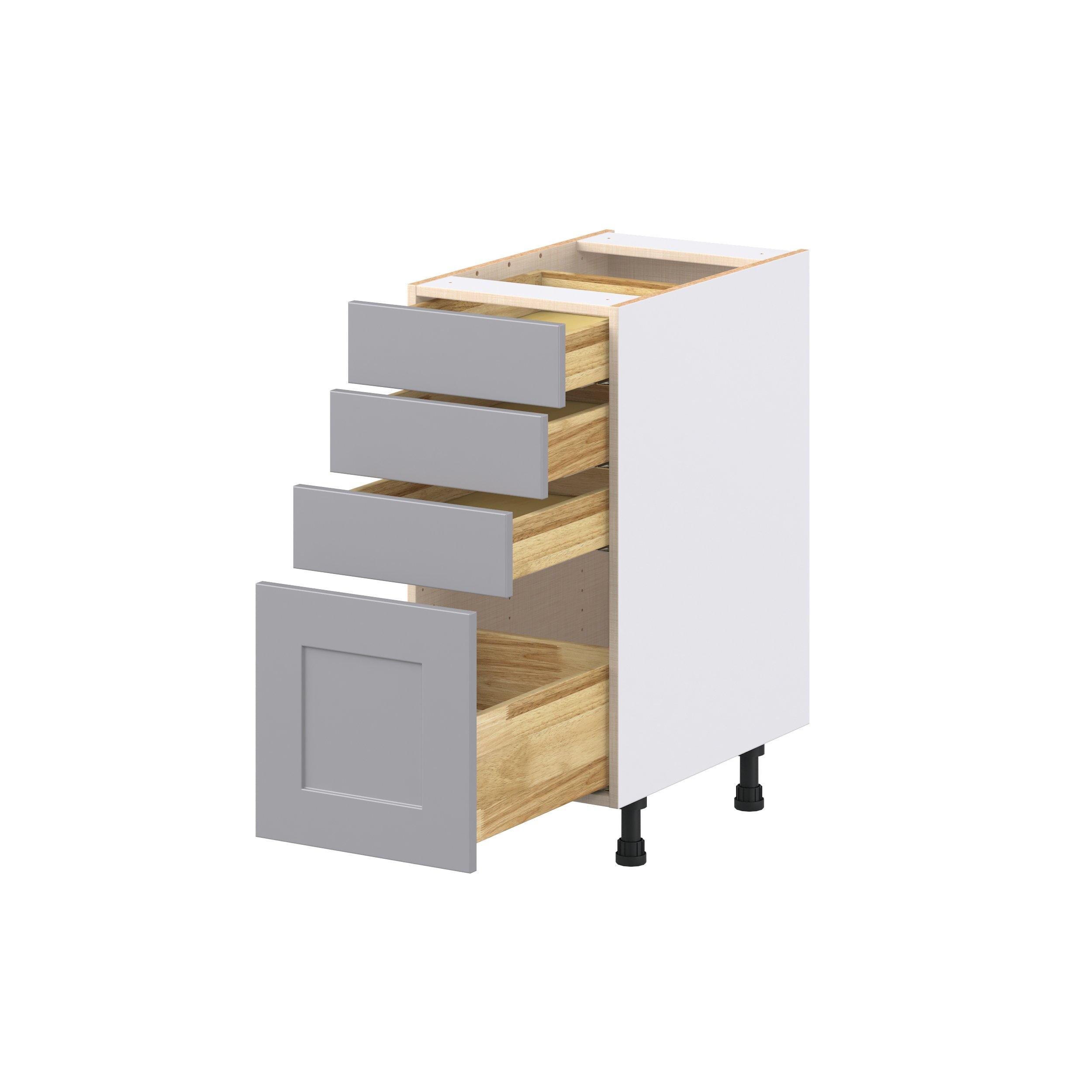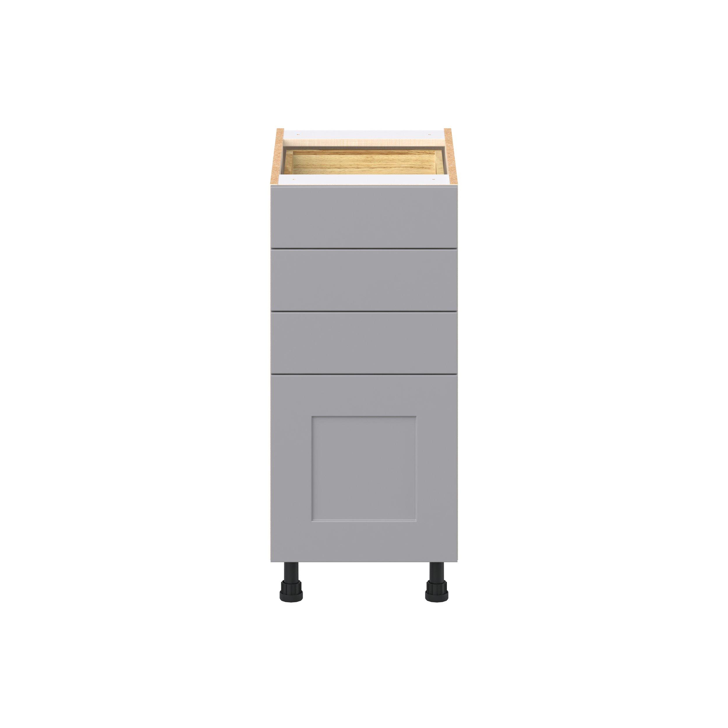 Transform your space with the elegance of Candler wide-rail shaker styles. Both the warm white and slate gray options create a rich transitional backdrop to complement any decor. Crafted from one-piece MDF Studio Design Collection Candler 15 in. Painted Slate Gray Drawer Base Cabinet is designed to resist hairline cracks while the easy-to-clean finish stands up to stains and moisture. Featuring 5-piece doors and dovetail drawer joints, these cabinets offer durability and elegance. This collection combines style with everyday storage solutions.