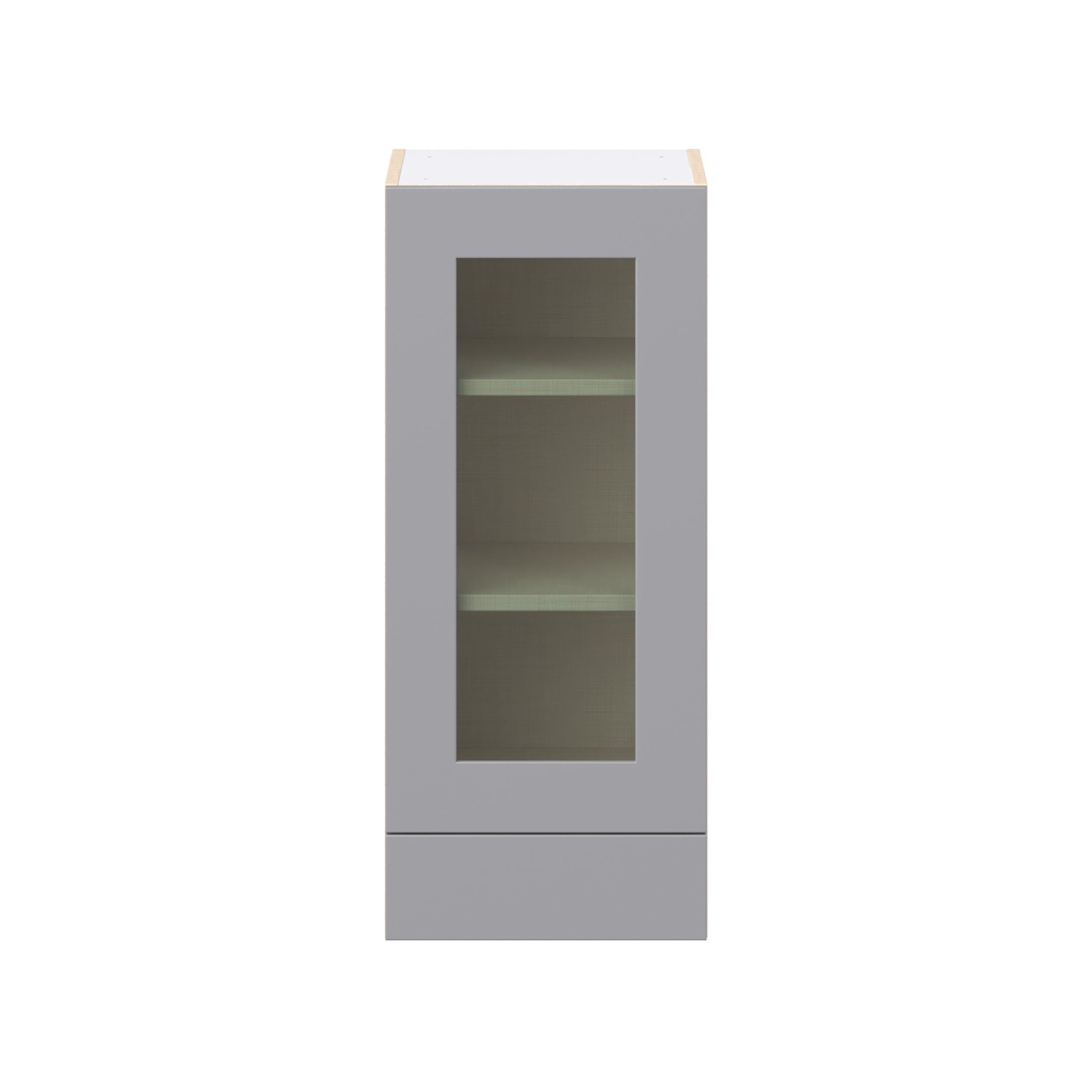 Transform your space with the elegance of Candler wide-rail shaker styles. Both the warm white and slate gray options create a rich transitional backdrop to complement any decor. Crafted from one-piece MDF Studio Design Collection Candler 15 in. Painted Slate Gray Drawer Wall Cabinet with Glass Door is designed to resist hairline cracks while the easy-to-clean finish stands up to stains and moisture. Featuring 5-piece doors and dovetail drawer joints, these cabinets offer durability and elegance. This collection combines style with everyday storage solutions.
