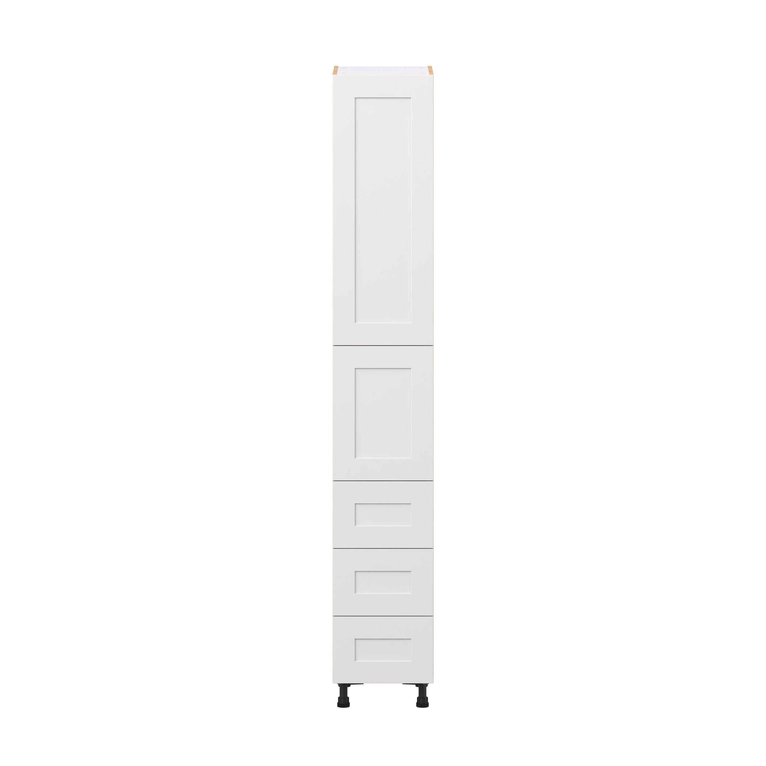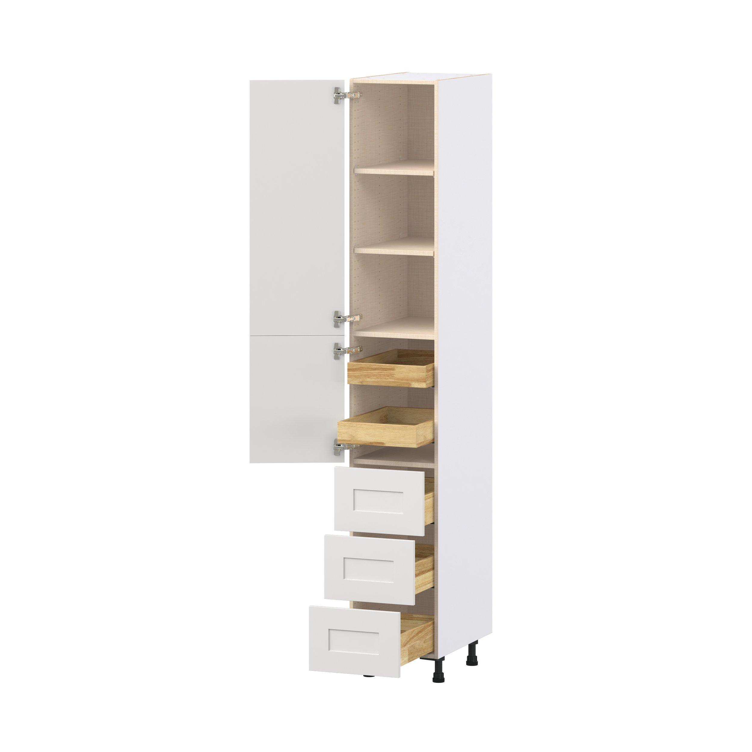 Transform your space with the elegance of Candler wide-rail shaker styles. Both the warm white and slate gray options create a rich transitional backdrop to complement any decor. Crafted from one-piece MDF Studio Design Collection Candler 15 in. Painted Warm White Door and Drawer Pantry Cabinet with Inner Pull-Out is designed to resist hairline cracks while the easy-to-clean finish stands up to stains and moisture. Featuring 5-piece doors and dovetail drawer joints, these cabinets offer durability and elegance. This collection combines style with everyday storage solutions.