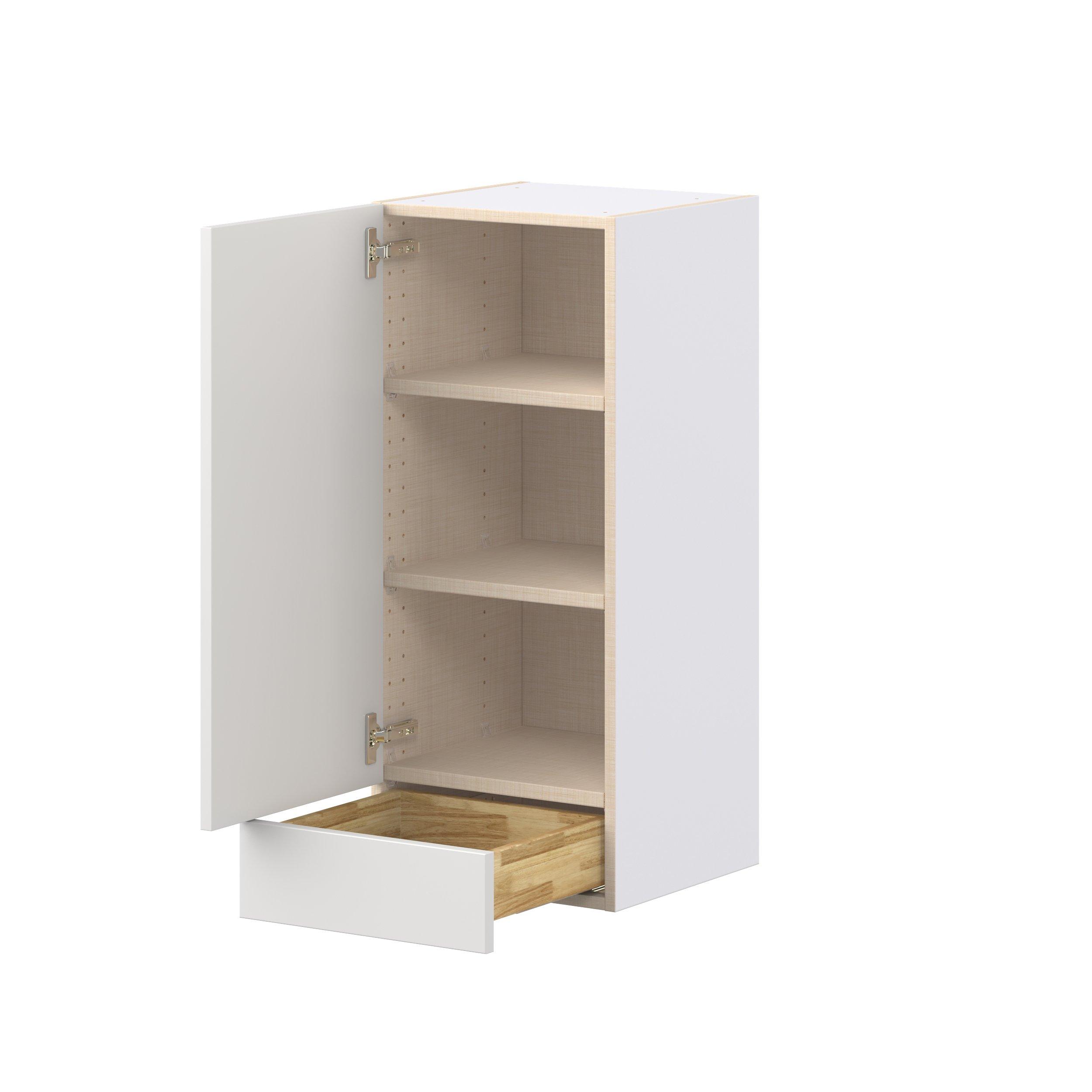 Transform your space with the elegance of Candler wide-rail shaker styles. Both the warm white and slate gray options create a rich transitional backdrop to complement any decor. Crafted from one-piece MDF Studio Design Collection Candler 15 in. Painted Warm White Door and Drawer Wall Cabinet is designed to resist hairline cracks while the easy-to-clean finish stands up to stains and moisture. Featuring 5-piece doors and dovetail drawer joints, these cabinets offer durability and elegance. This collection combines style with everyday storage solutions.