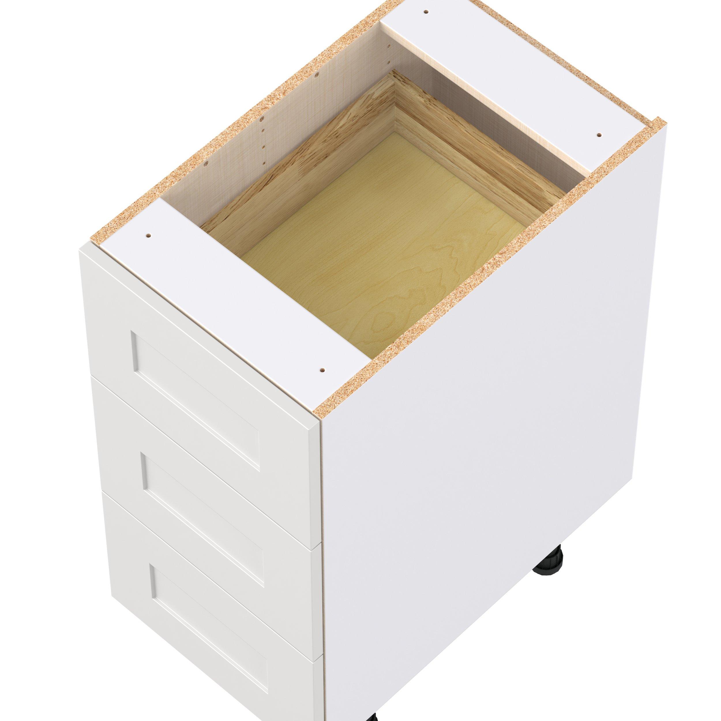 Transform your space with the elegance of Candler wide-rail shaker styles. Both the warm white and slate gray options create a rich transitional backdrop to complement any decor. Crafted from one-piece MDF Studio Design Collection Candler 15 in. Painted Warm White Drawer Base Cabinet is designed to resist hairline cracks while the easy-to-clean finish stands up to stains and moisture. Featuring 5-piece doors and dovetail drawer joints, these cabinets offer durability and elegance. This collection combines style with everyday storage solutions.