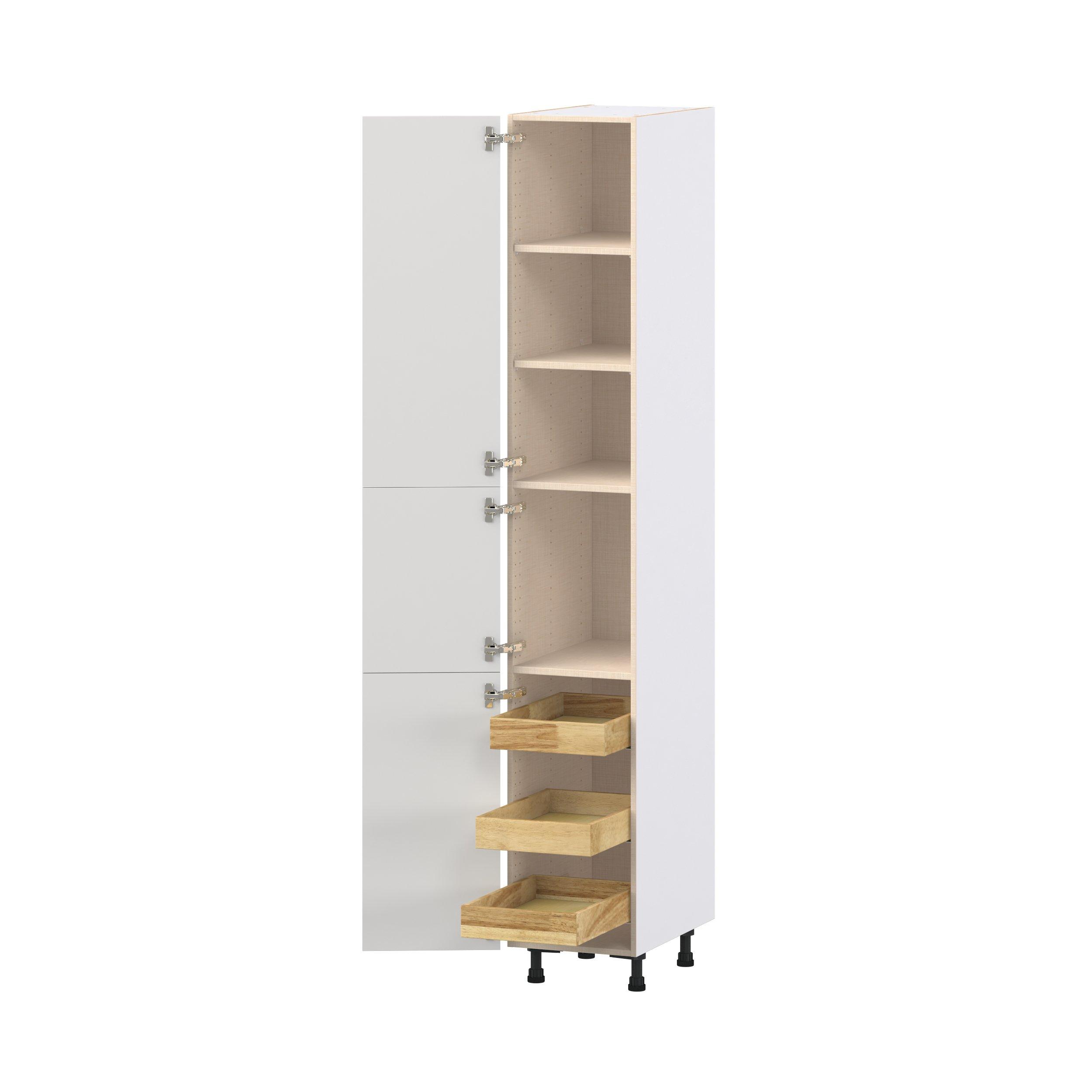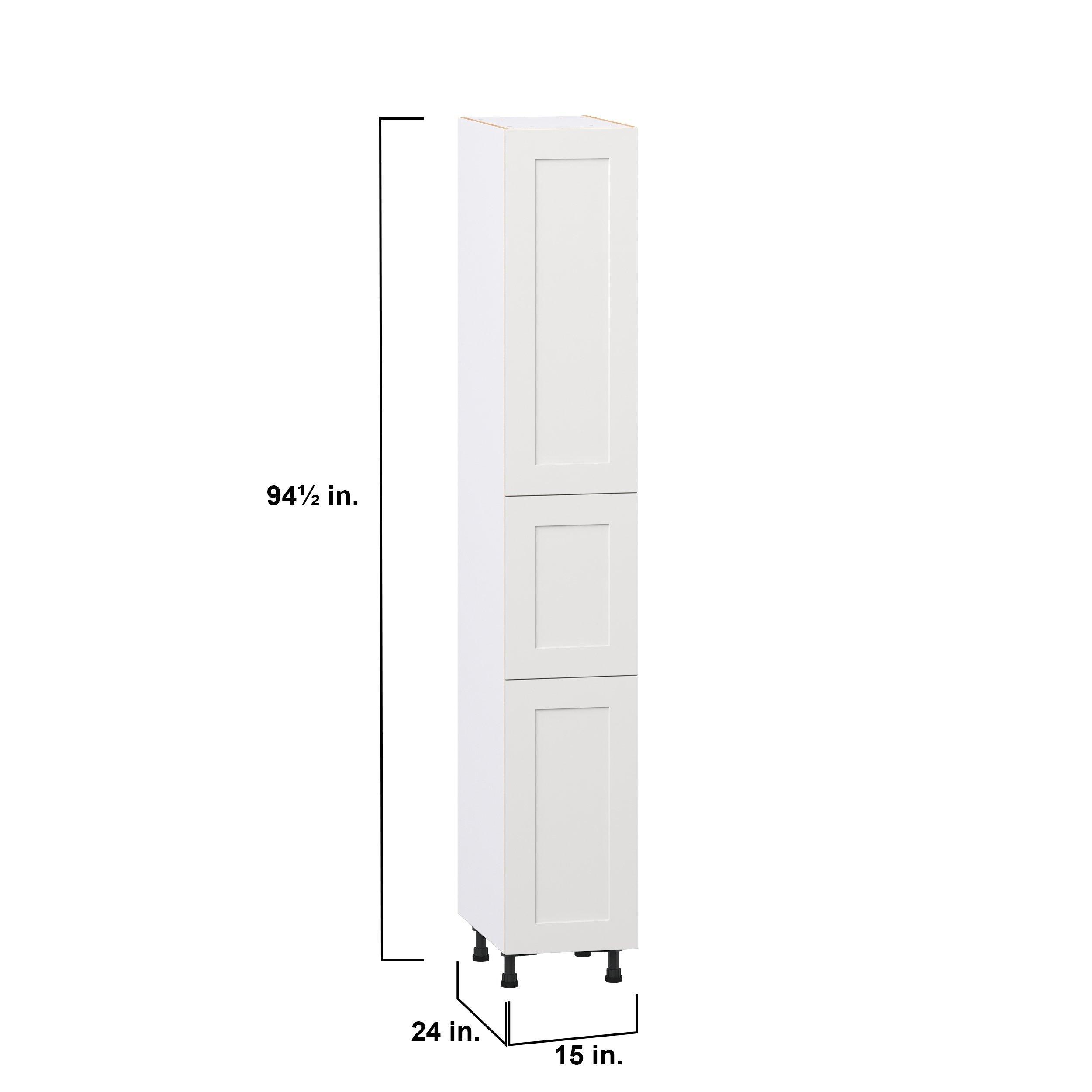 Transform your space with the elegance of Candler wide-rail shaker styles. Both the warm white and slate gray options create a rich transitional backdrop to complement any decor. Crafted from one-piece MDF Studio Design Collection Candler 15 in. Painted Warm White Pantry Cabinet with Inner Pull-Out Drawer is designed to resist hairline cracks while the easy-to-clean finish stands up to stains and moisture. Featuring 5-piece doors and dovetail drawer joints, these cabinets offer durability and elegance. This collection combines style with everyday storage solutions.