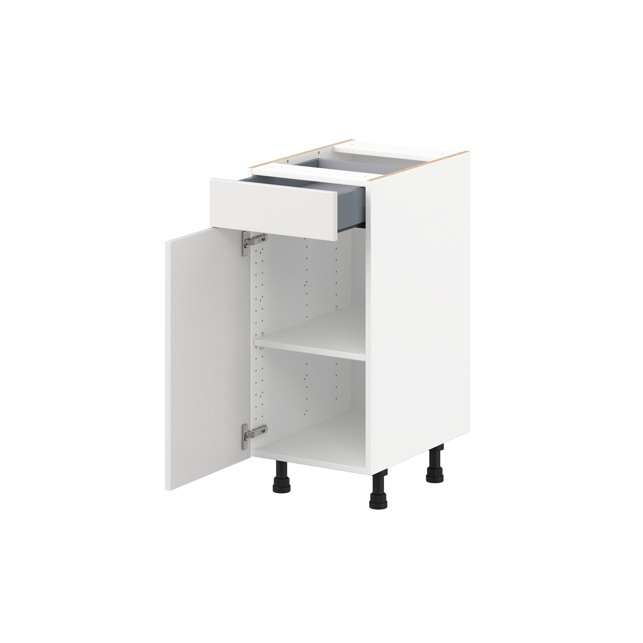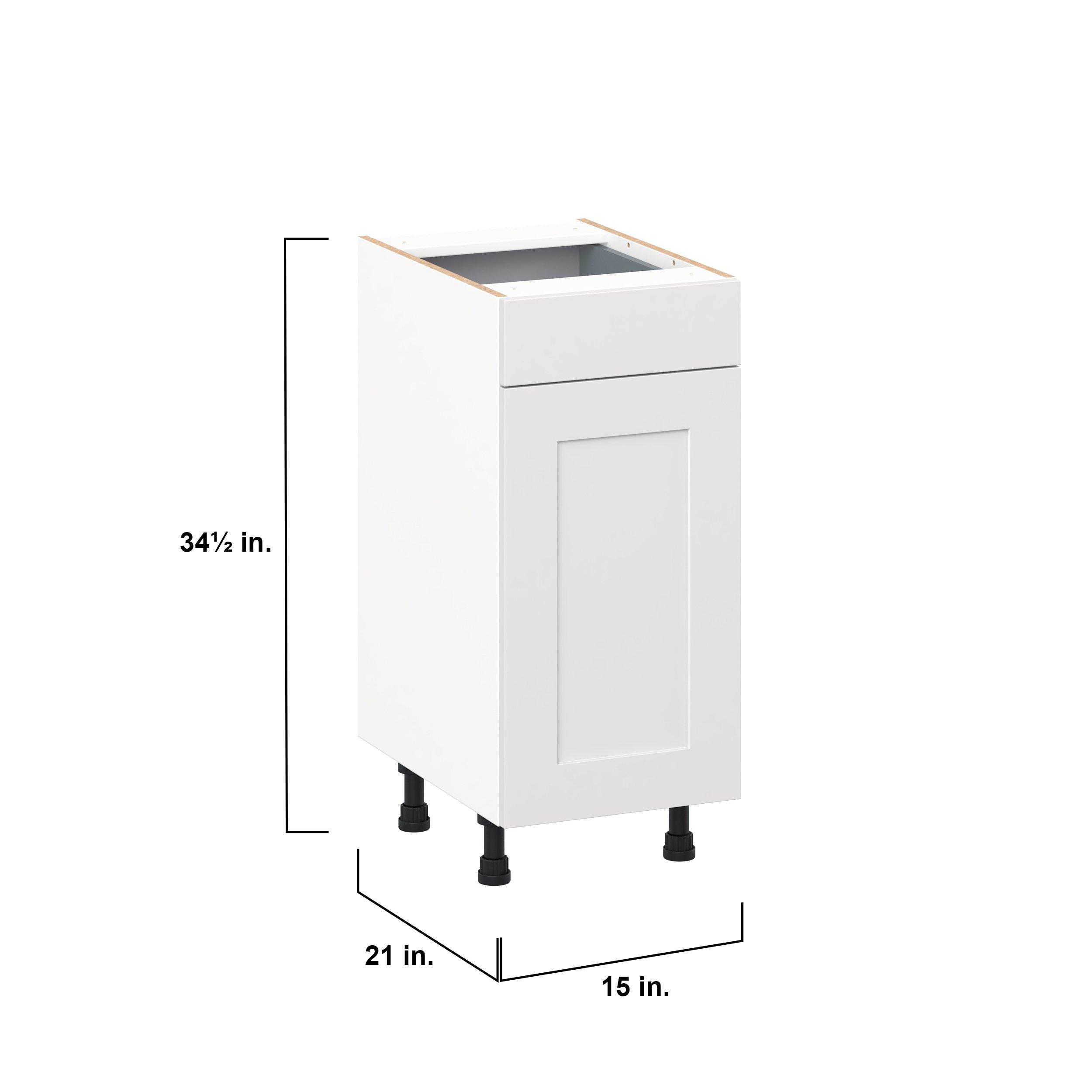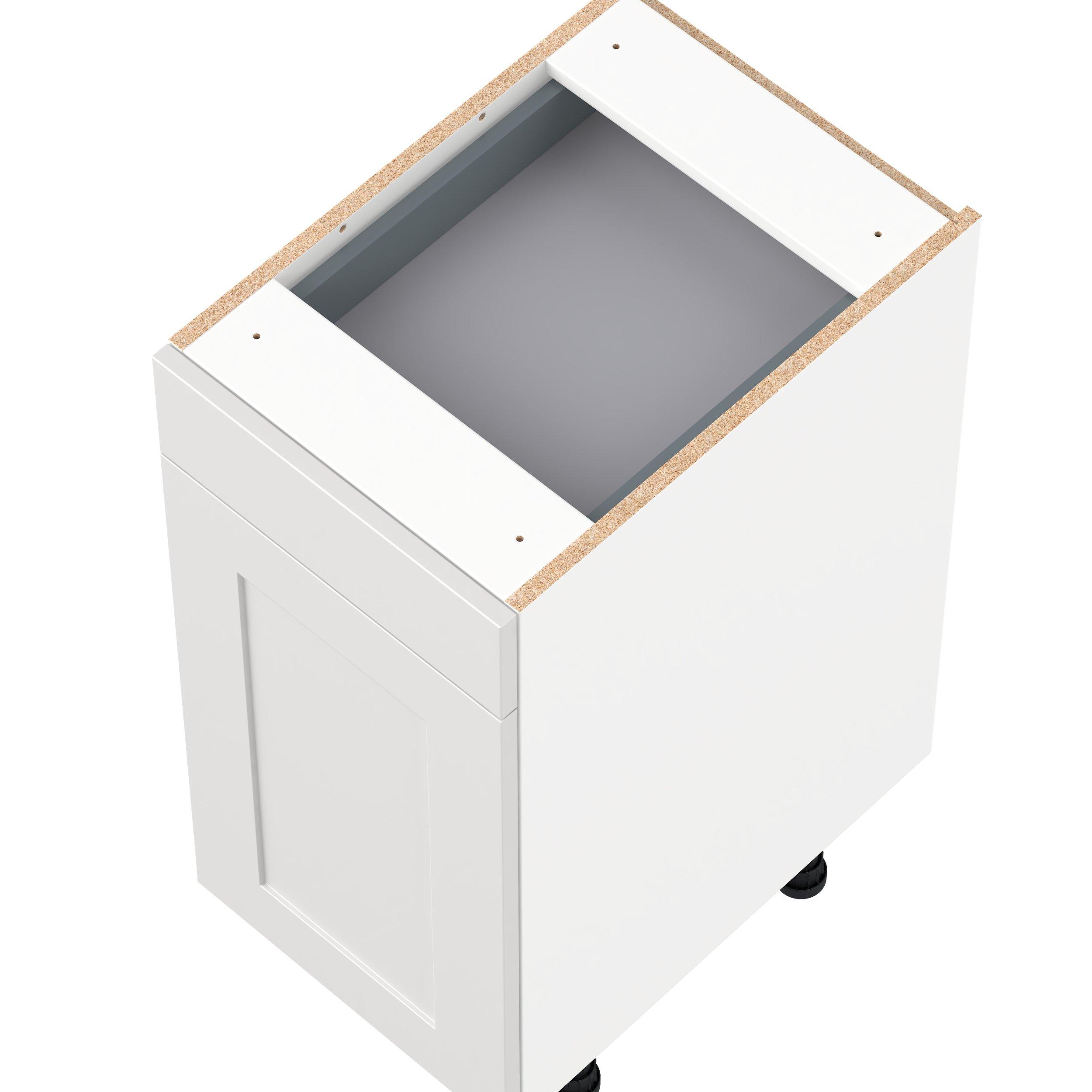 Transform your space with the elegance of Candler wide-rail shaker styles. Both the warm white and slate gray options create a rich transitional backdrop to complement any decor. Crafted from one-piece MDF Studio Design Collection Candler 15 in. Painted Warm White Vanity Door and Drawer Base Cabinet - ADA is designed to resist hairline cracks while the easy-to-clean finish stands up to stains and moisture. Featuring 5-piece doors and dovetail drawer joints, these cabinets offer durability and elegance. This collection combines style with everyday storage solutions.