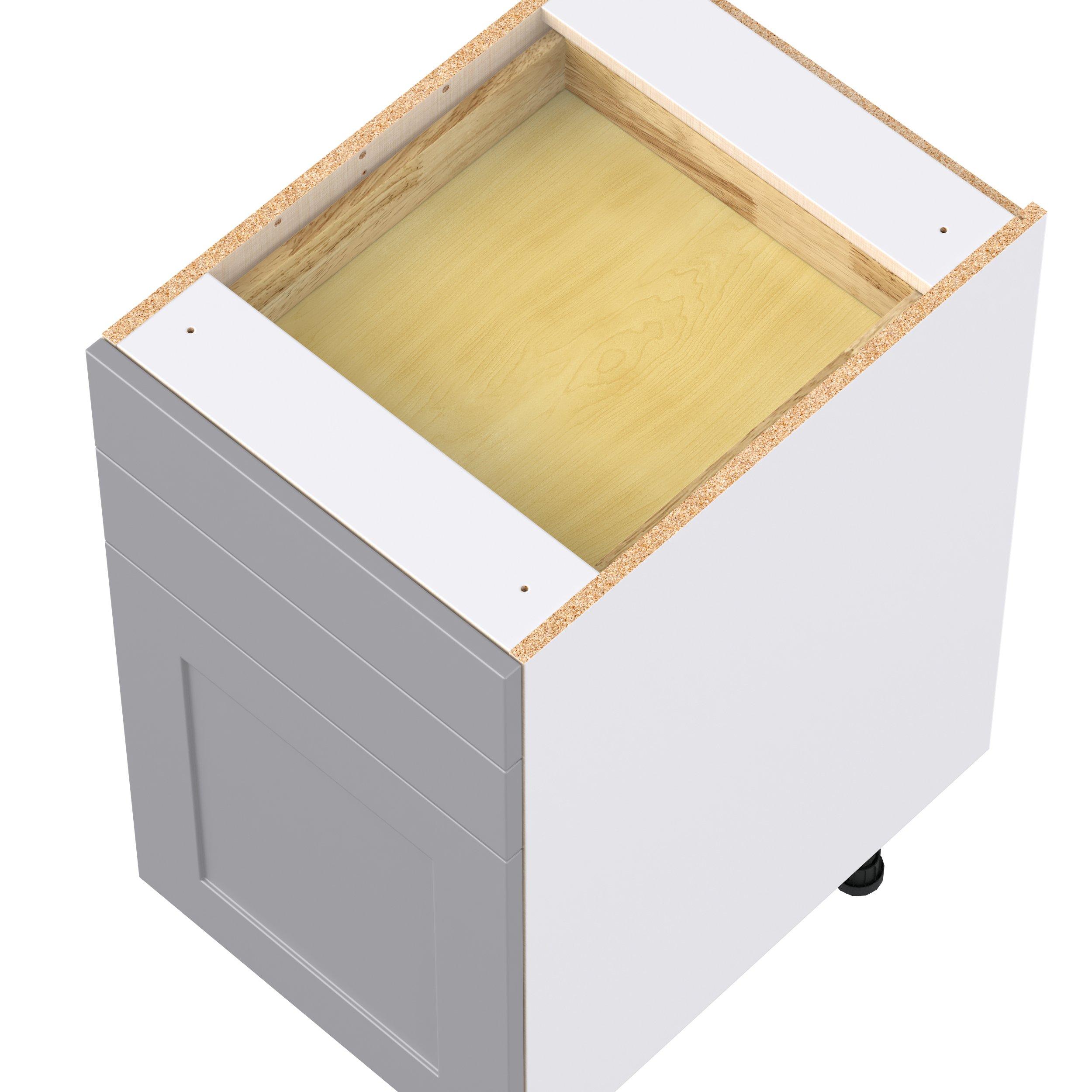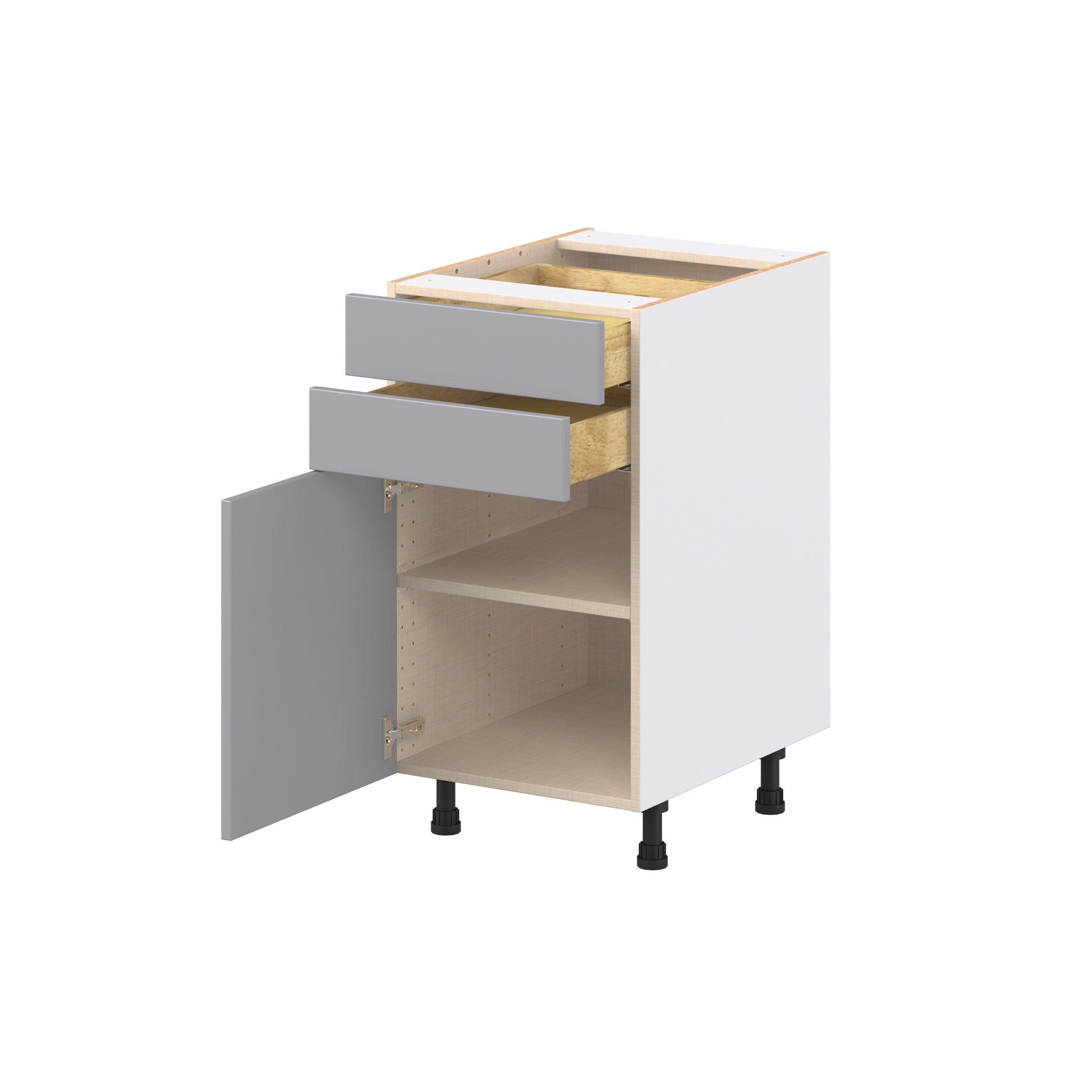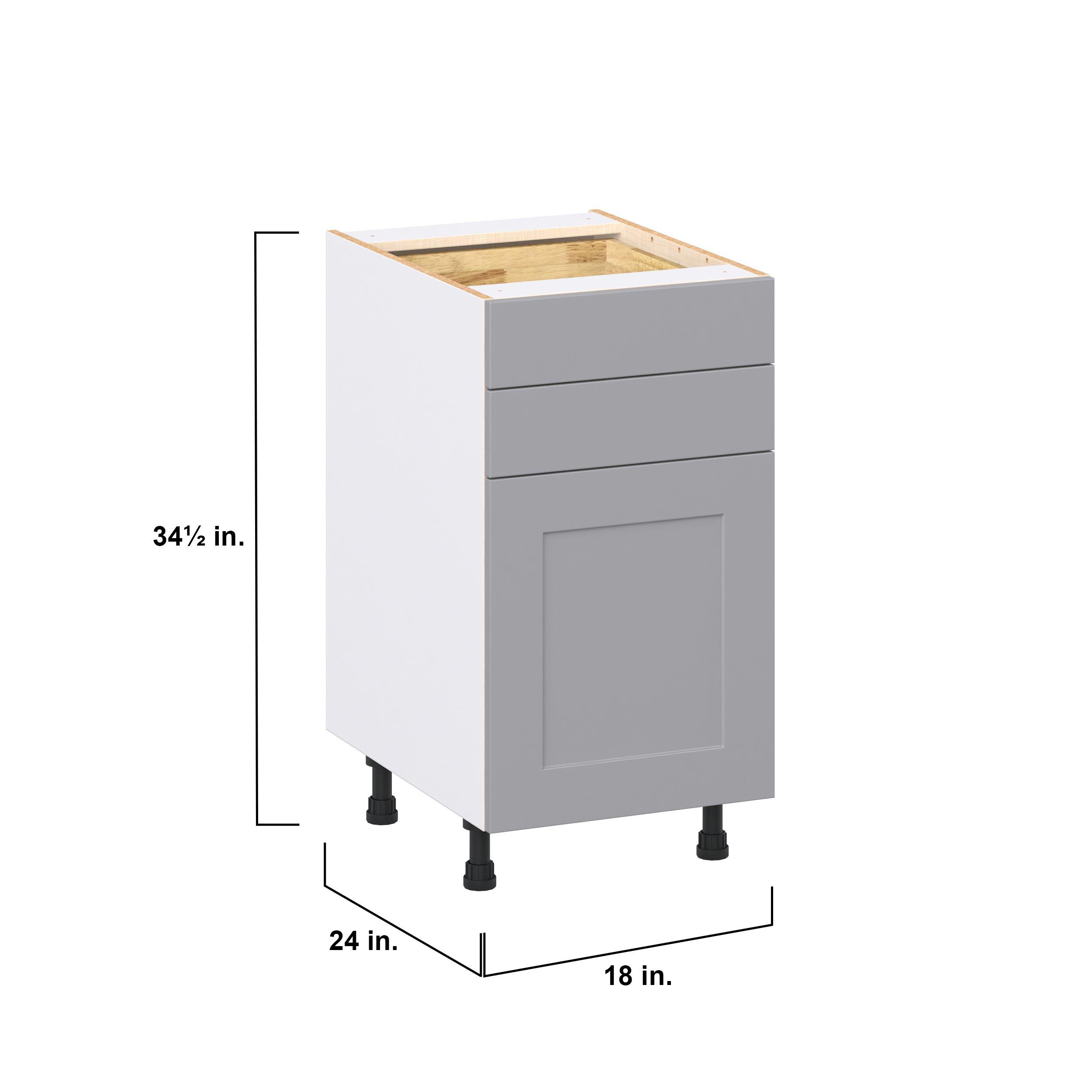 Transform your space with the elegance of Candler wide-rail shaker styles. Both the warm white and slate gray options create a rich transitional backdrop to complement any decor. Crafted from one-piece MDF Studio Design Collection Candler 18 in. Painted Slate Gray Door and Drawer Base Cabinet is designed to resist hairline cracks while the easy-to-clean finish stands up to stains and moisture. Featuring 5-piece doors and dovetail drawer joints, these cabinets offer durability and elegance. This collection combines style with everyday storage solutions.