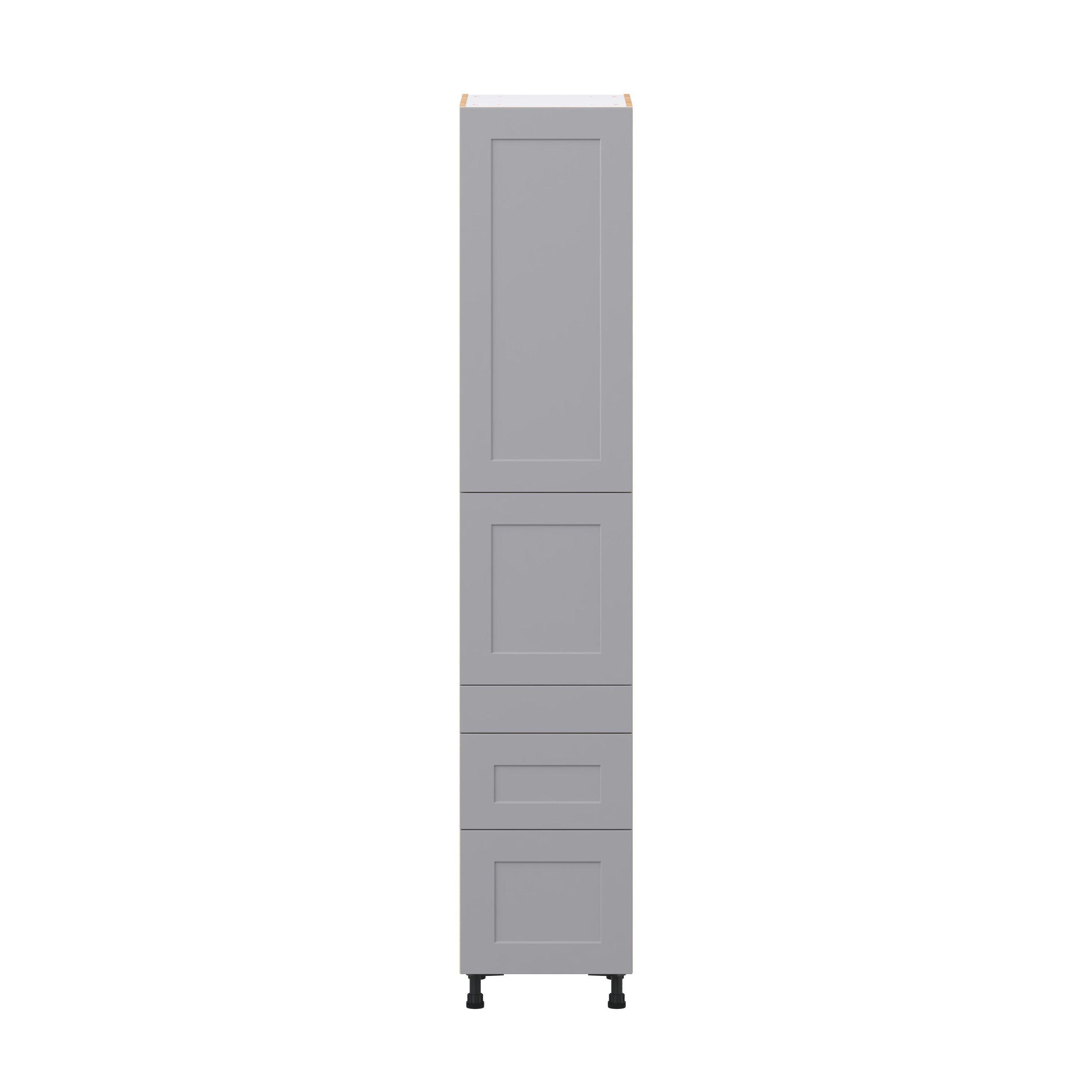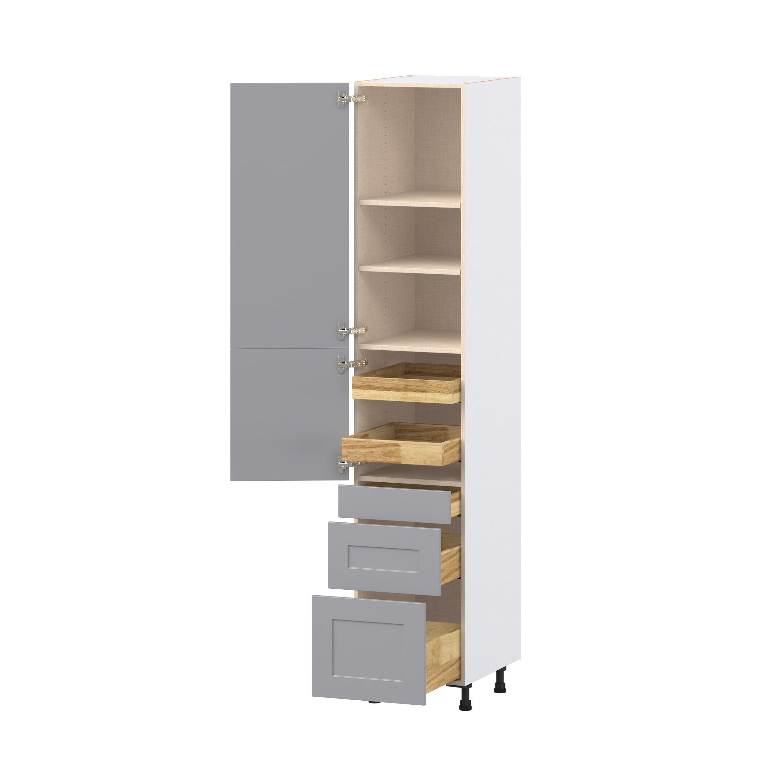 Transform your space with the elegance of Candler wide-rail shaker styles. Both the warm white and slate gray options create a rich transitional backdrop to complement any decor. Crafted from one-piece MDF Studio Design Collection Candler 18 in. Painted Slate Gray Door and Drawer Pantry Cabinet with Inner Pull-Out is designed to resist hairline cracks while the easy-to-clean finish stands up to stains and moisture. Featuring 5-piece doors and dovetail drawer joints, these cabinets offer durability and elegance. This collection combines style with everyday storage solutions.