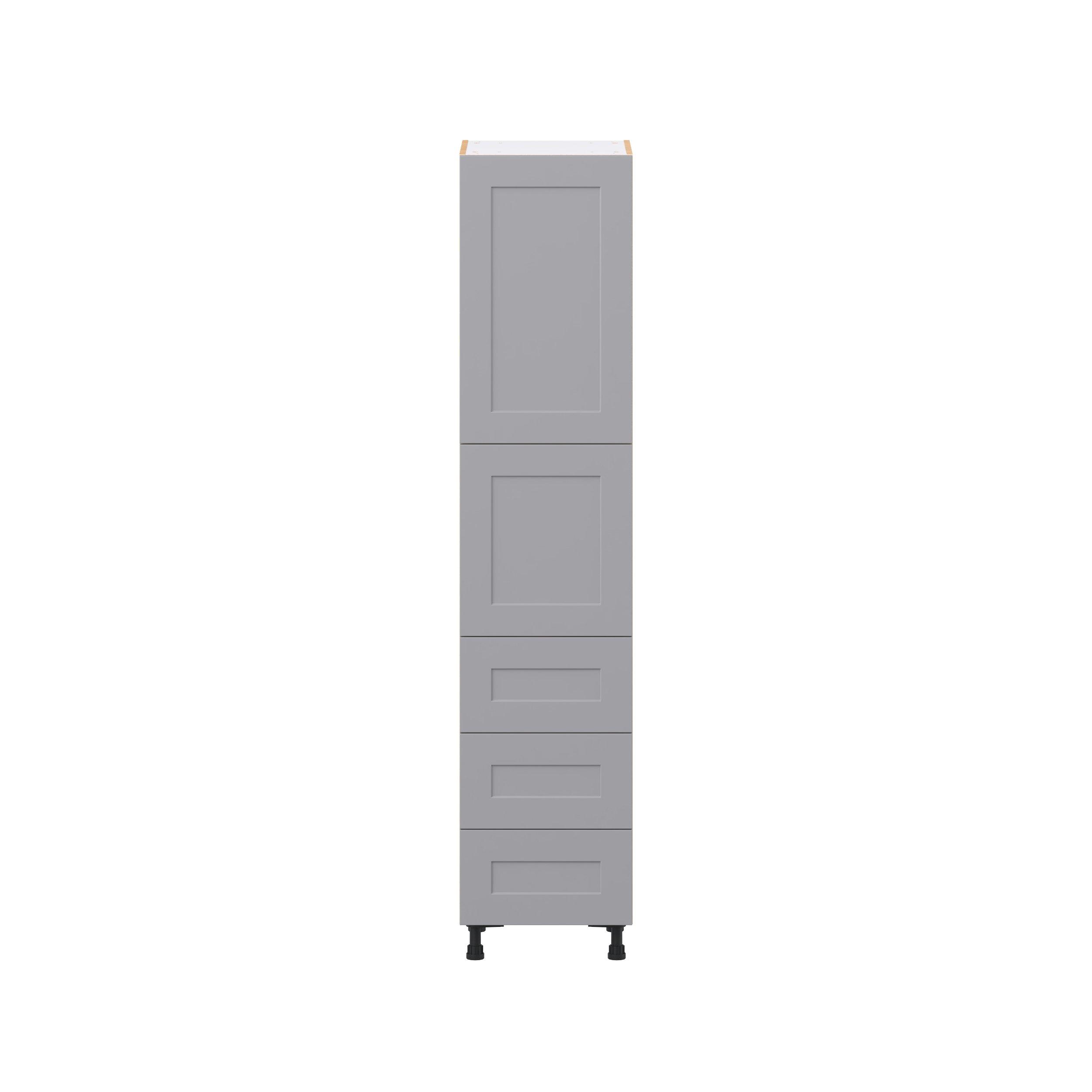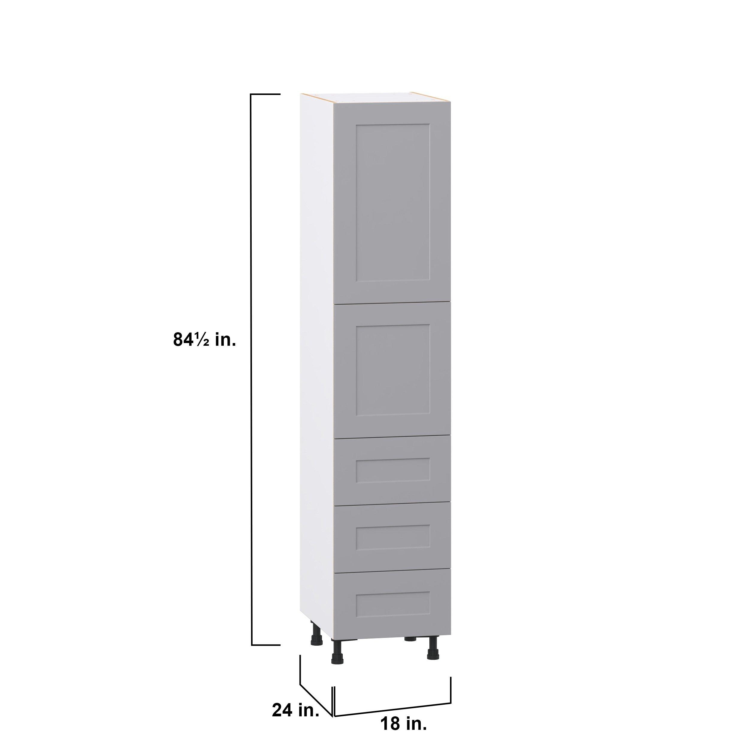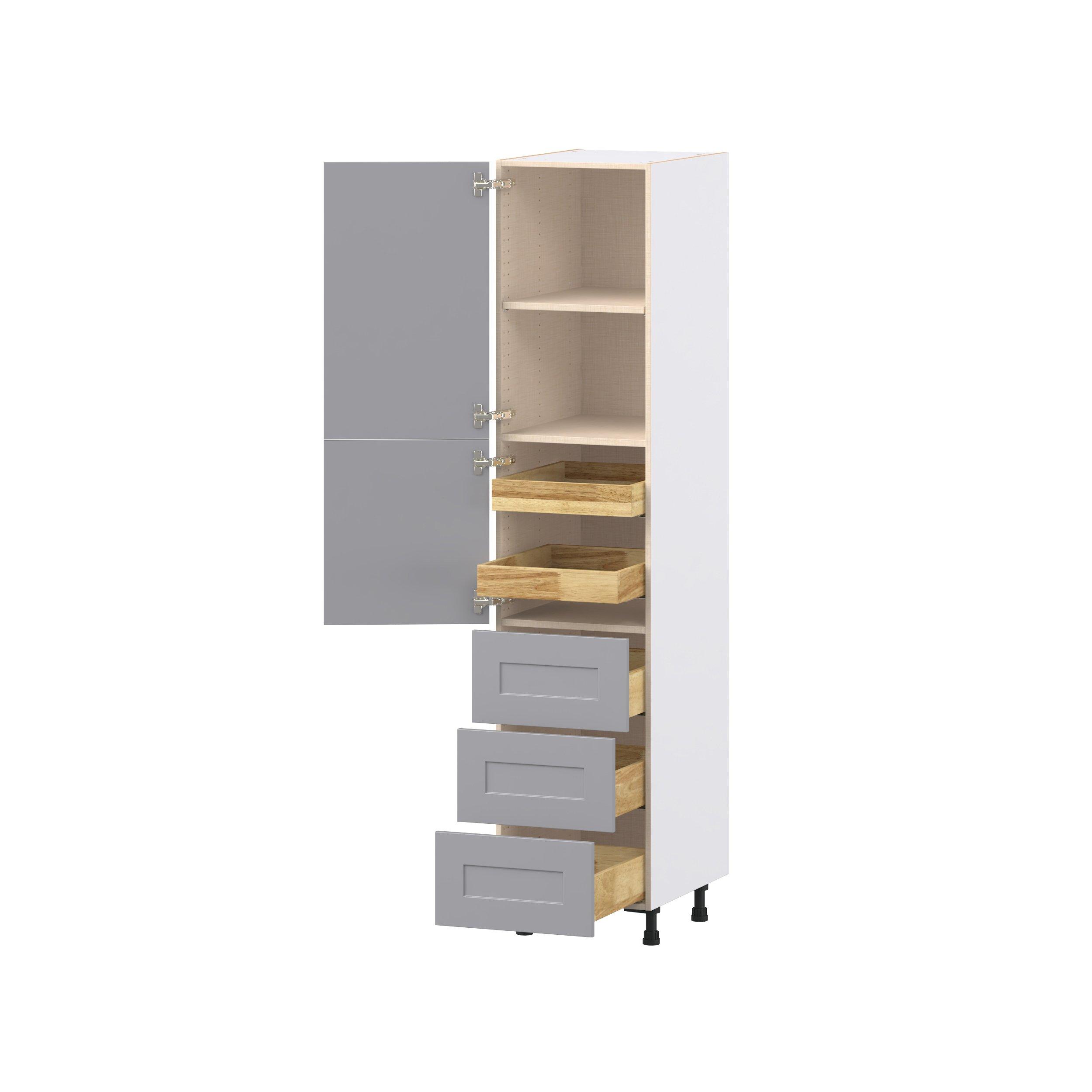 Transform your space with the elegance of Candler wide-rail shaker styles. Both the warm white and slate gray options create a rich transitional backdrop to complement any decor. Crafted from one-piece MDF Studio Design Collection Candler 18 in. Painted Slate Gray Door and Drawer Pantry Cabinet with Inner Pull-Out is designed to resist hairline cracks while the easy-to-clean finish stands up to stains and moisture. Featuring 5-piece doors and dovetail drawer joints, these cabinets offer durability and elegance. This collection combines style with everyday storage solutions.