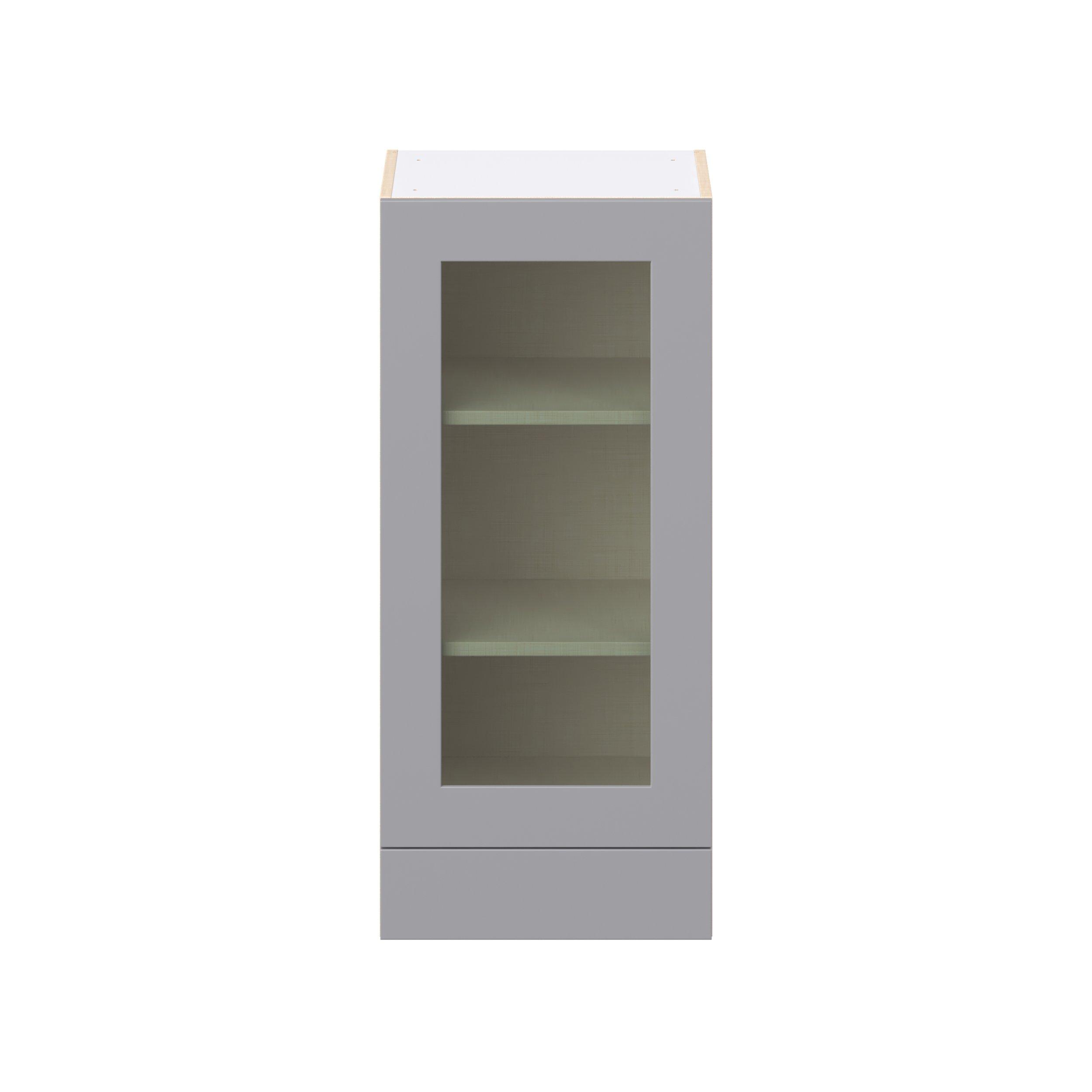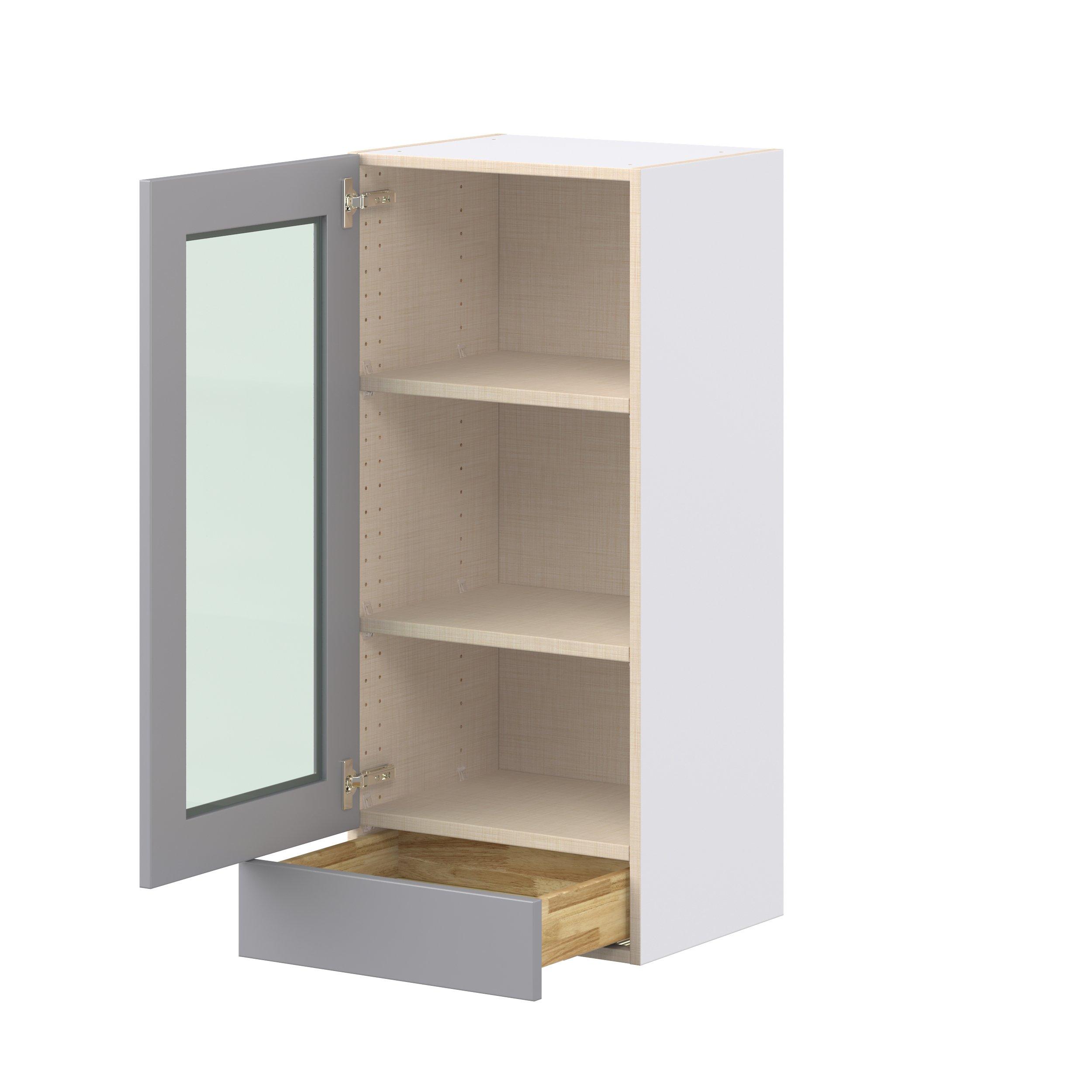 Transform your space with the elegance of Candler wide-rail shaker styles. Both the warm white and slate gray options create a rich transitional backdrop to complement any decor. Crafted from one-piece MDF Studio Design Collection Candler 18 in. Painted Slate Gray Drawer Wall Cabinet with Glass Door is designed to resist hairline cracks while the easy-to-clean finish stands up to stains and moisture. Featuring 5-piece doors and dovetail drawer joints, these cabinets offer durability and elegance. This collection combines style with everyday storage solutions.