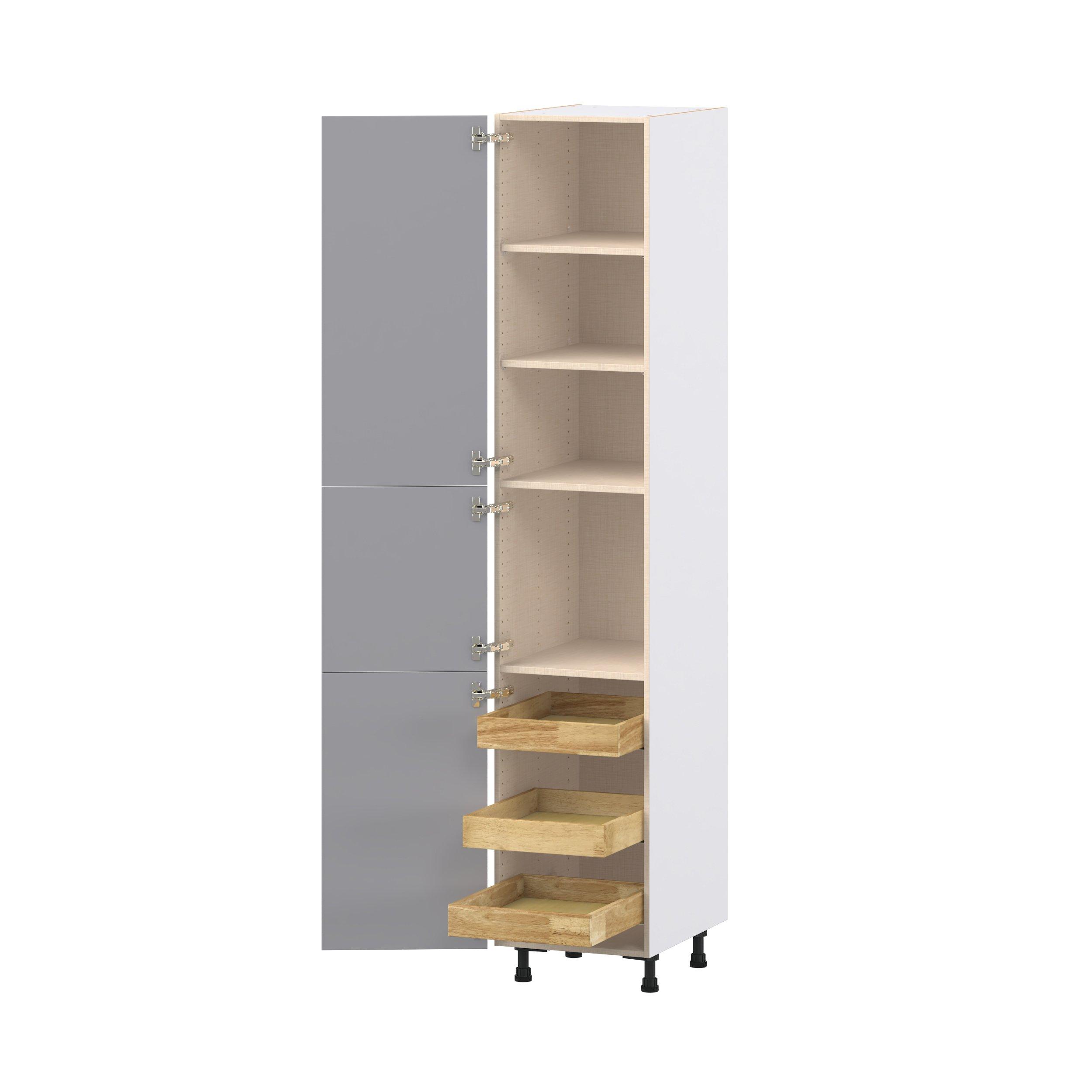 Transform your space with the elegance of Candler wide-rail shaker styles. Both the warm white and slate gray options create a rich transitional backdrop to complement any decor. Crafted from one-piece MDF Studio Design Collection Candler 18 in. Painted Slate Gray Pantry Cabinet with Inner Pull-Out Drawer is designed to resist hairline cracks while the easy-to-clean finish stands up to stains and moisture. Featuring 5-piece doors and dovetail drawer joints, these cabinets offer durability and elegance. This collection combines style with everyday storage solutions.