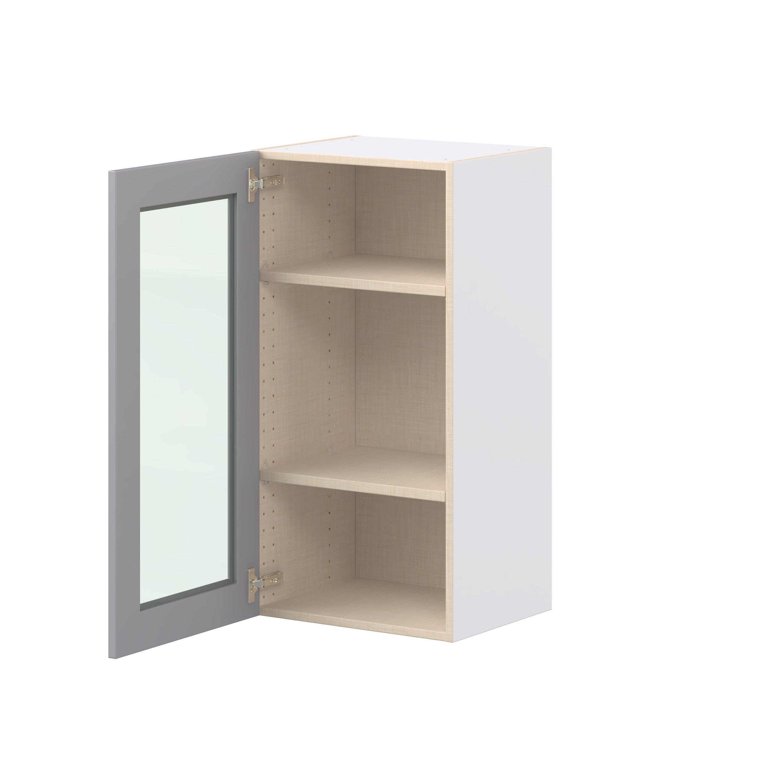 Transform your space with the elegance of Candler wide-rail shaker styles. Both the warm white and slate gray options create a rich transitional backdrop to complement any decor. Crafted from one-piece MDF Studio Design Collection Candler 18 in. Painted Slate Gray Wall Cabinet with Glass Door is designed to resist hairline cracks while the easy-to-clean finish stands up to stains and moisture. Featuring 5-piece doors and dovetail drawer joints, these cabinets offer durability and elegance. This collection combines style with everyday storage solutions.
