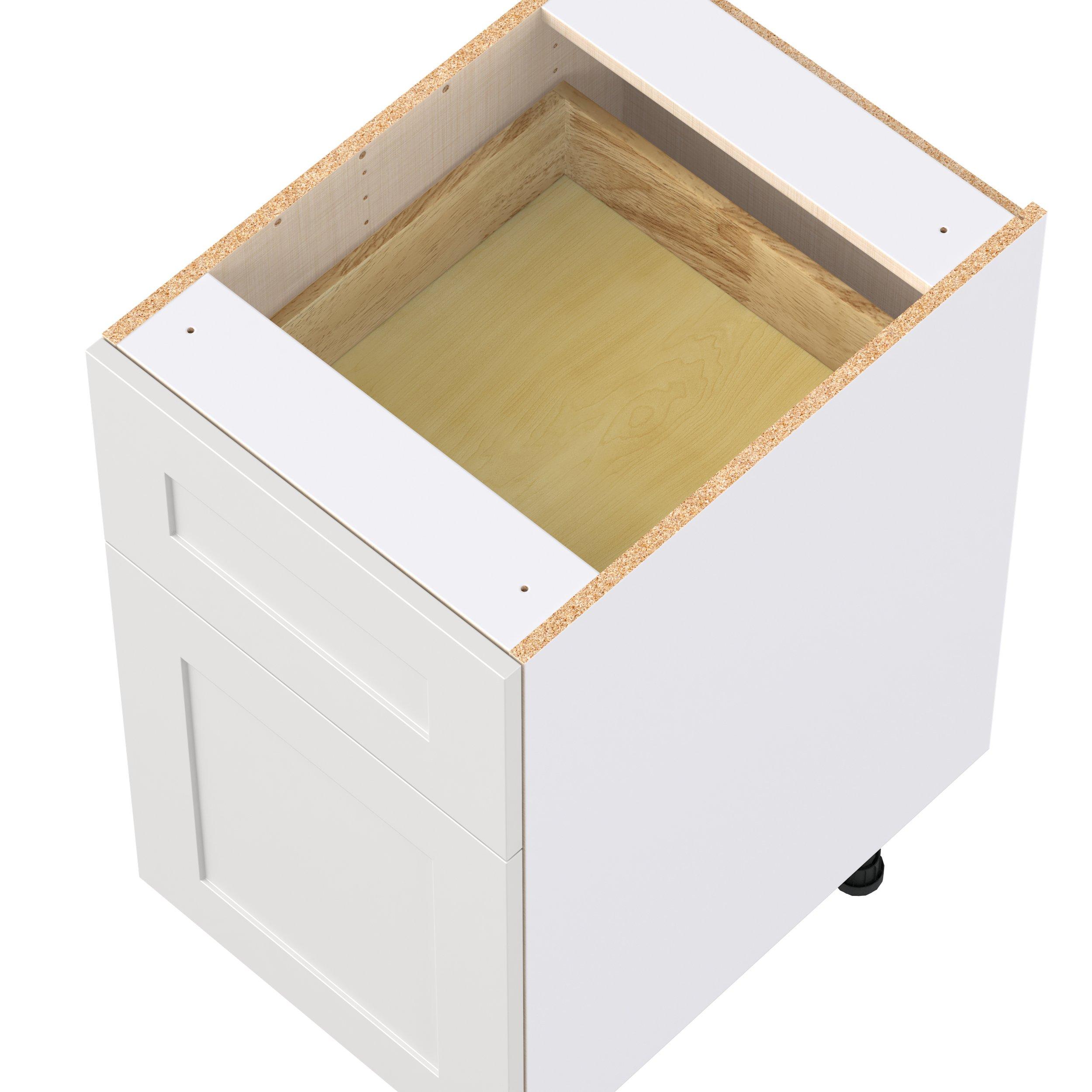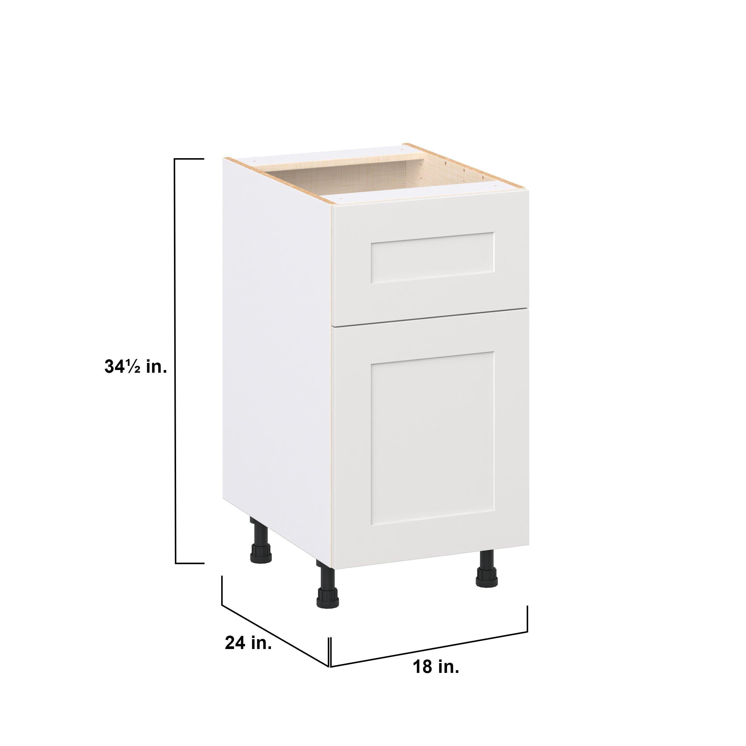 Transform your space with the elegance of Candler wide-rail shaker styles. Both the warm white and slate gray options create a rich transitional backdrop to complement any decor. Crafted from one-piece MDF Studio Design Collection Candler 18 in. Painted Warm White Door and Drawer Base Cabinet is designed to resist hairline cracks while the easy-to-clean finish stands up to stains and moisture. Featuring 5-piece doors and dovetail drawer joints, these cabinets offer durability and elegance. This collection combines style with everyday storage solutions.