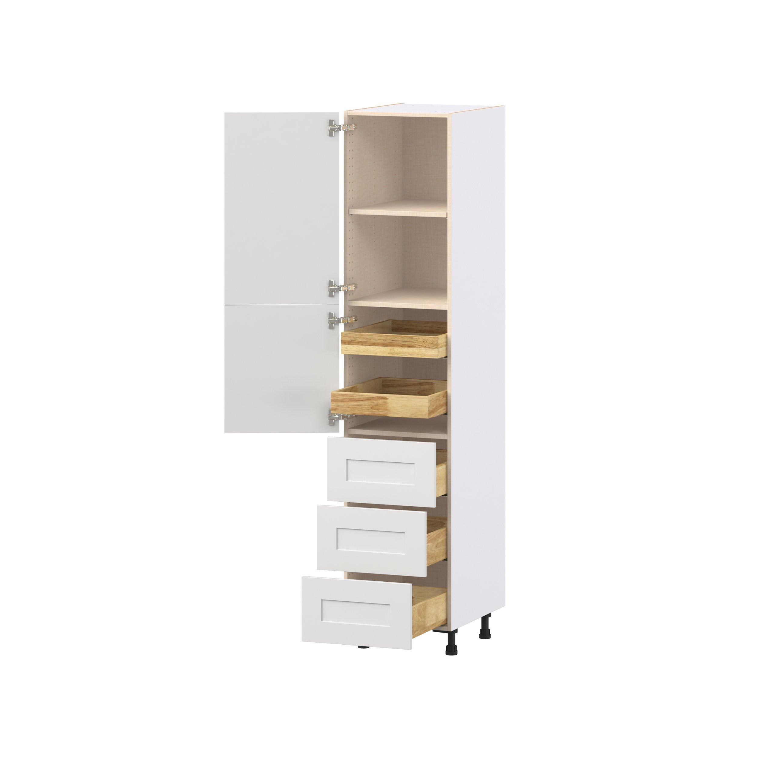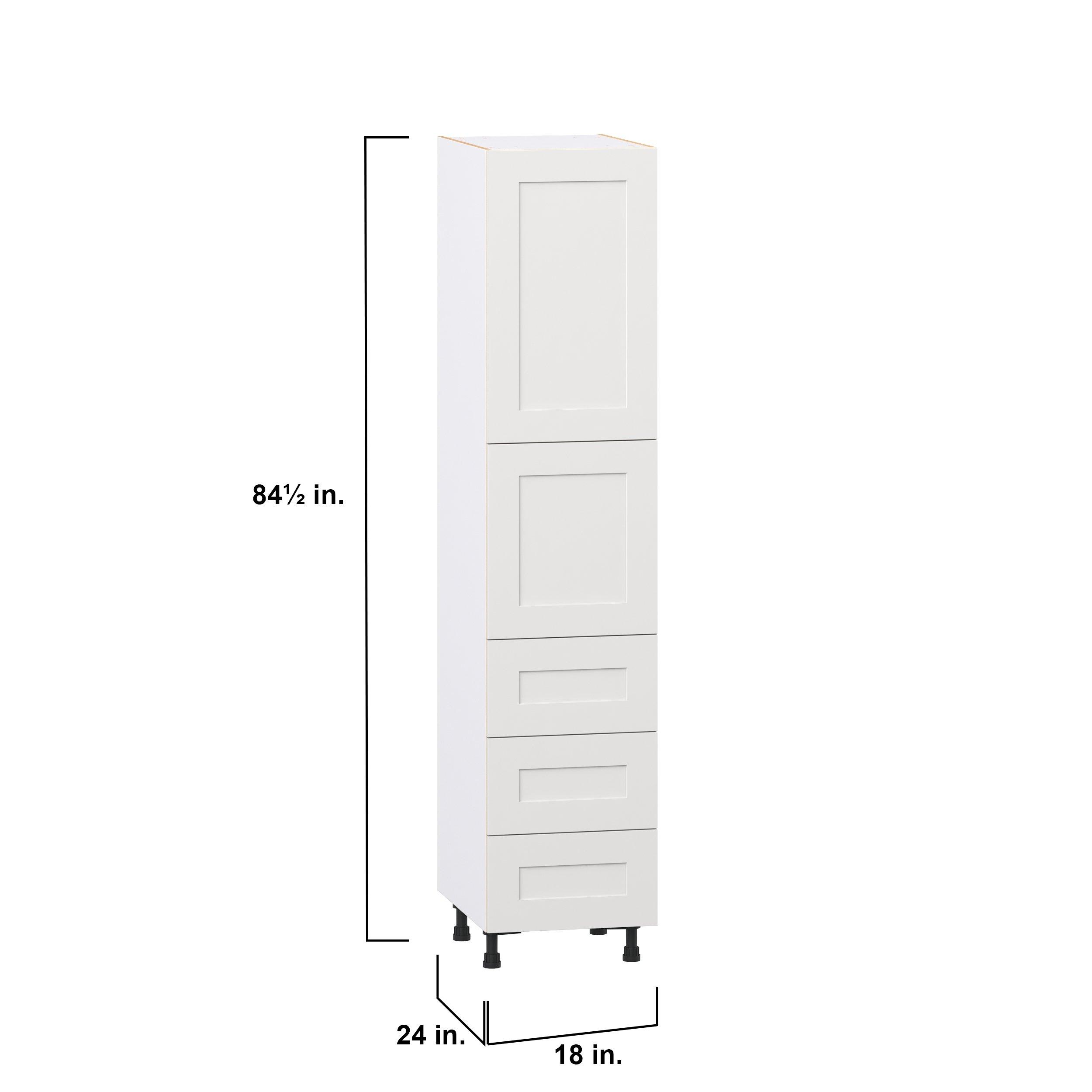 Transform your space with the elegance of Candler wide-rail shaker styles. Both the warm white and slate gray options create a rich transitional backdrop to complement any decor. Crafted from one-piece MDF Studio Design Collection Candler 18 in. Painted Warm White Door and Drawer Pantry Cabinet with Inner Pull-Out is designed to resist hairline cracks while the easy-to-clean finish stands up to stains and moisture. Featuring 5-piece doors and dovetail drawer joints, these cabinets offer durability and elegance. This collection combines style with everyday storage solutions.
