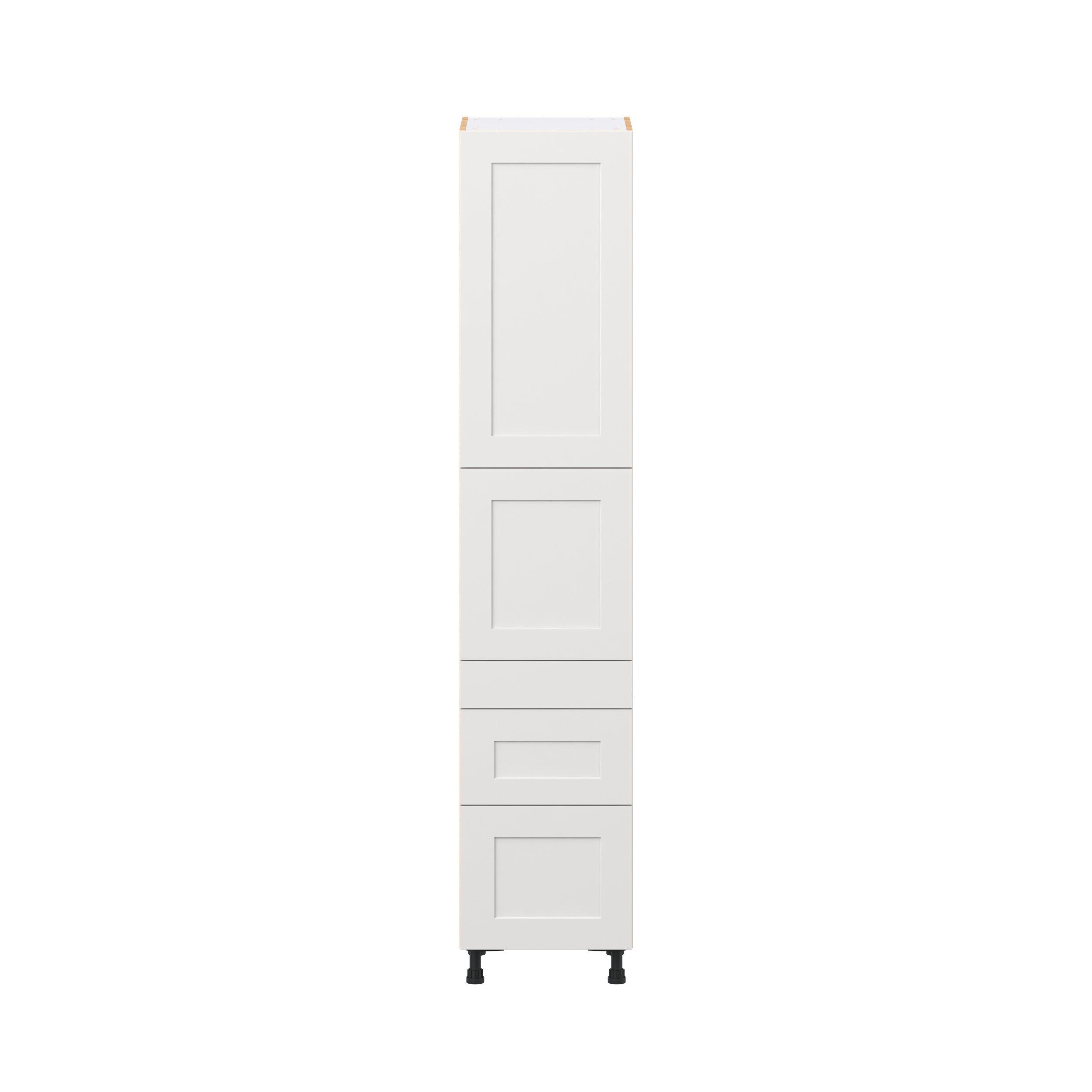 Transform your space with the elegance of Candler wide-rail shaker styles. Both the warm white and slate gray options create a rich transitional backdrop to complement any decor. Crafted from one-piece MDF Studio Design Collection Candler 18 in. Painted Warm White Door and Drawer Pantry Cabinet with Inner Pull-Out is designed to resist hairline cracks while the easy-to-clean finish stands up to stains and moisture. Featuring 5-piece doors and dovetail drawer joints, these cabinets offer durability and elegance. This collection combines style with everyday storage solutions.