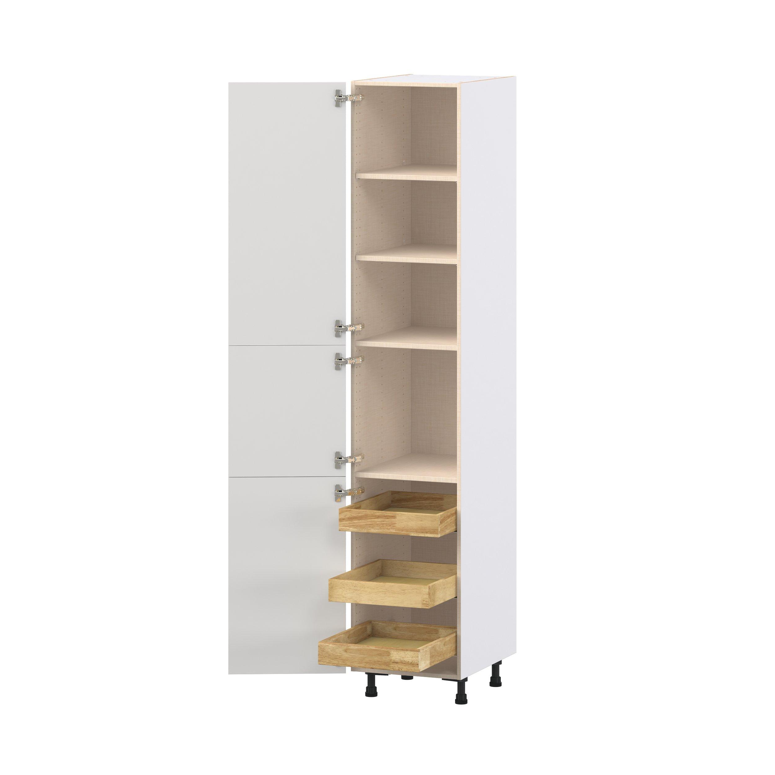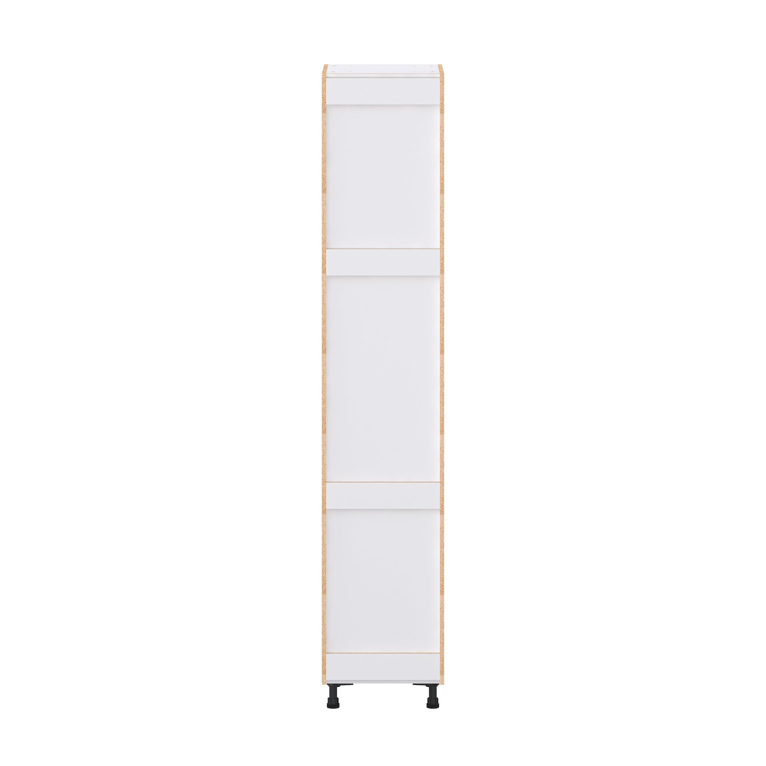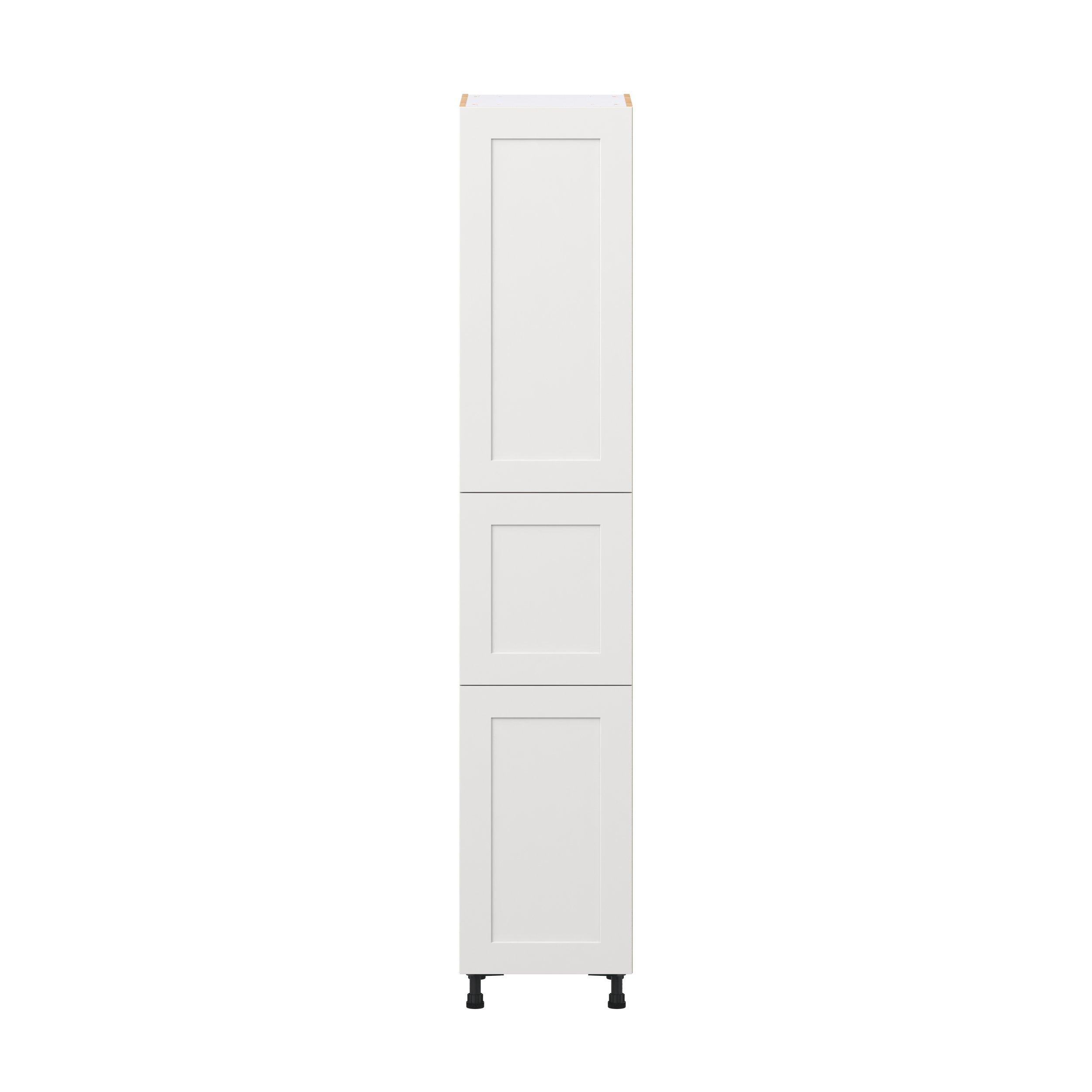 Transform your space with the elegance of Candler wide-rail shaker styles. Both the warm white and slate gray options create a rich transitional backdrop to complement any decor. Crafted from one-piece MDF Studio Design Collection Candler 18 in. Painted Warm White Pantry Cabinet with Inner Pull-Out Drawer is designed to resist hairline cracks while the easy-to-clean finish stands up to stains and moisture. Featuring 5-piece doors and dovetail drawer joints, these cabinets offer durability and elegance. This collection combines style with everyday storage solutions.